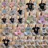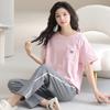 Pijama de verano para mujer, de manga corta, de algodón, con dibujos animados, fino, informal, para el hogar, conjunto de dos piezas
