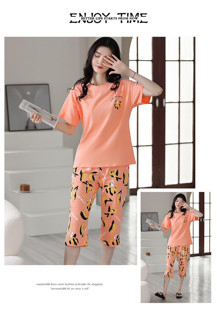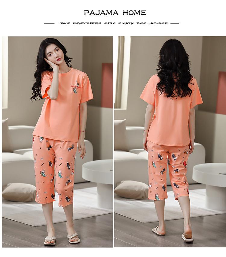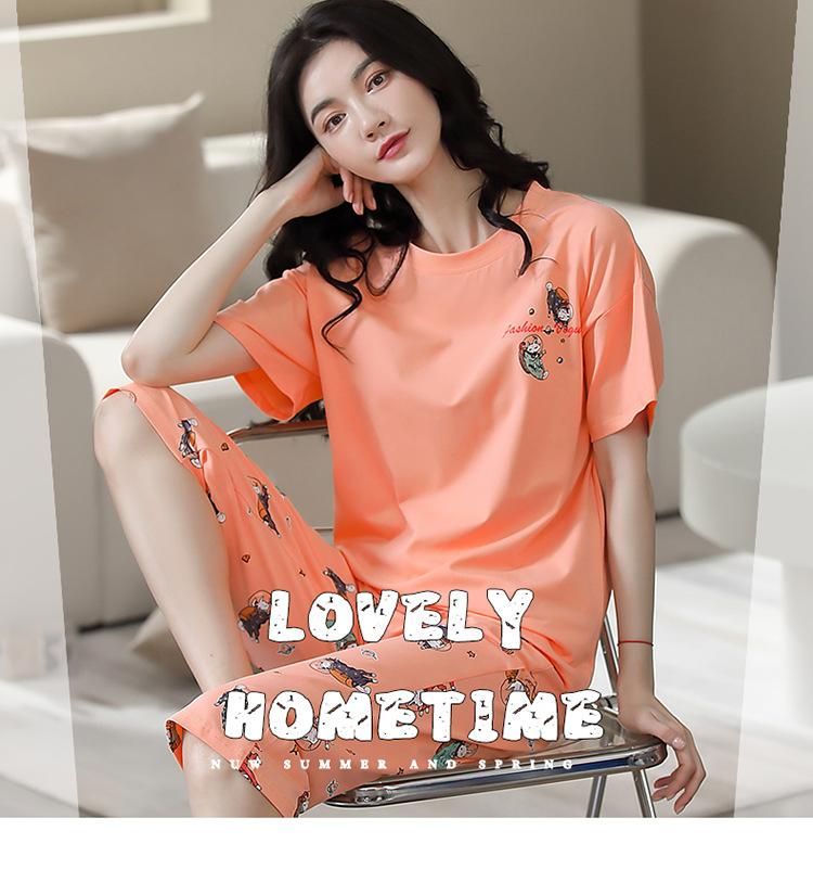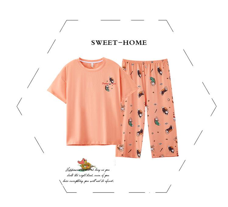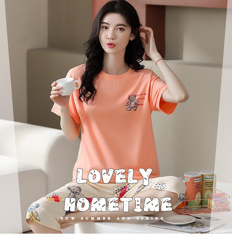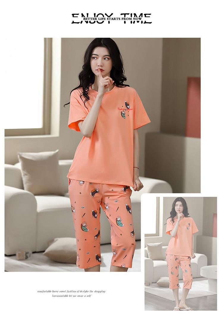 Pijama de dos piezas estilo coreano de verano para mujer, de algodón puro, con mangas cortas y pantalones capri, ideal para el hogar.