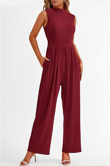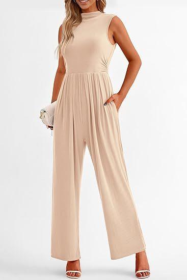 Mono de Verano Nuevo para Mujer Transfronterizo Europeo y Americano 2025, Mono sin Mangas de Pierna Ancha para Mujer con Bolsillos de Solapa, Pantalones