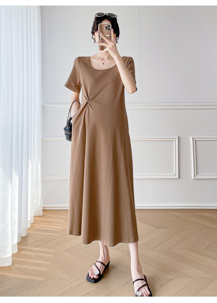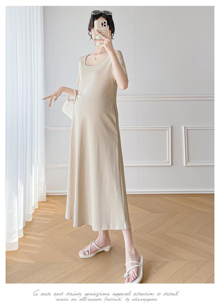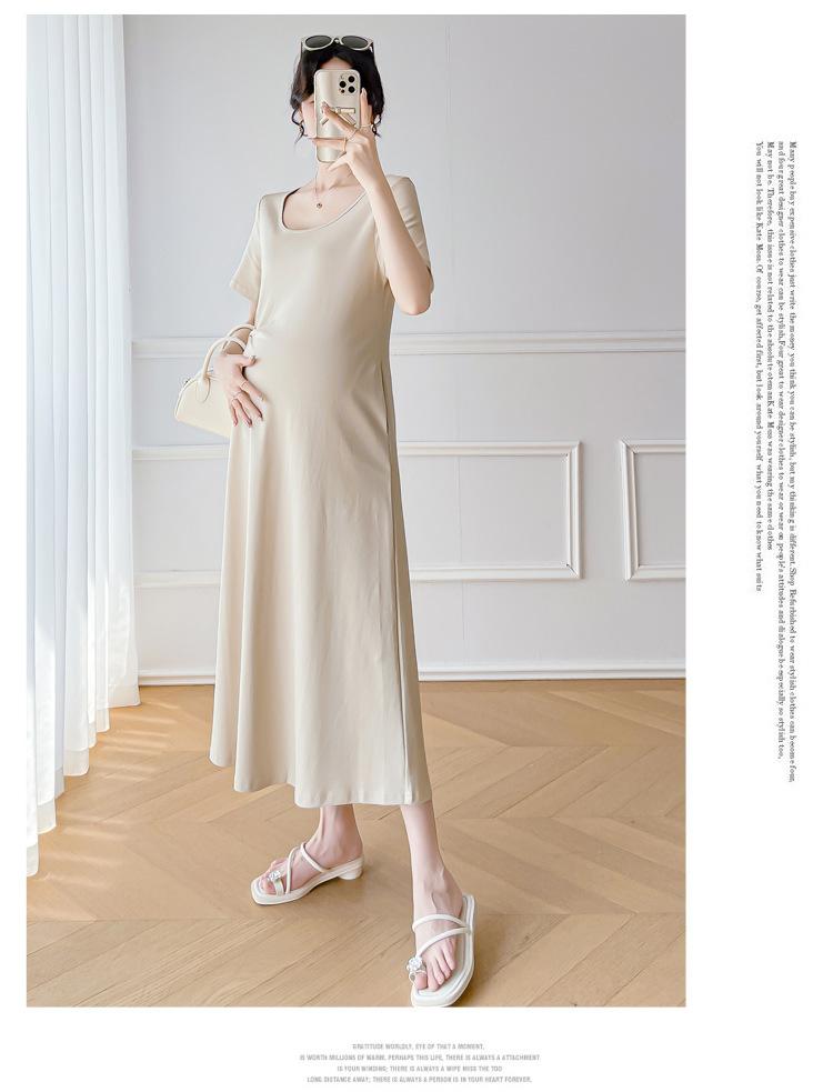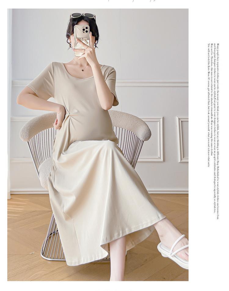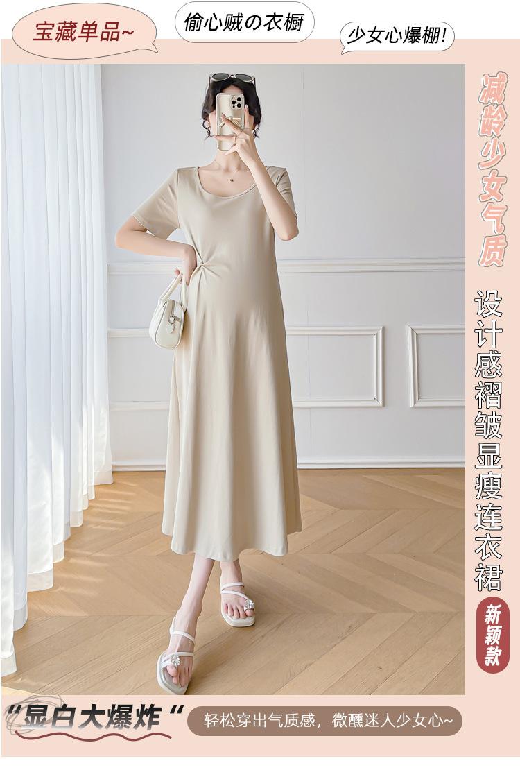 Ropa de Maternidad 2024 Verano Nuevo Estilo Coreano Moda Elegante Ajustado Versátil Suelto Talla Grande Vestido de Maternidad