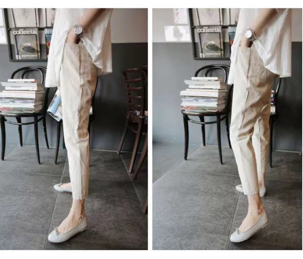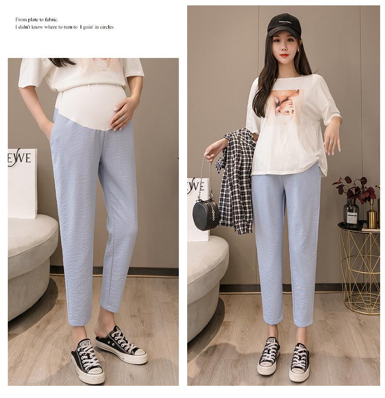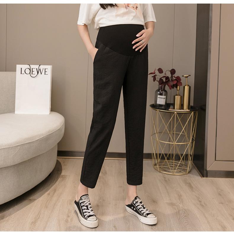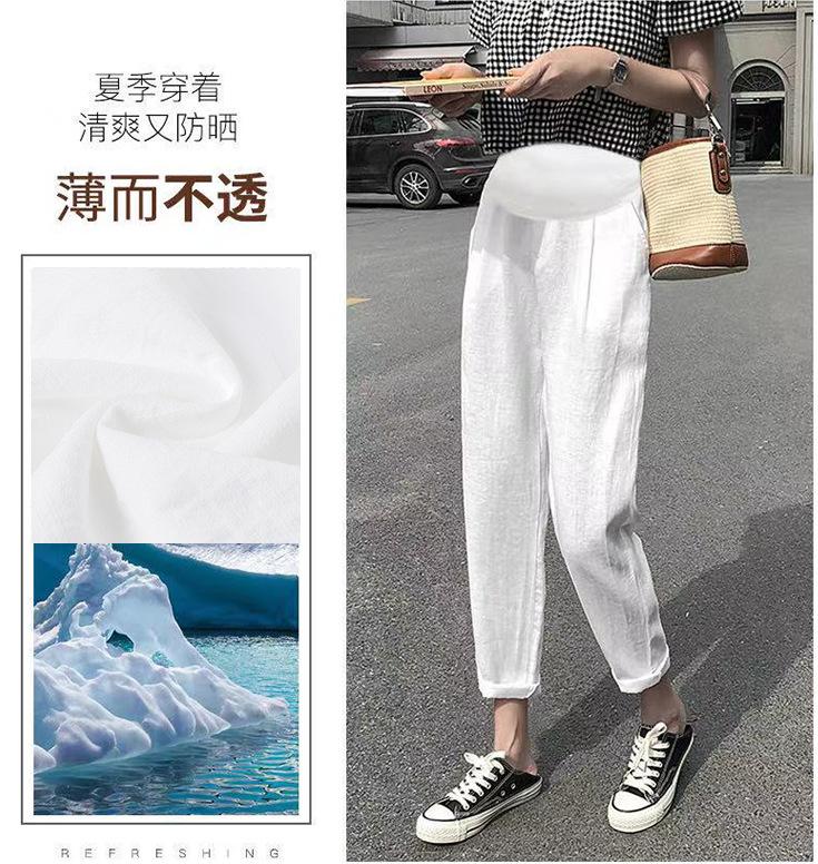 Pantalones de mujer embarazada 2023 primavera y verano, leggings finos de moda para embarazadas, pantalones de algodón y lino para embarazadas, pantalones de soporte abdominal
