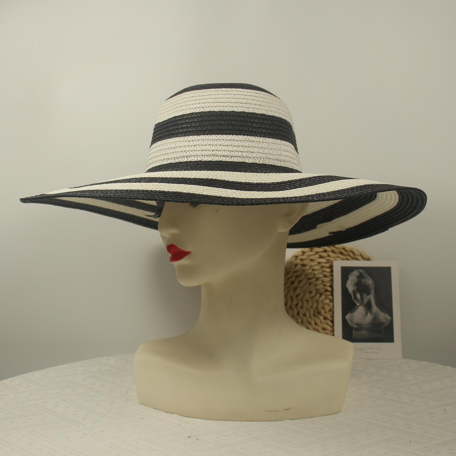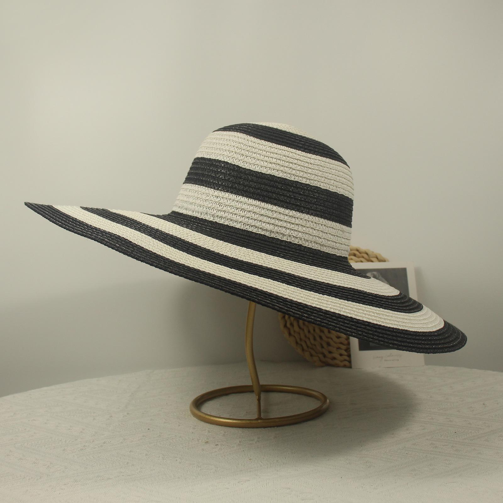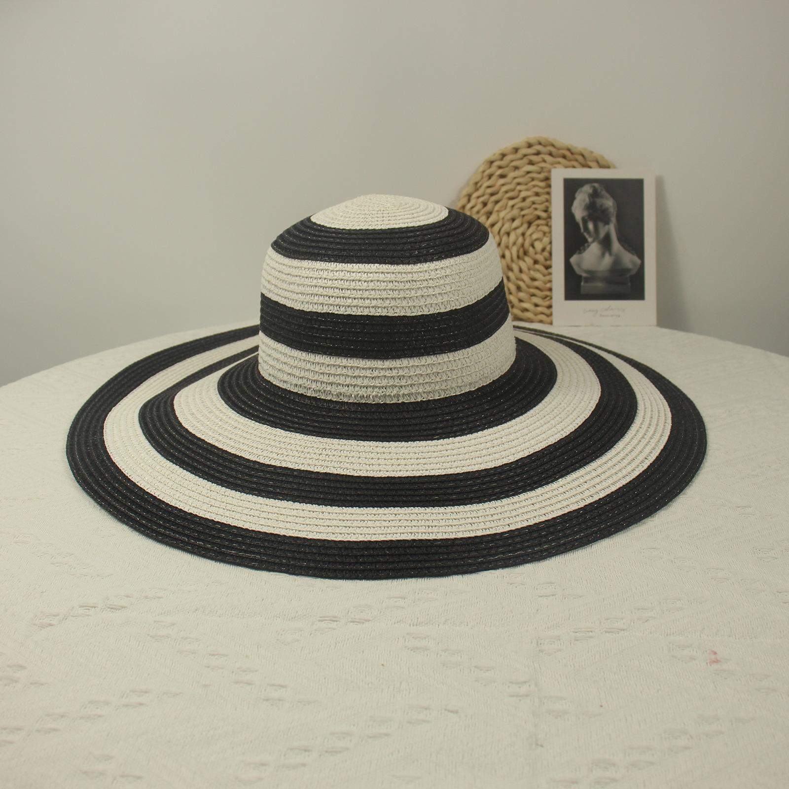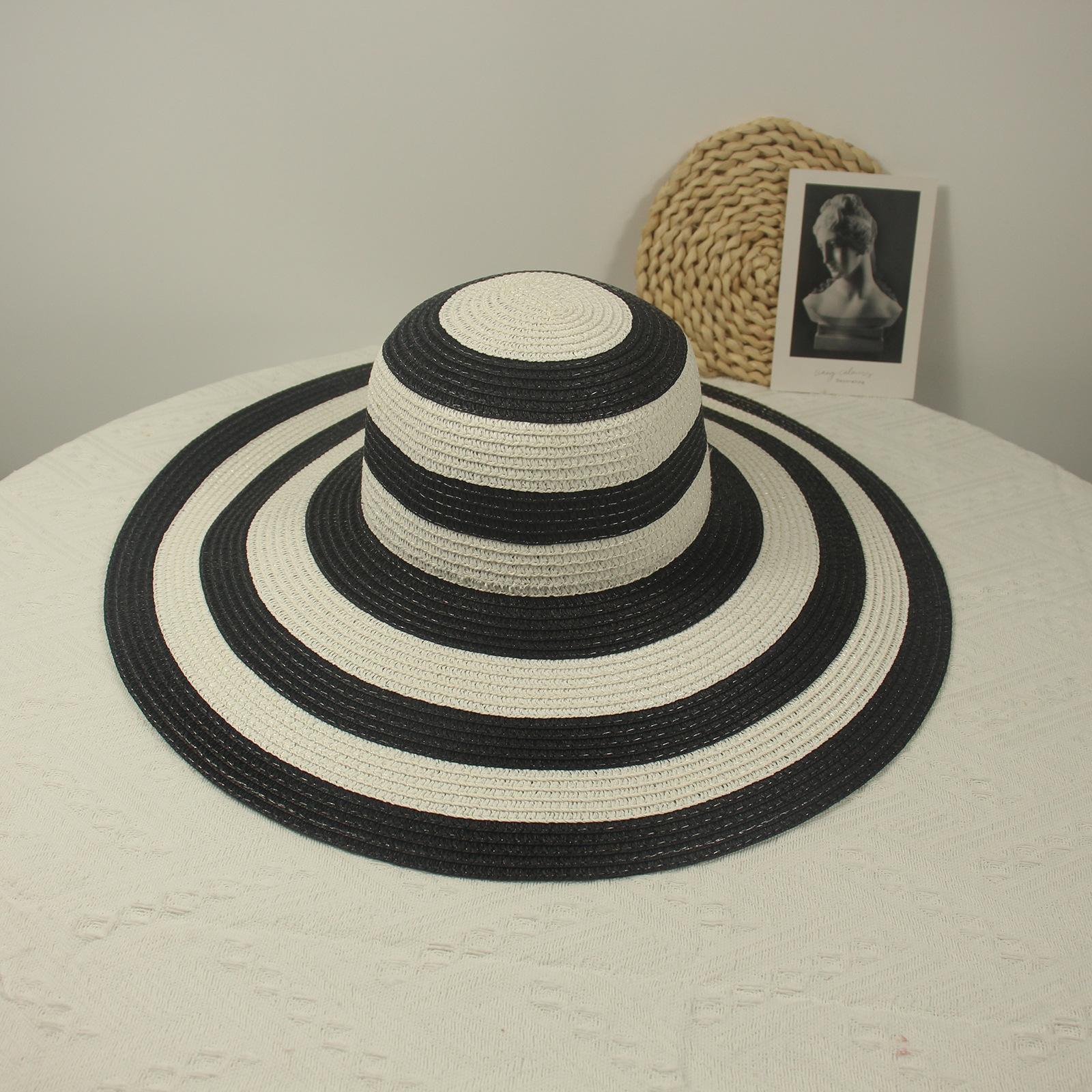 2023 Nuevo Verano y Otoño Sombrero de Paja para Sol a Rayas Blancas y Negras para Viaje al Aire Libre de Mujer Sombrero para el Sol Mujer