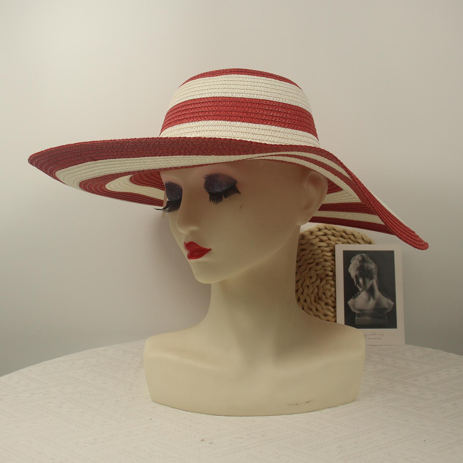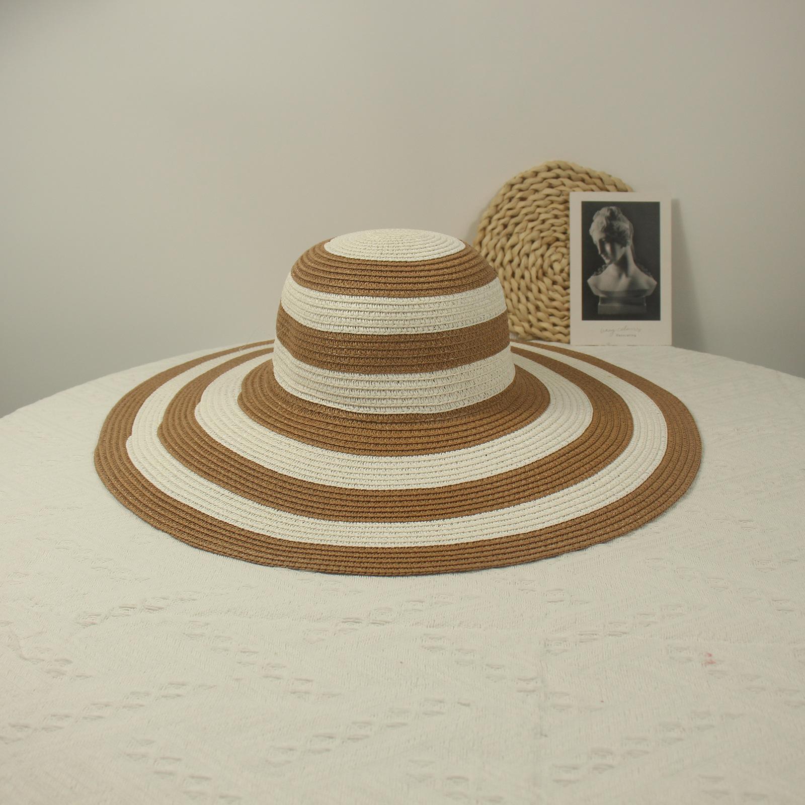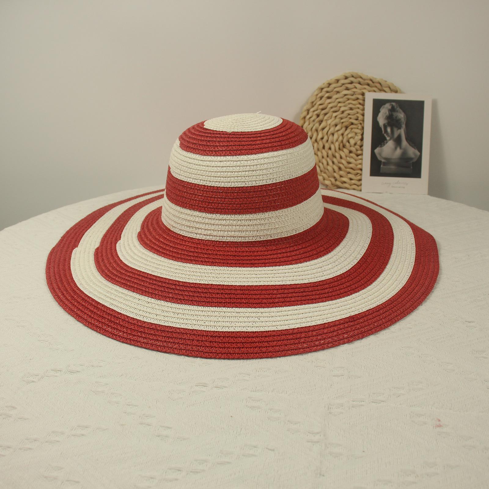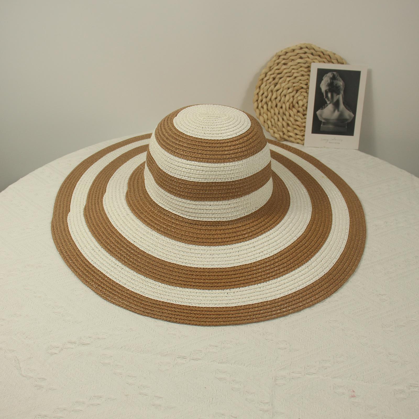 2023 Nuevo Verano y Otoño Sombrero de Paja para Sol a Rayas Blancas y Negras para Viaje al Aire Libre de Mujer Sombrero para el Sol Mujer