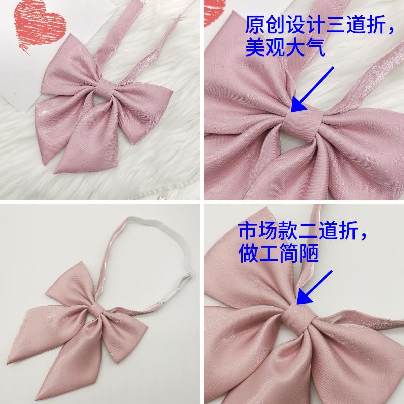 Venta directa de fábrica, alta calidad, original, luminoso, pequeño bisel, color sólido, pajarita JK, cuello de raíz de plumas para mujer, lazo de uniforme con flores
