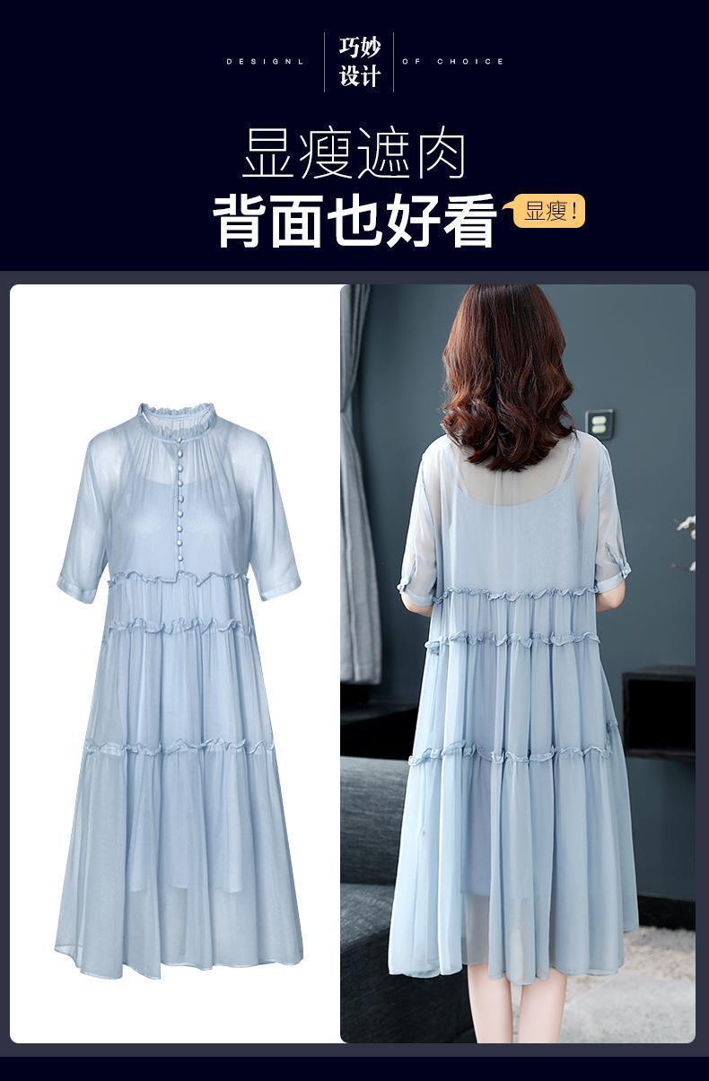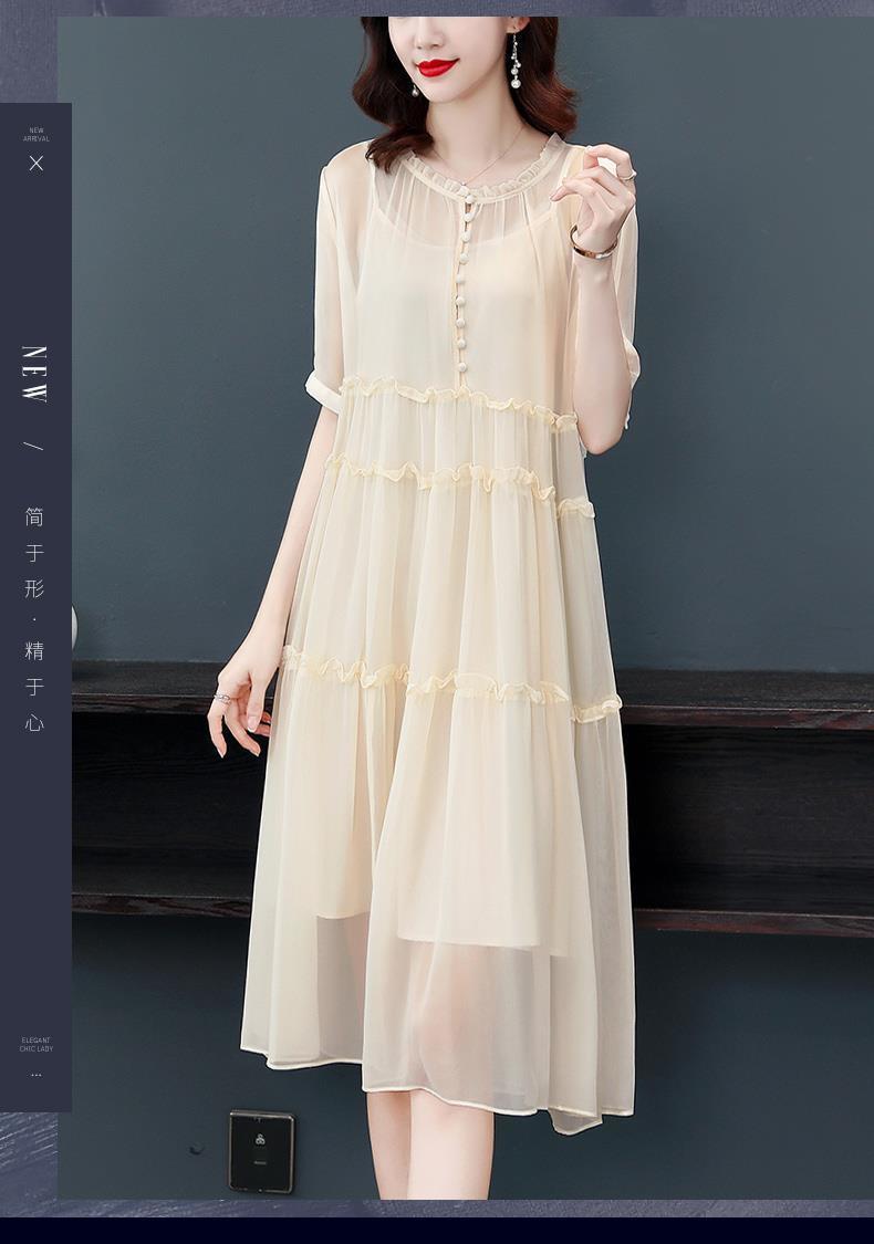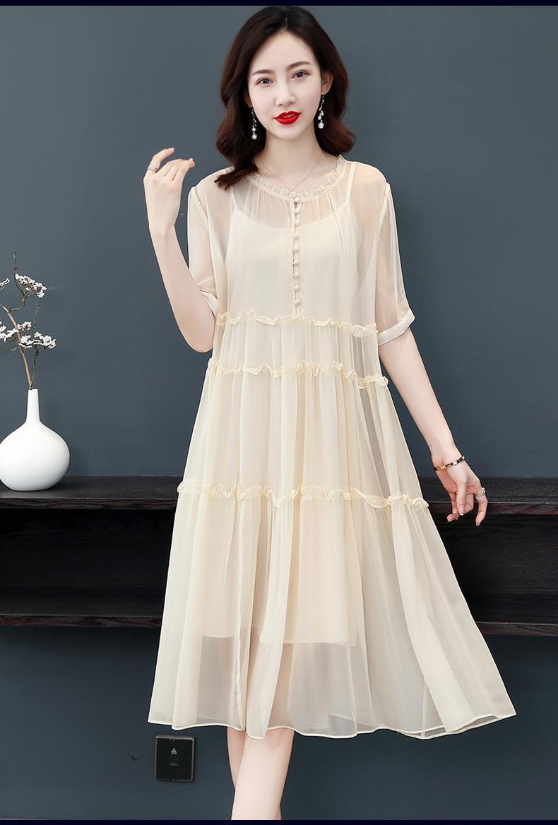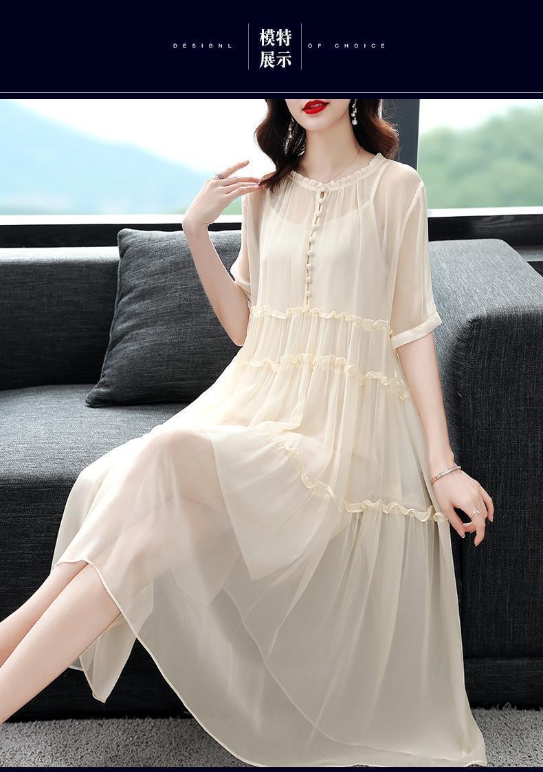 Vestido de Gasa para Mujer Verano 2024 Nuevo Dama con Clase Suelto Talla Grande Elegante Falda Slim Midi