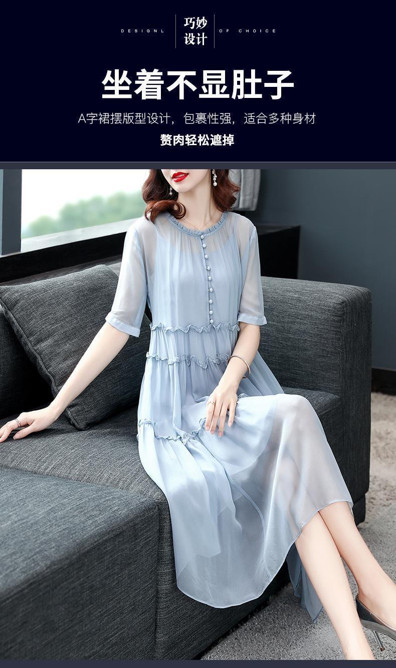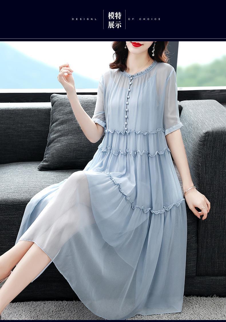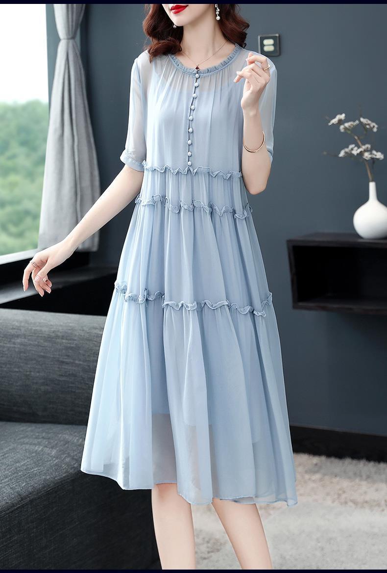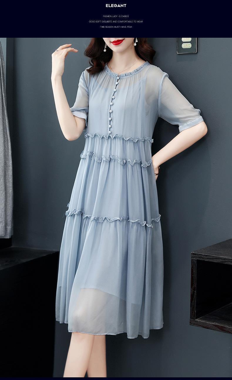 Vestido de Gasa para Mujer Verano 2024 Nuevo Dama con Clase Suelto Talla Grande Elegante Falda Slim Midi