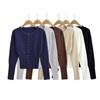 Cárdigan de Punto Gris Redondo Estilo Coreano para Mujer, Delgado de Manga Larga con Cintura Ceñida, Prenda Exterior Corta para Primavera y Otoño