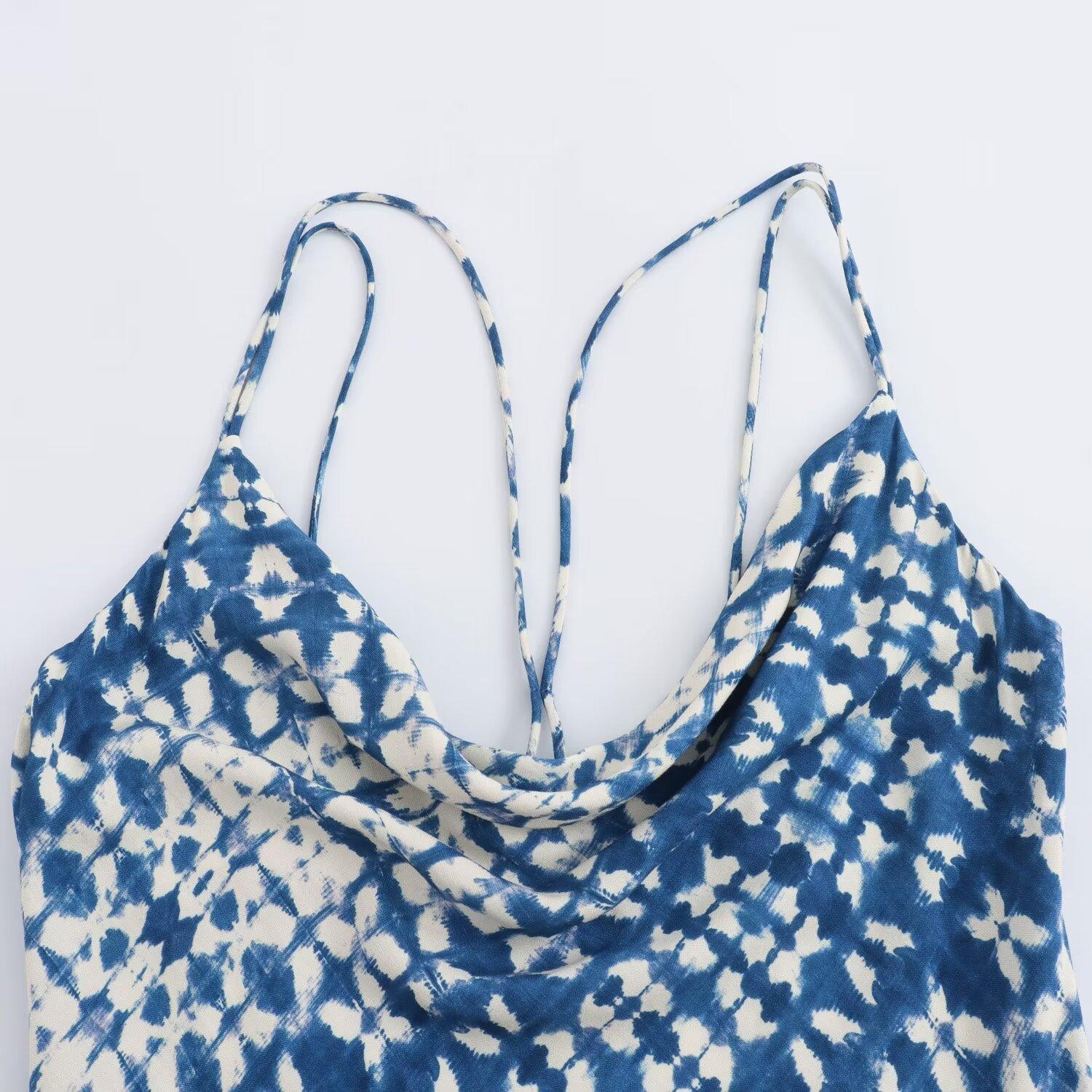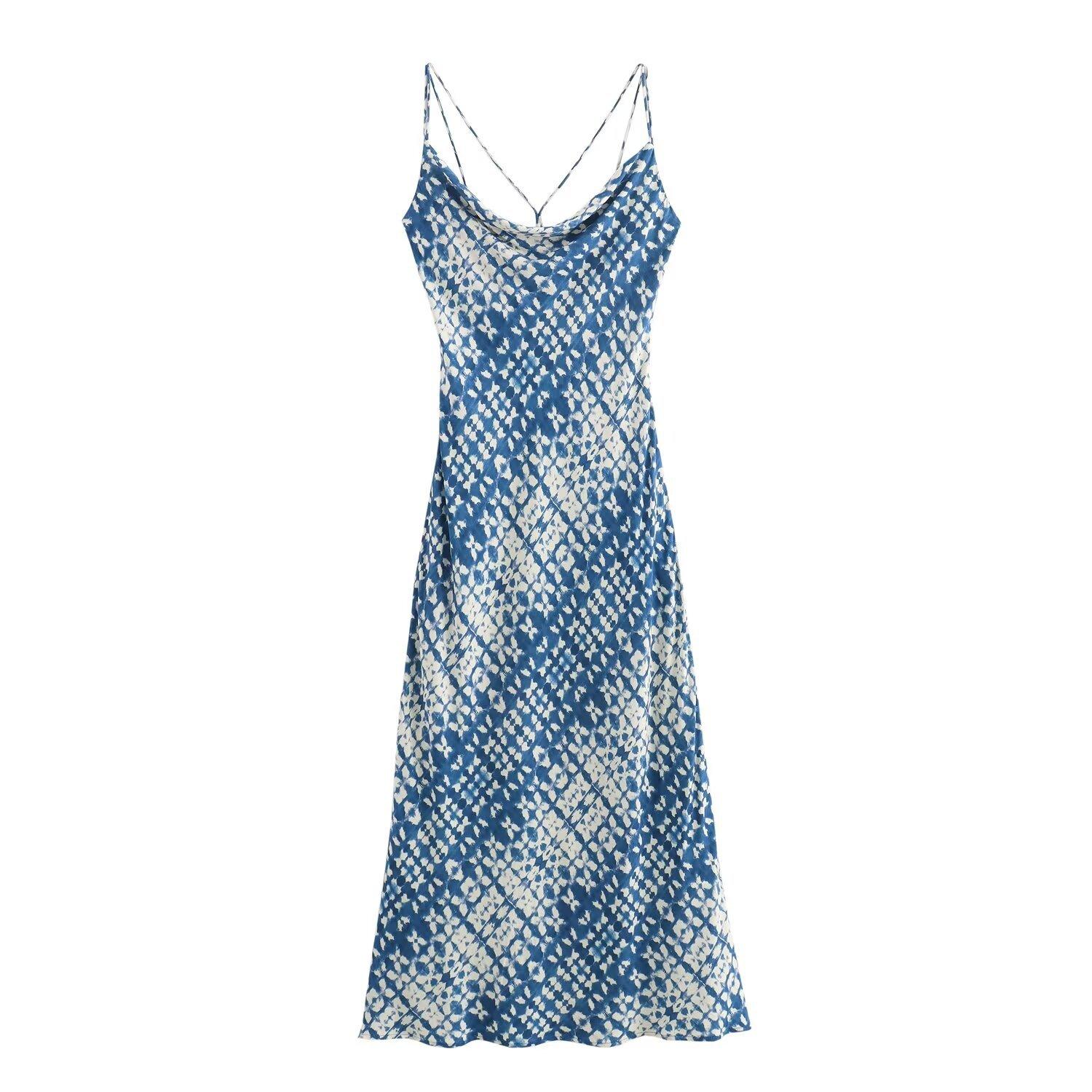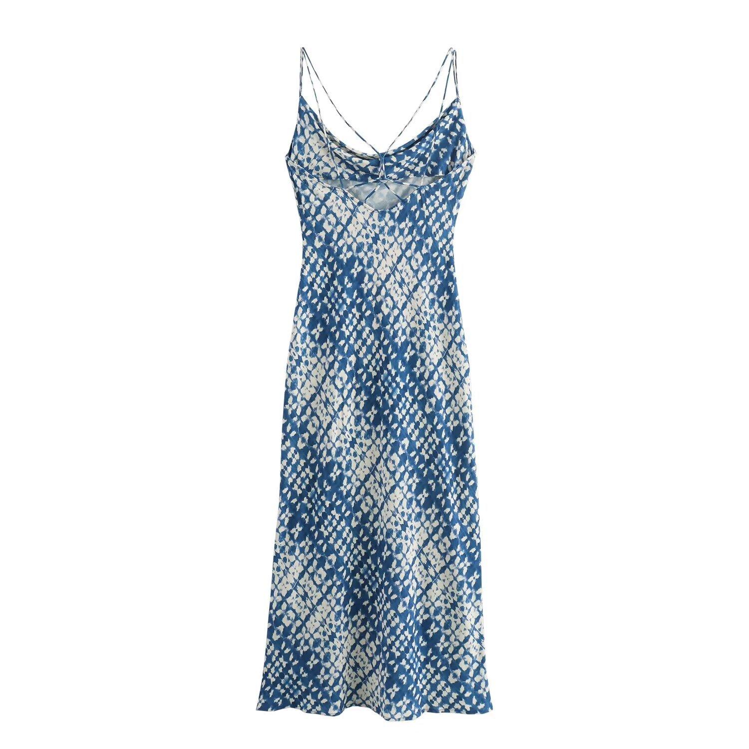 Vestido midi ajustado con cuello halter, estampado, estilo europeo y americano, novedad de verano de 2024