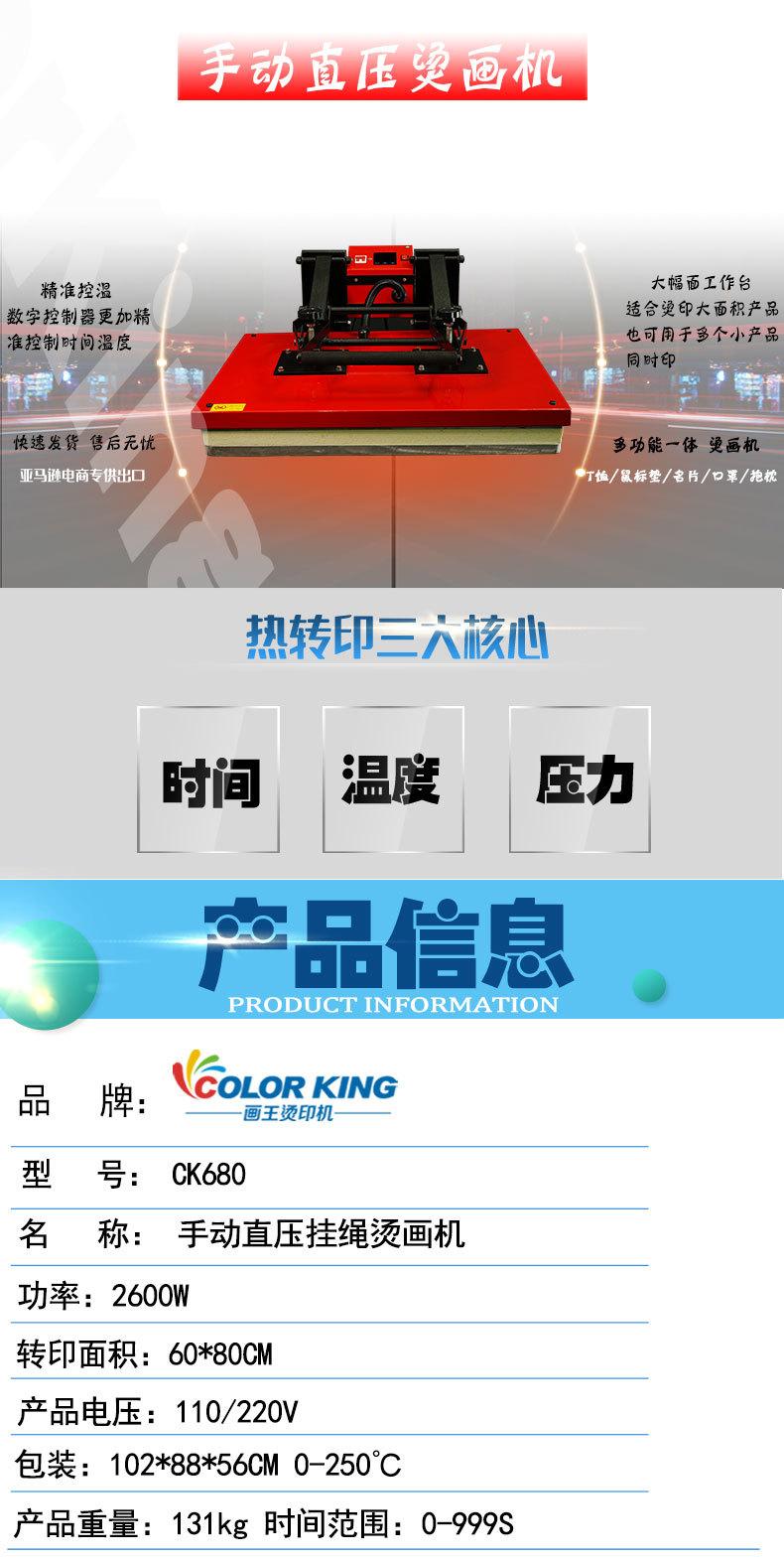 Máquina de transferencia de calor CK680 de venta directa de fábrica, 50 x 70 cm, manual, de gran formato, para impresión de camisetas, jerseys y otros artículos.
