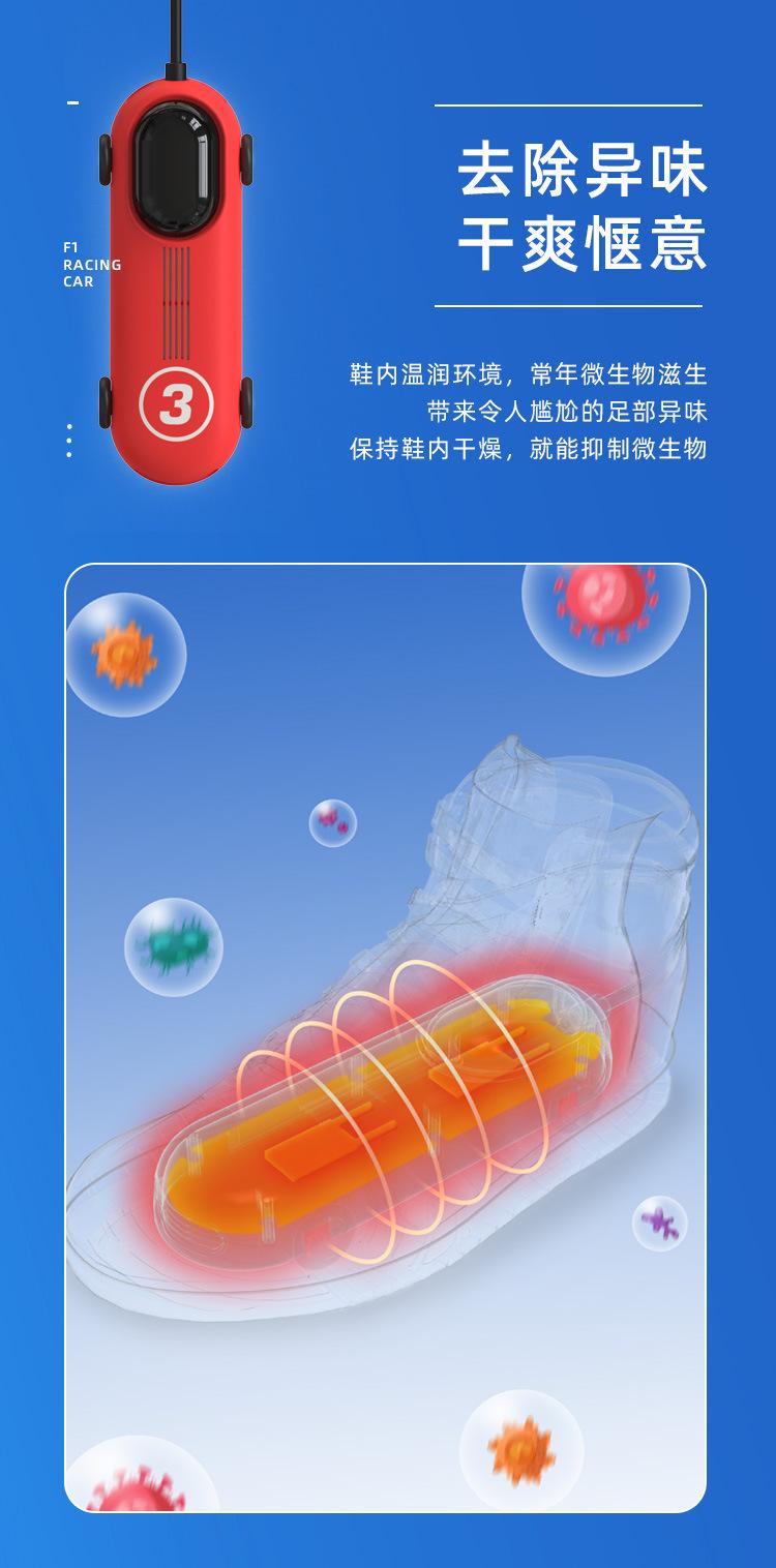 Secador de zapatos de carreras de F1 de estilo creativo, desodorante doméstico inteligente, secado por radiación infrarroja, secador de zapatos