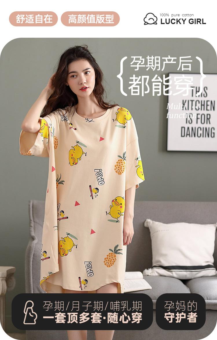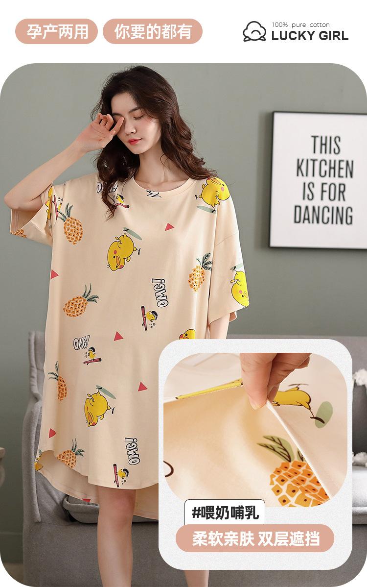 Pijamas de verano para embarazadas, finos, para lactancia, holgados, de manga corta, para posparto, ropa de dormir para lactancia, vestido lunar de verano.