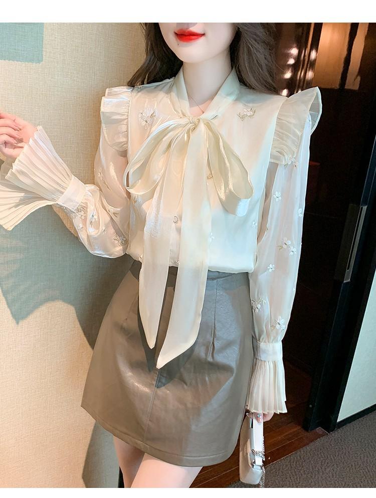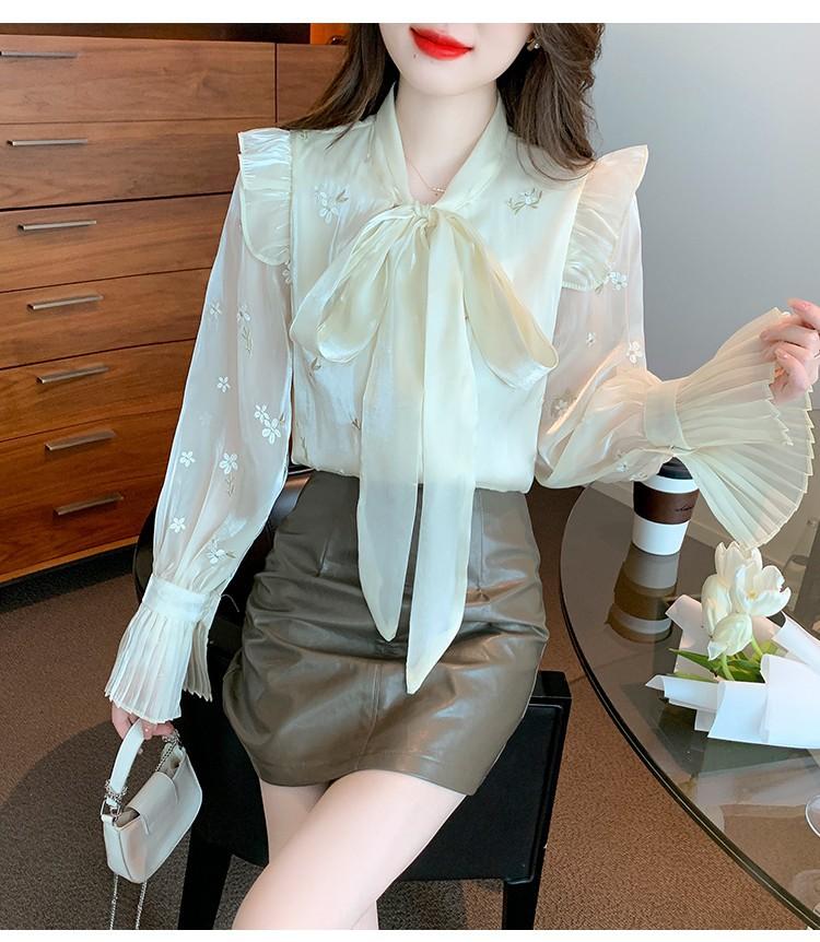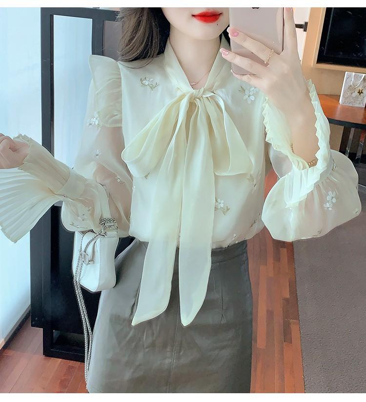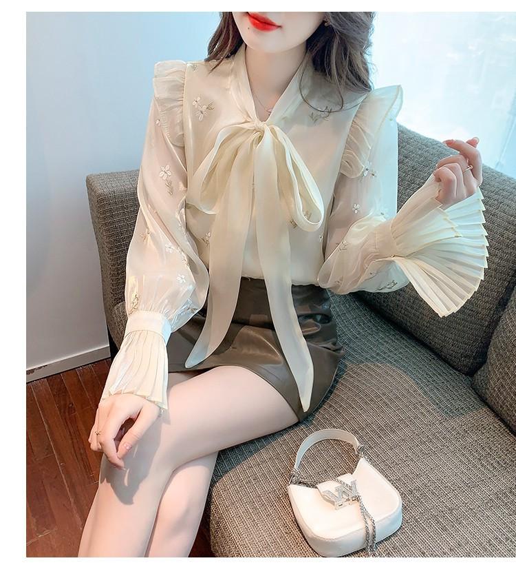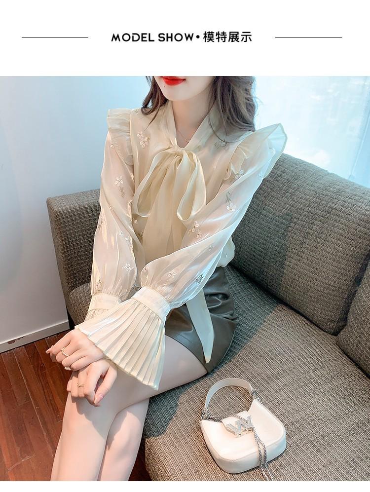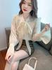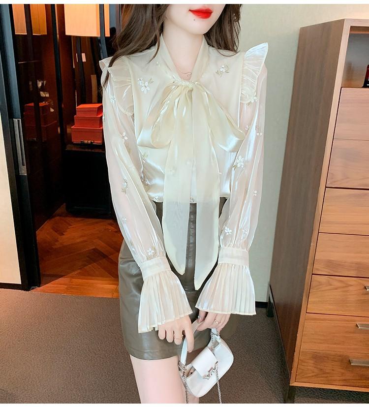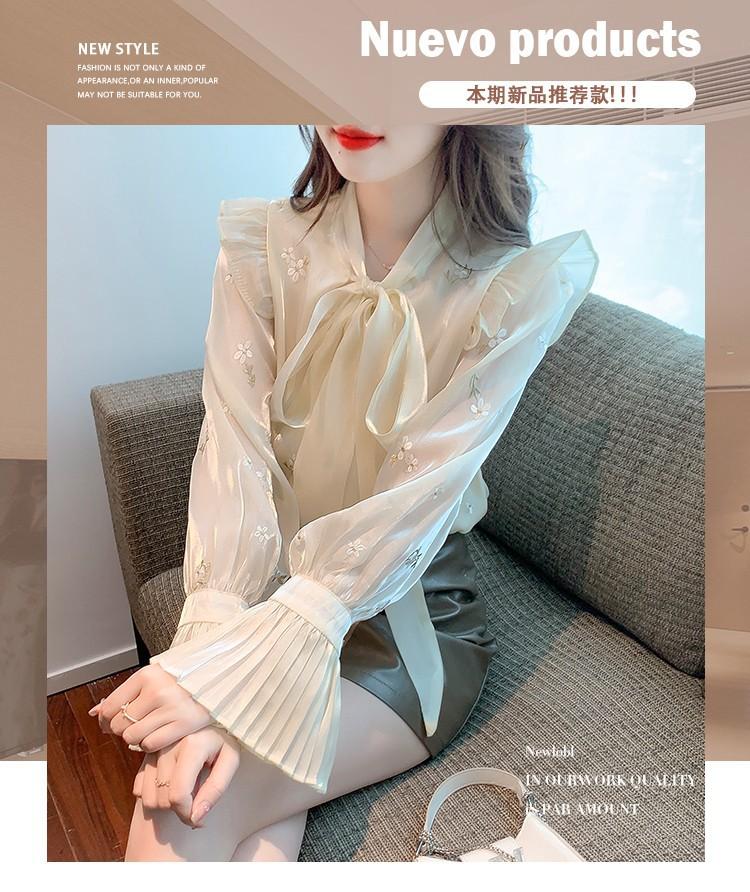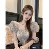 Camisa blanca de gasa de alta gama, suave, corta y fresca, con un diseño superior nicho francés, de estilo francés, de estilo francés.