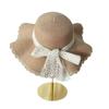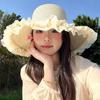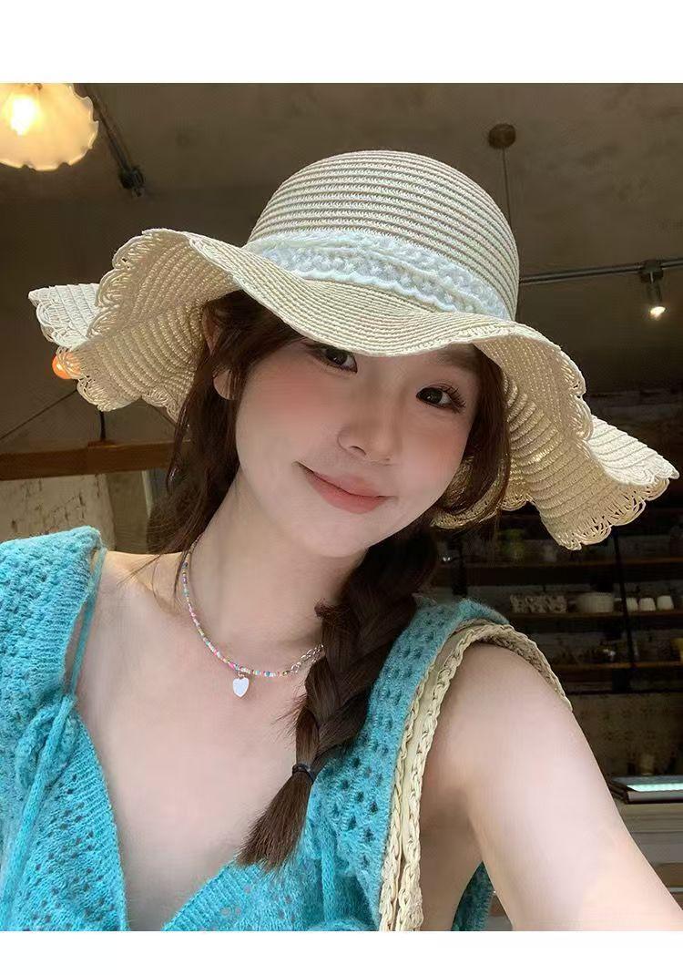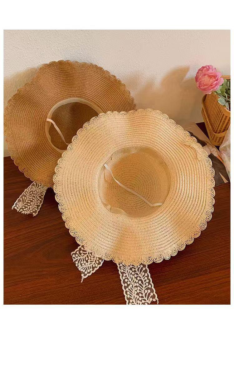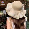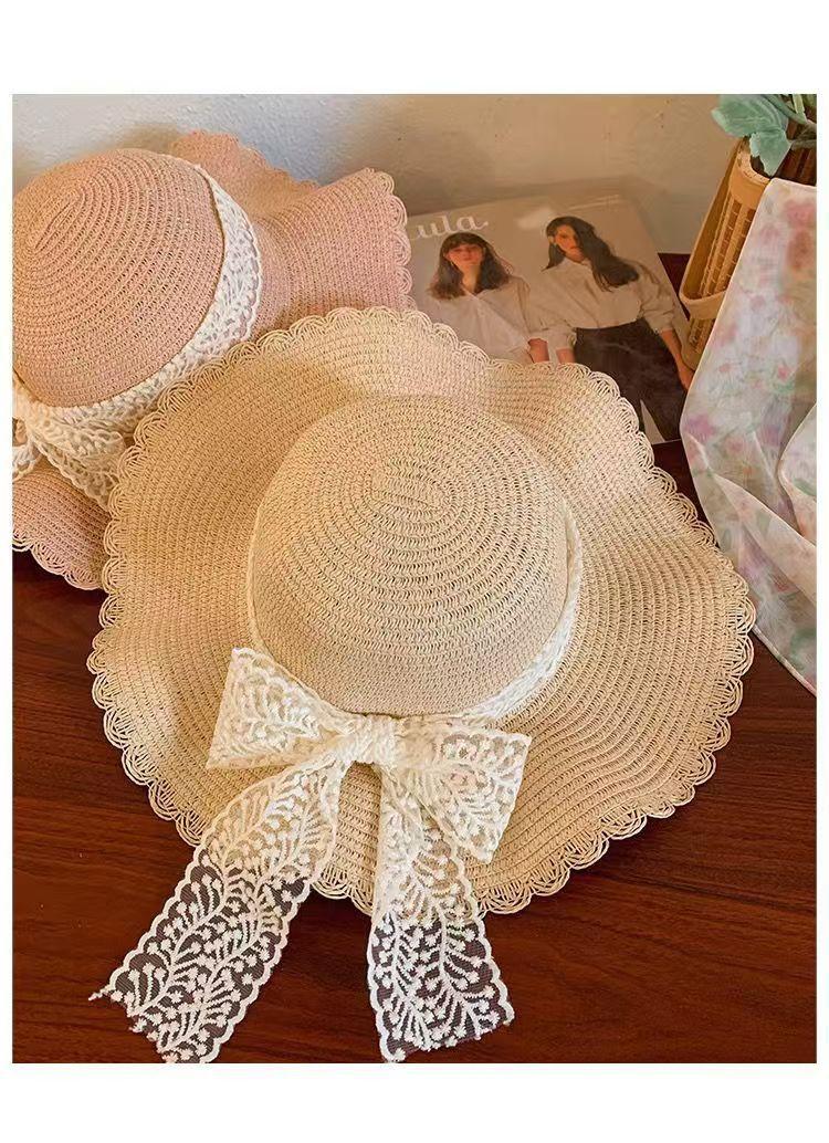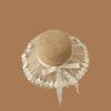 Sombrero de Paja de Ala Ancha con Lazo de Encaje Estilo Coreano para Mujer Verano Parasol Protector Solar Transpirable Sombrero de Playa Dulce Sombrero para el Sol