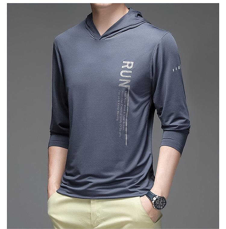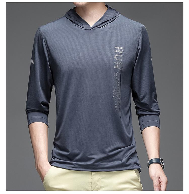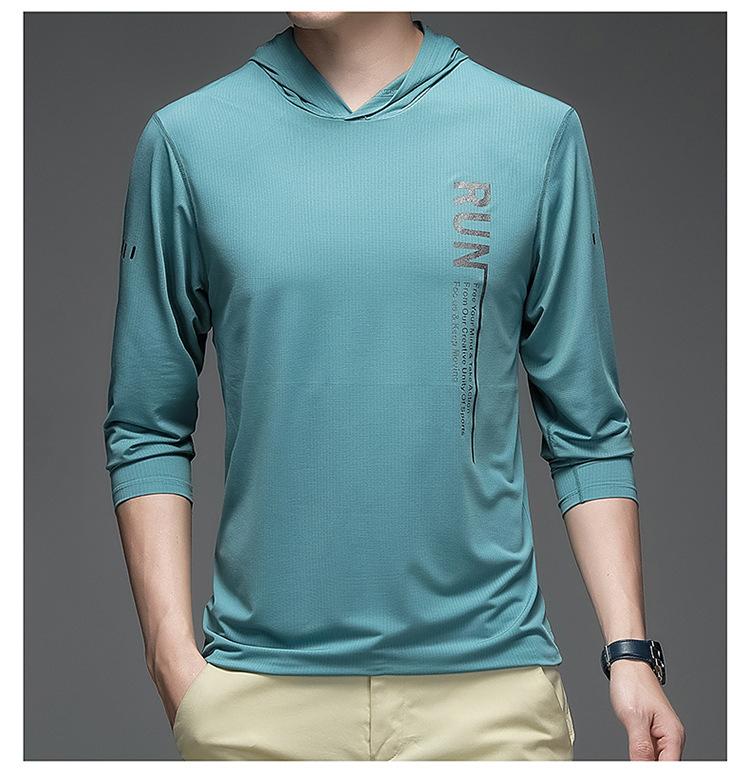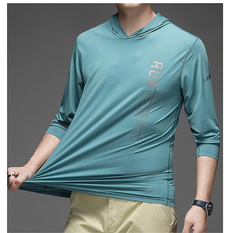 Camiseta de manga larga elástica deportiva para actividades al aire libre, ocio y fitness, de comercio exterior transfronterizo, ultrafina, de seda helada, de secado rápido, para verano y primavera.