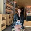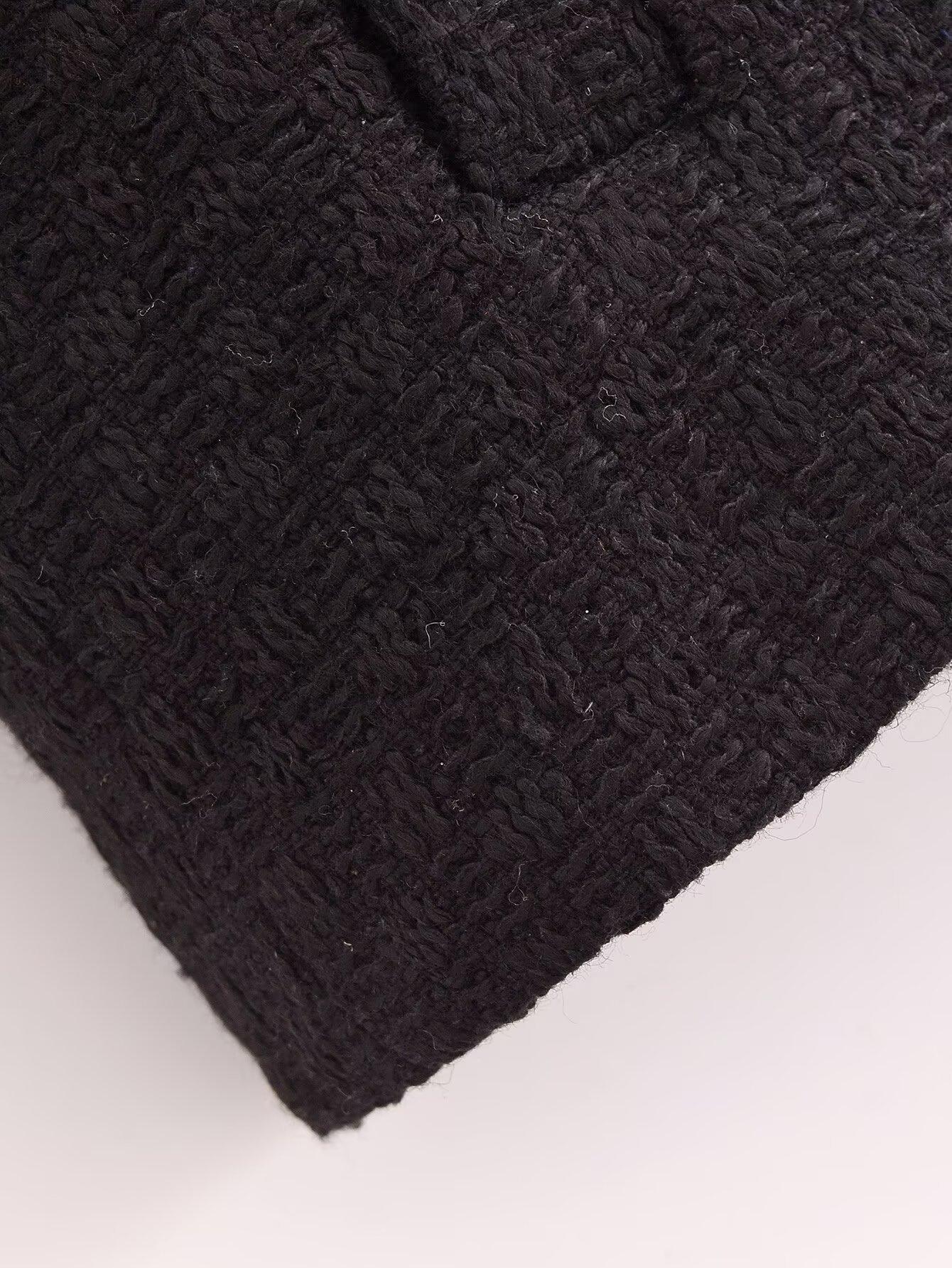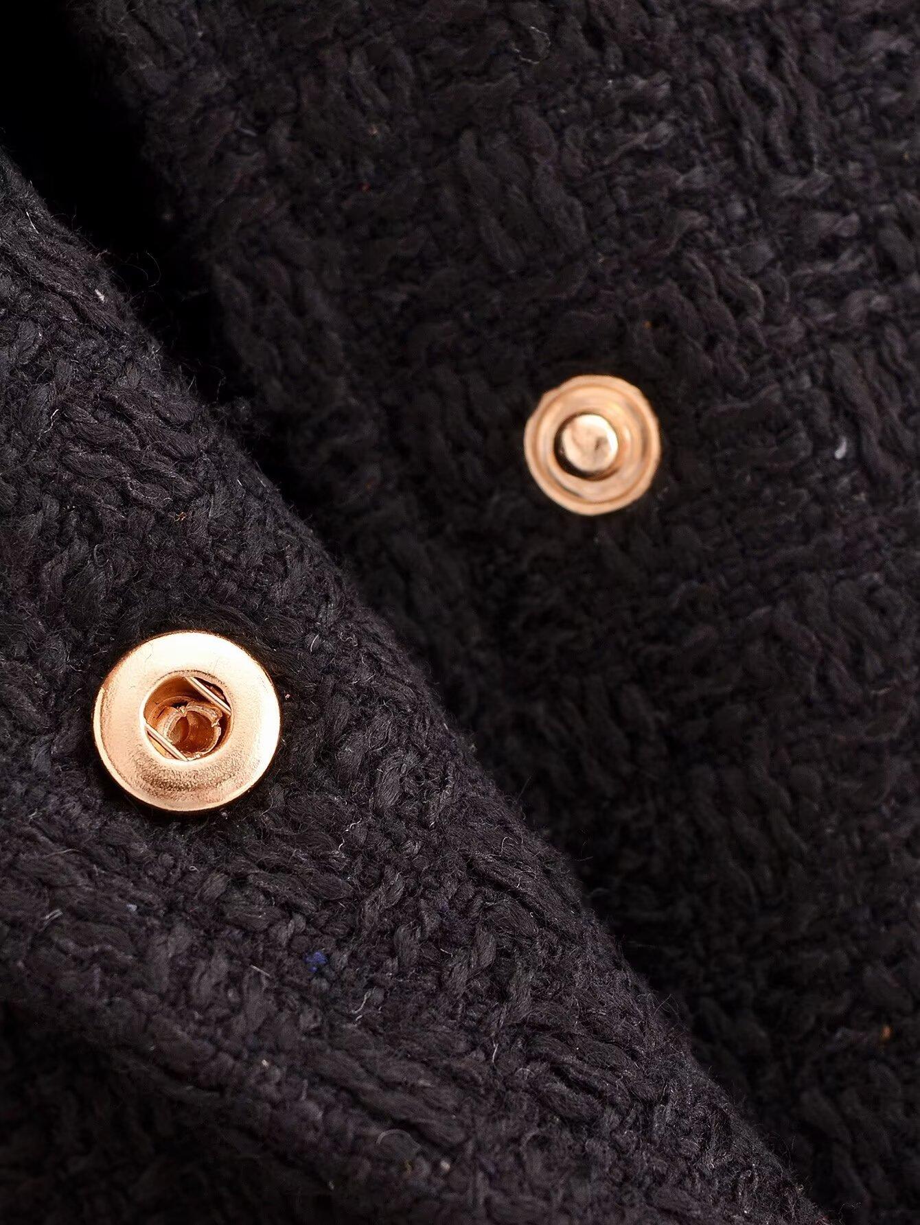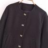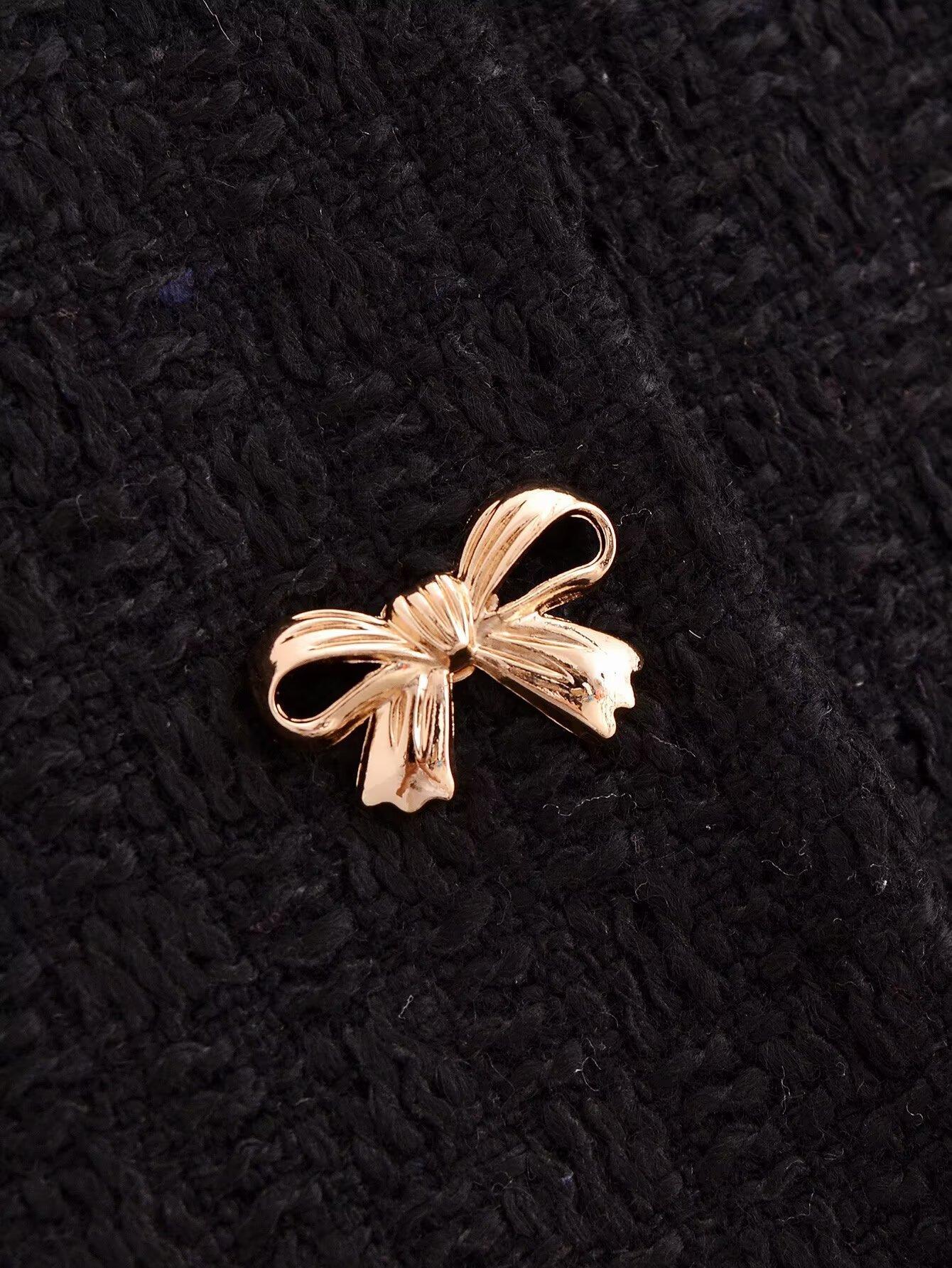 Chaqueta de manga larga con cuello alto y lazo decorado con cardado negro para otoño e invierno, abrigo para mujer 2024, tendencia europea y americana, nueva parte superior