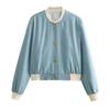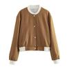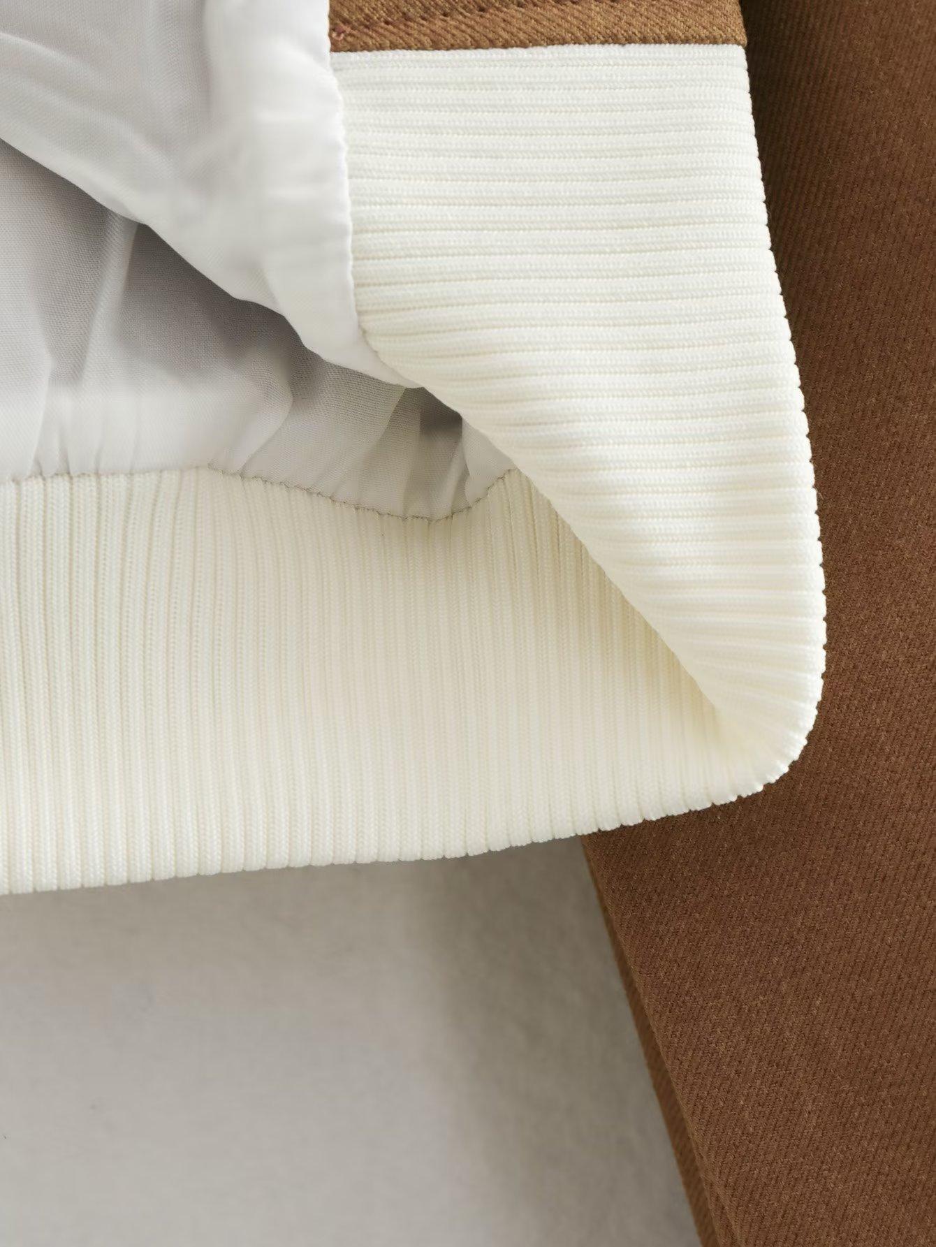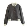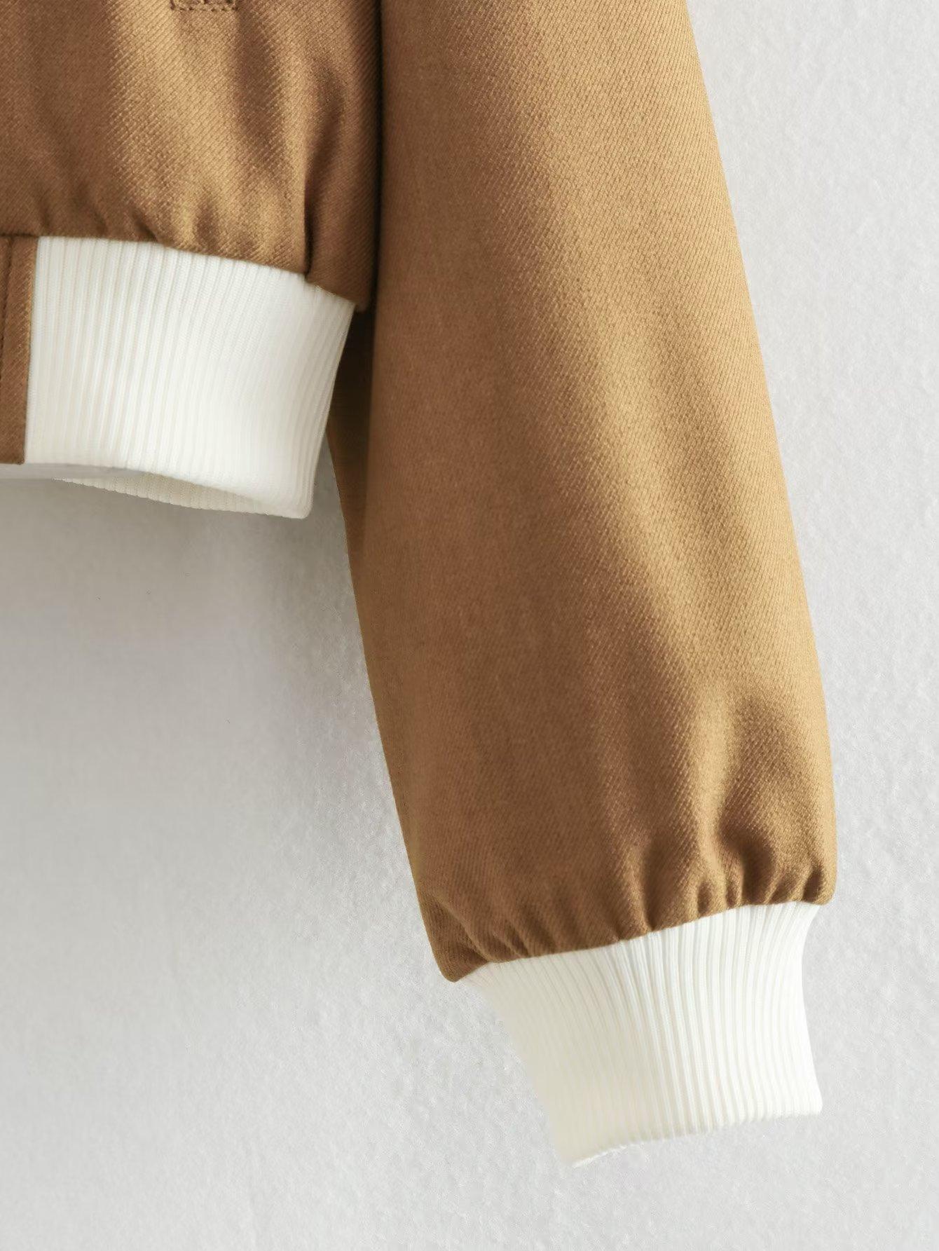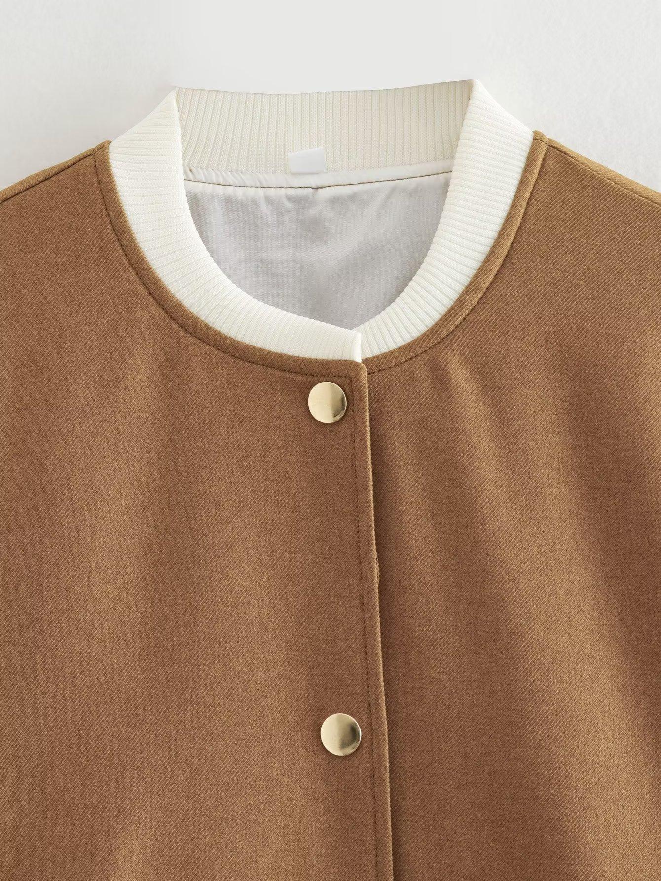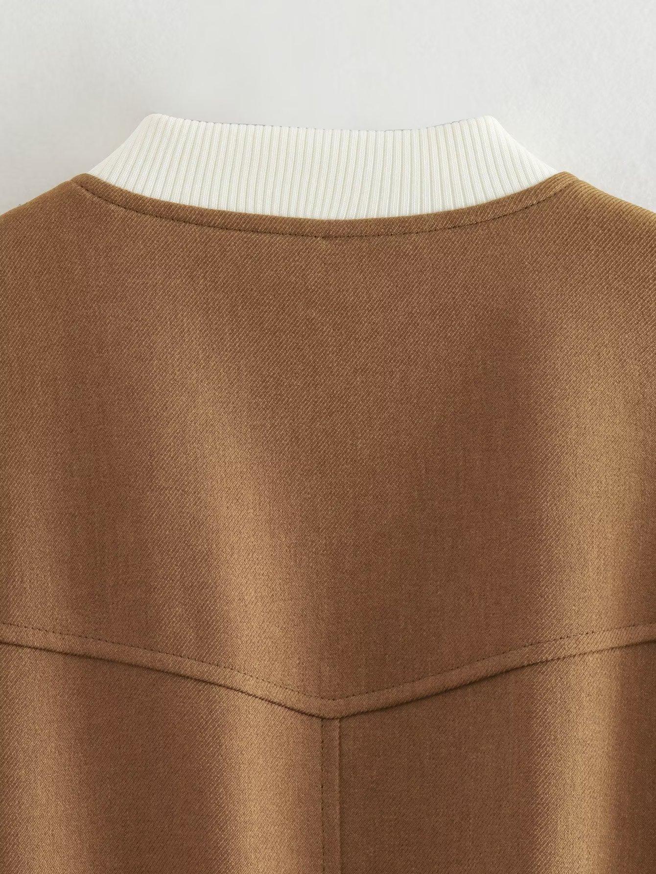 Chaqueta de aviador estilo motero con cuello vertical y doble bolsillo en contraste, estilo Amazon Explosive 2024, para mujer, talla A1