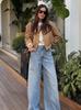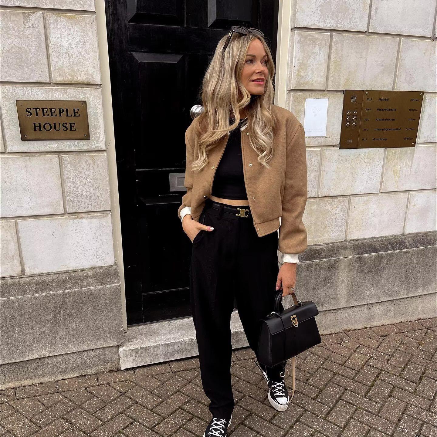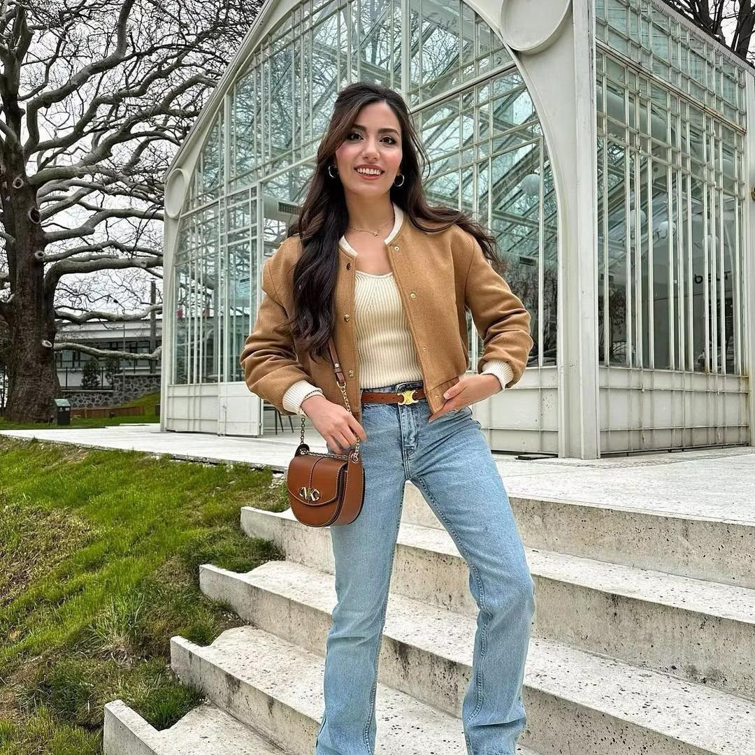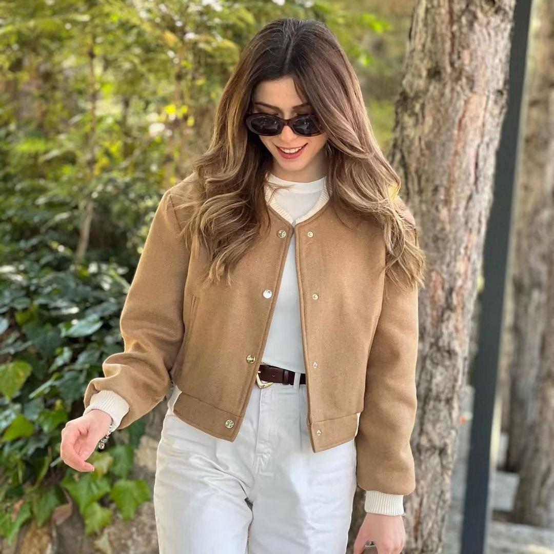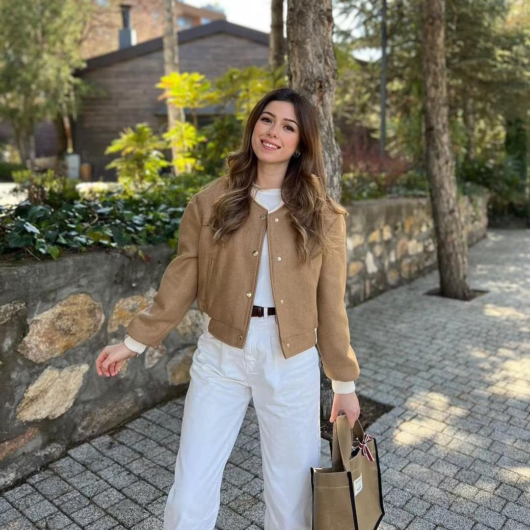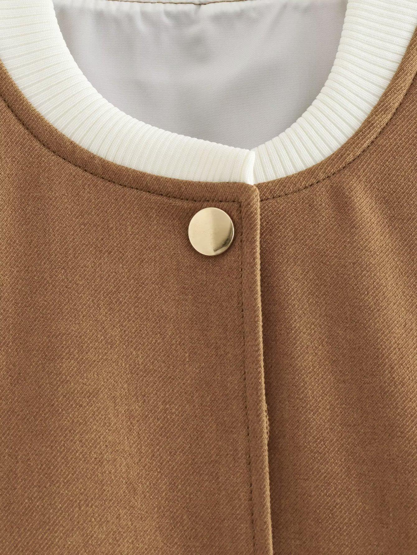 Chaqueta de aviador estilo motero con cuello vertical y doble bolsillo en contraste, estilo Amazon Explosive 2024, para mujer, talla A1