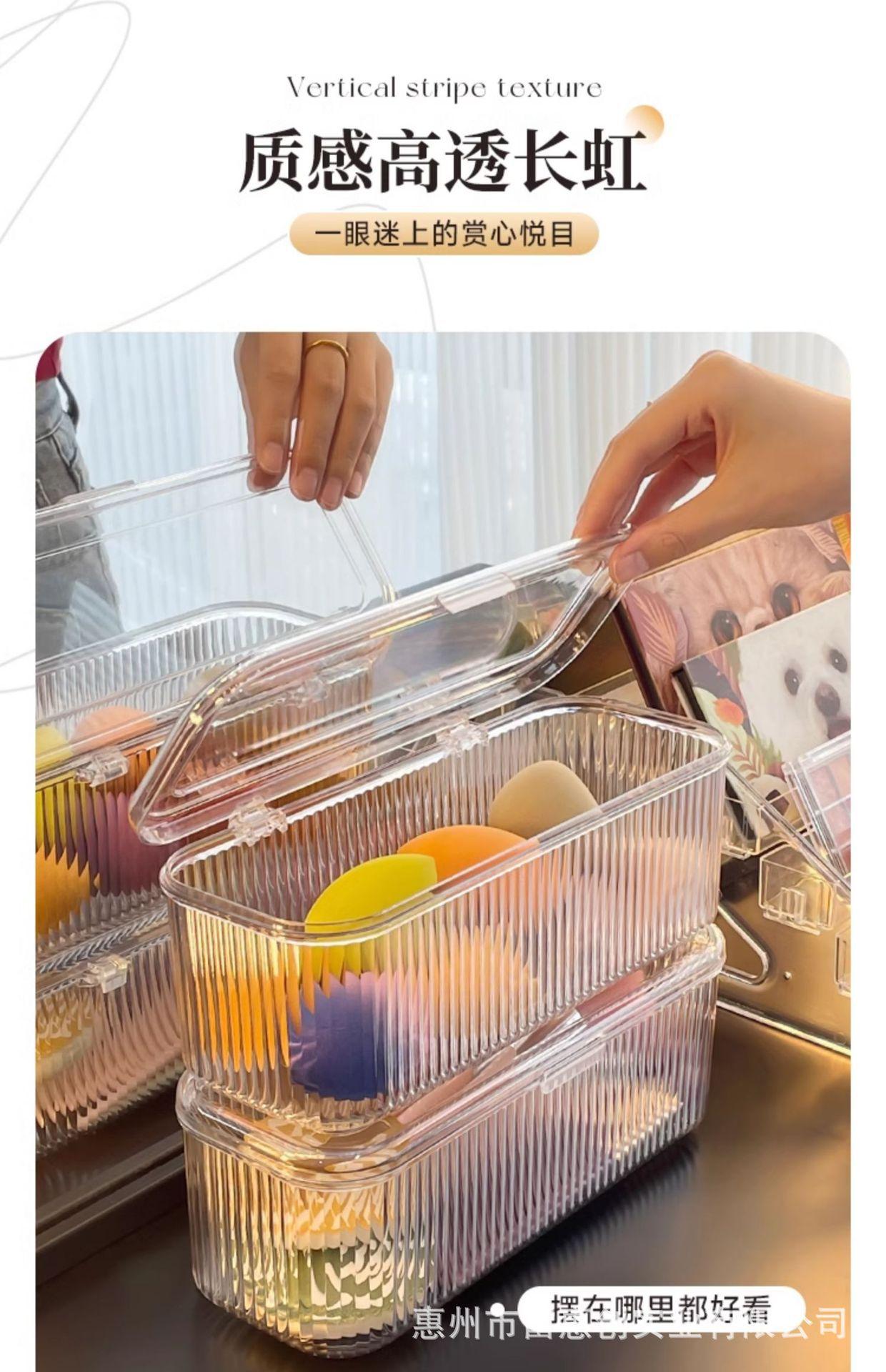Compra Caja de Almacenamiento para Puff de Polvo de Huevo de Maquillaje de Belleza Transfronteriza, Tocador de Escritorio, Soporte de Almacenamiento para Cojín de Aire, Caja a Prueba de Polvo para Lápiz Labial y Brochas Cosméticas al por mayor en Joom.pro