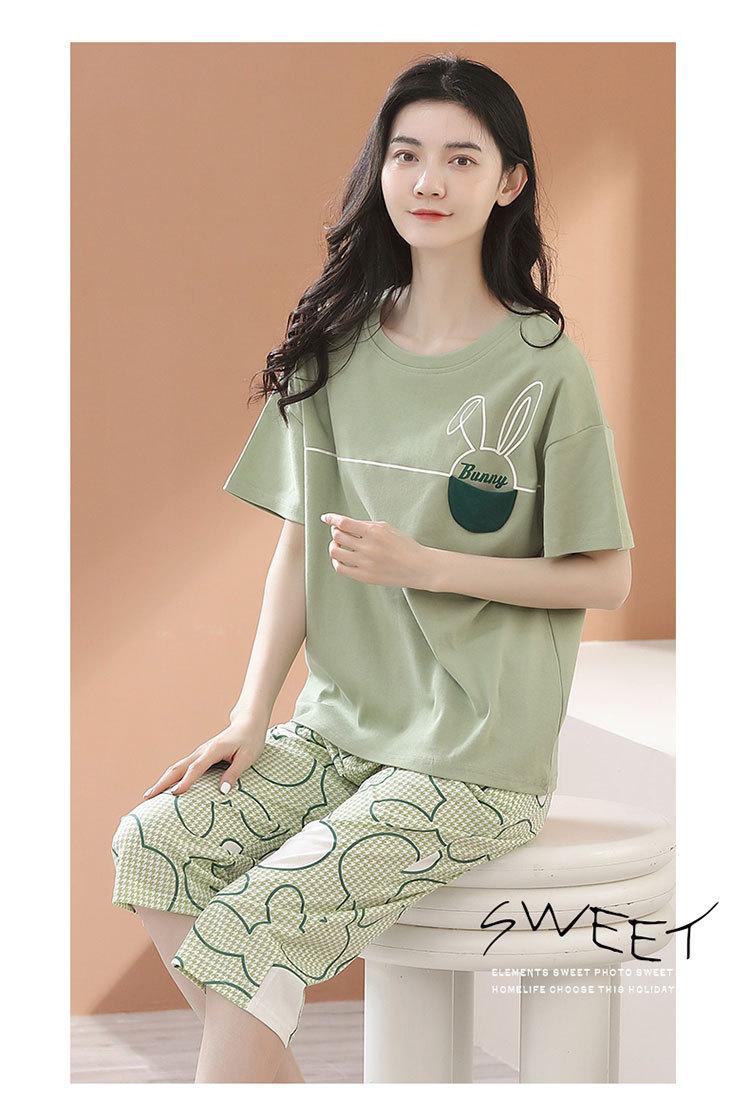 Pijama de algodón 100% para mujer, de verano, de algodón puro, de manga corta, con pantalones cortos, ropa para el hogar, jersey informal de verano, traje de talla grande