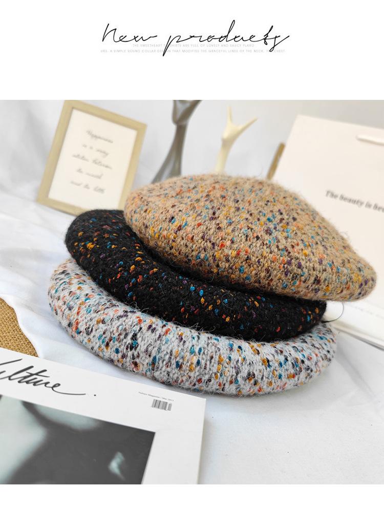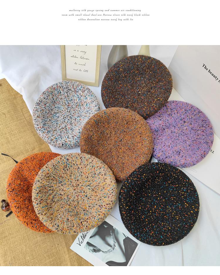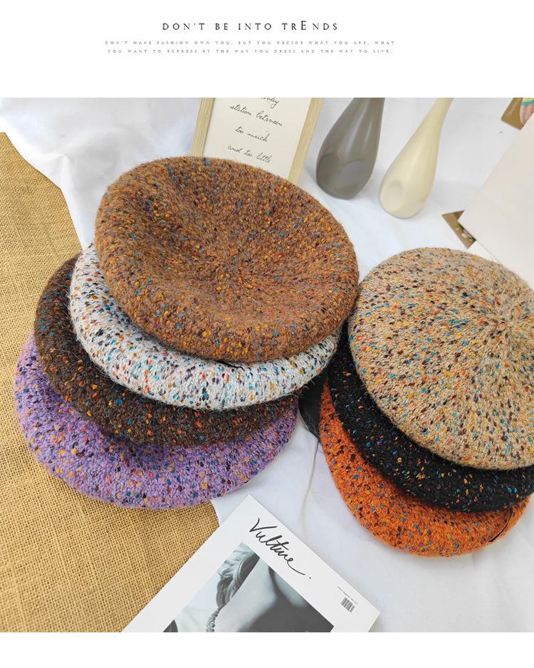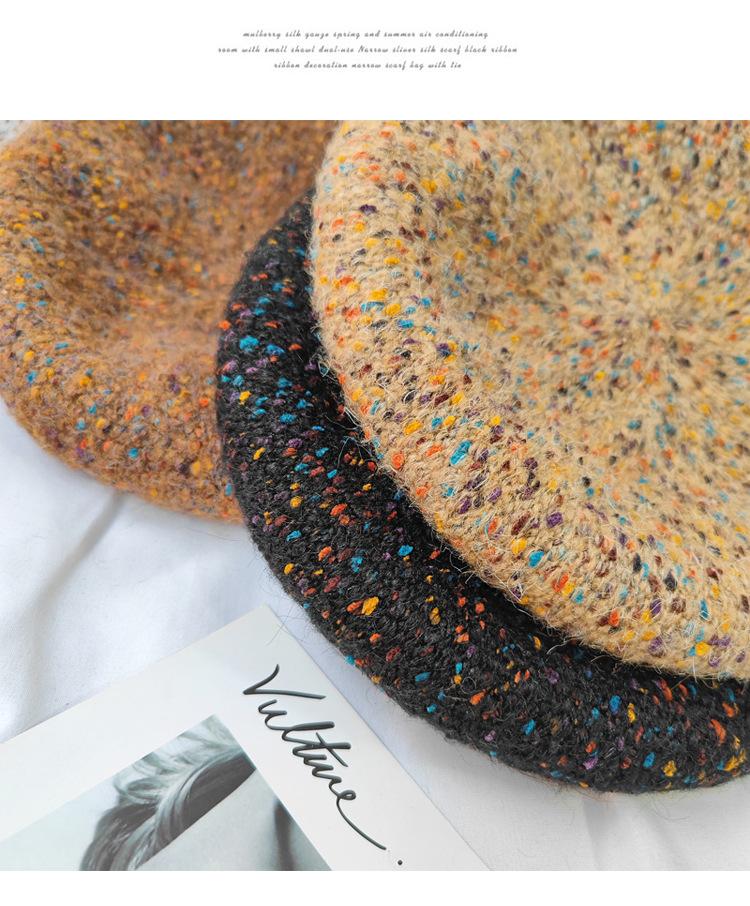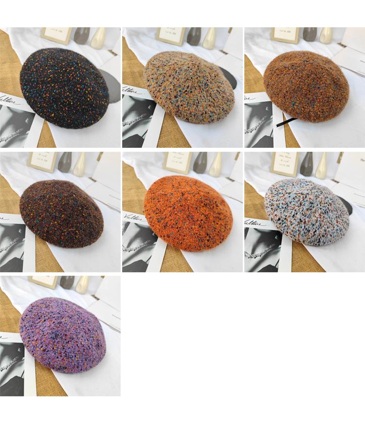 Boina de lana de colores mixtos de estilo japonés para mujer, gorro de pintor versátil de otoño e invierno, gorro de calabaza retro, boina con personalidad, estilo coreano moderno