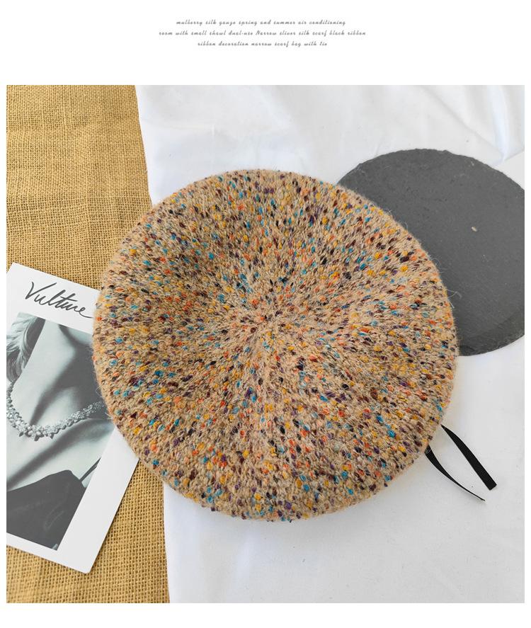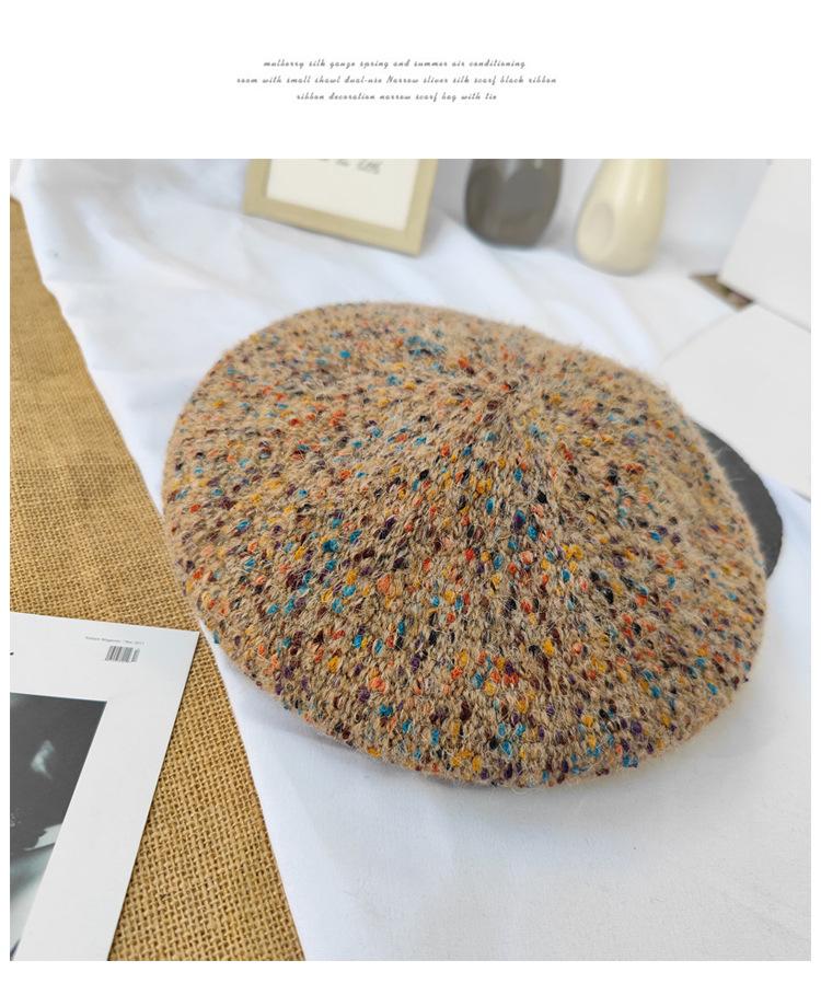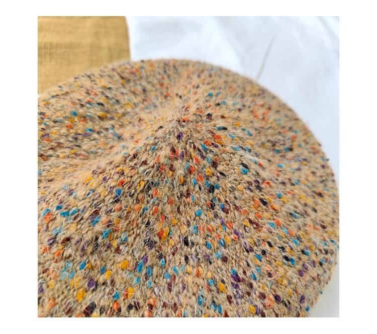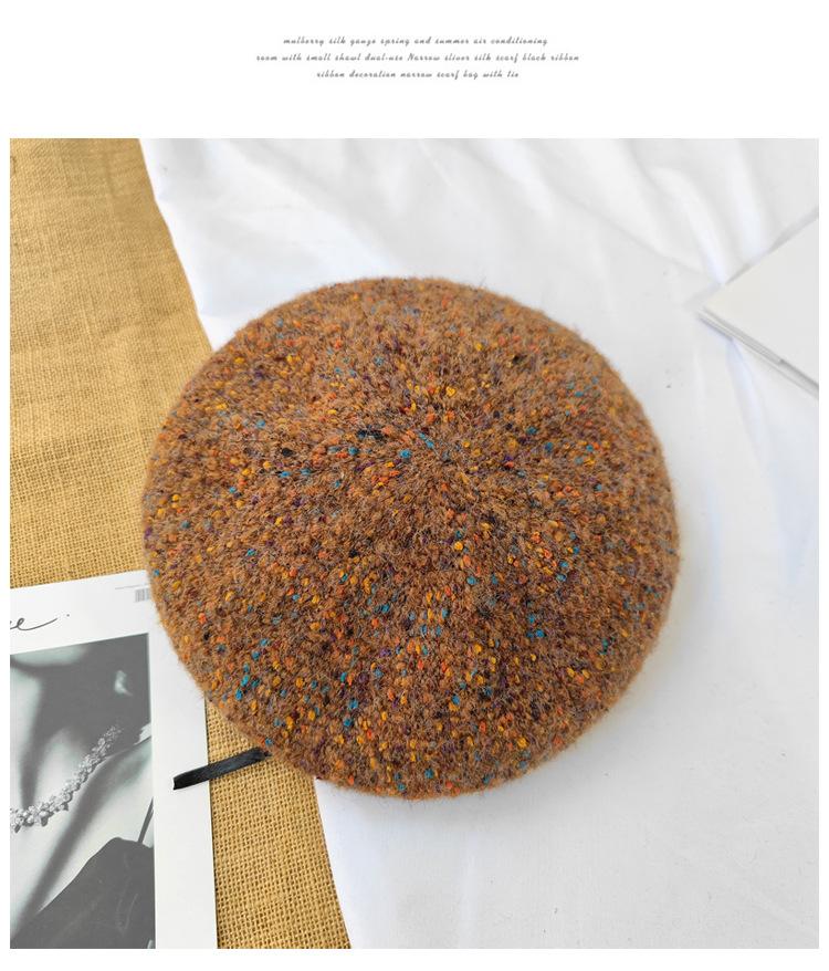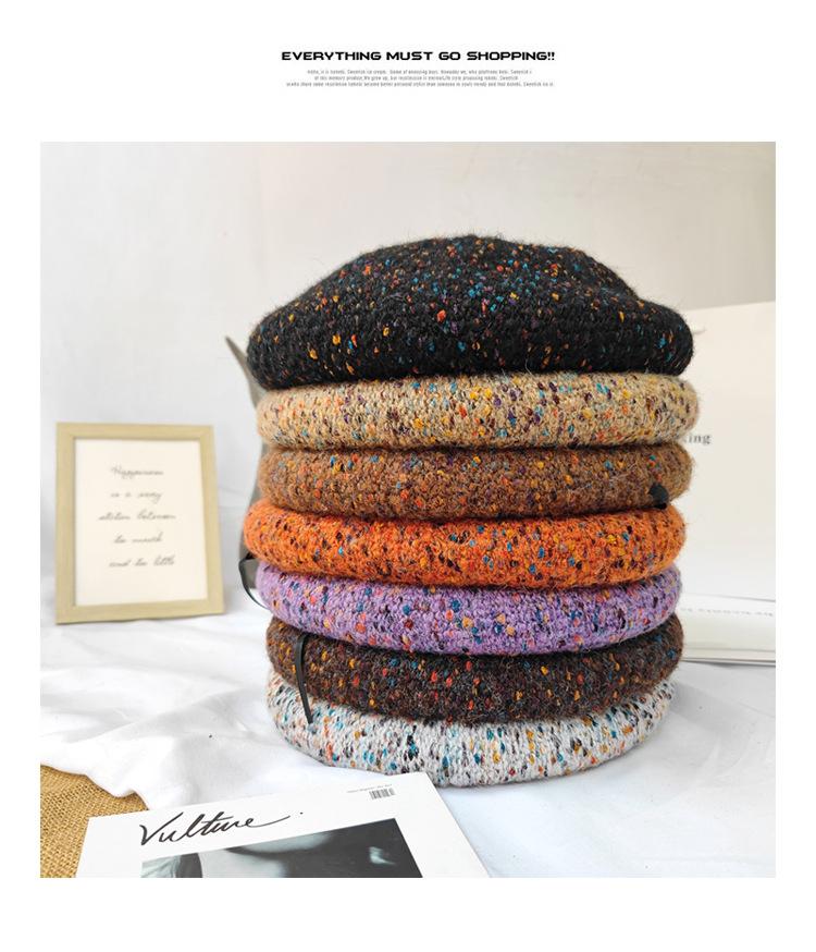 Boina de lana de colores mixtos de estilo japonés para mujer, gorro de pintor versátil de otoño e invierno, gorro de calabaza retro, boina con personalidad, estilo coreano moderno
