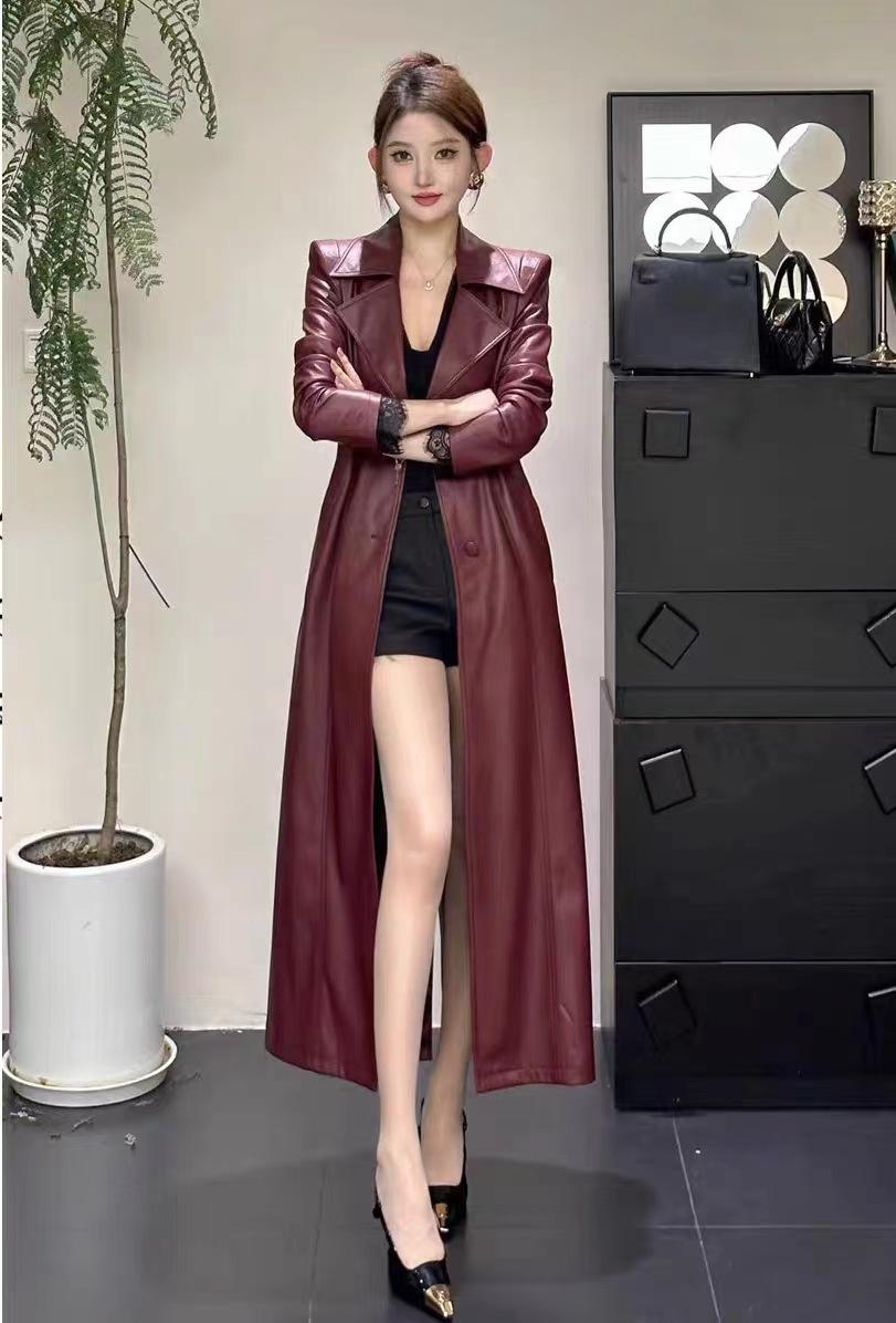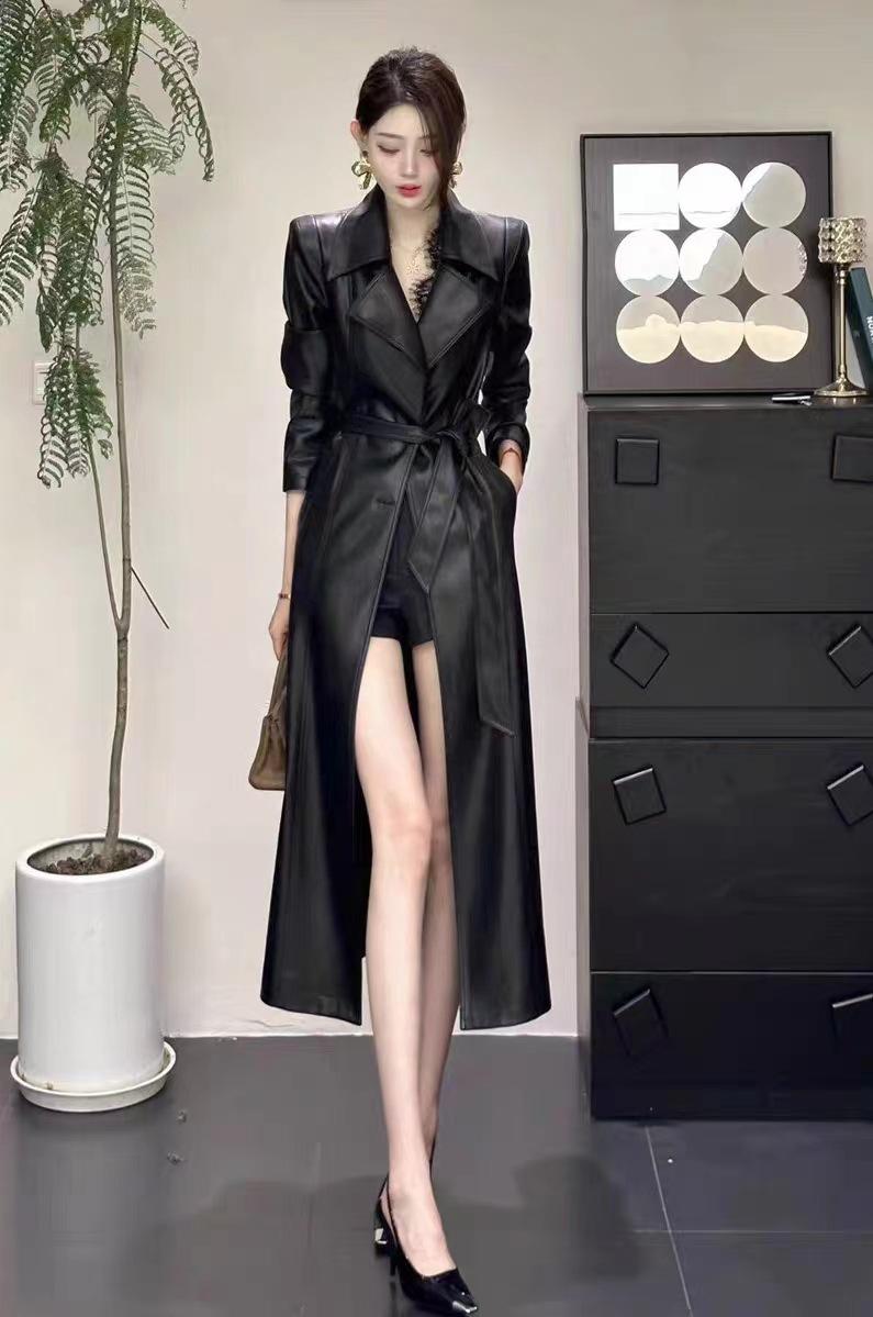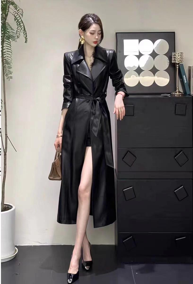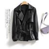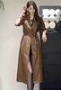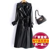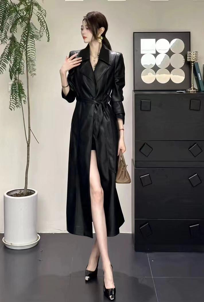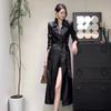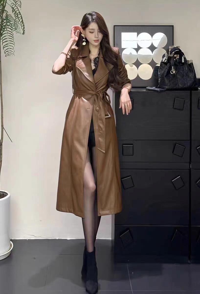 Prendas de vestir de cuero de alta calidad y moda para mujer, otoño e invierno 2024, nuevo estilo coreano, elegantes prendas de vestir de cuero sintético de longitud media y delgadas.