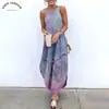 Vestido de verano con falda halter, cuello halter, estampado de sol, para mujer, estilo transfronterizo, largo, irregular