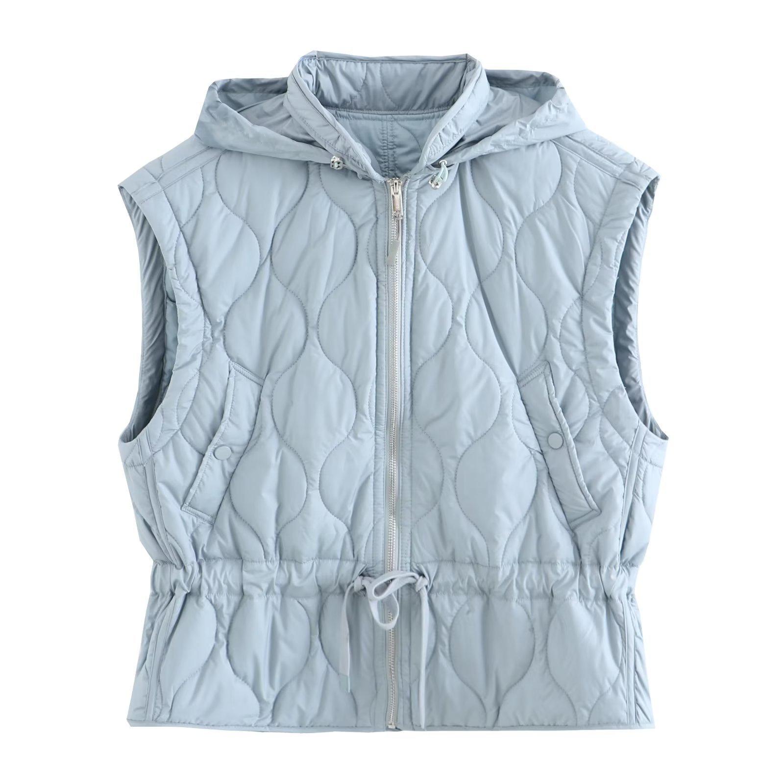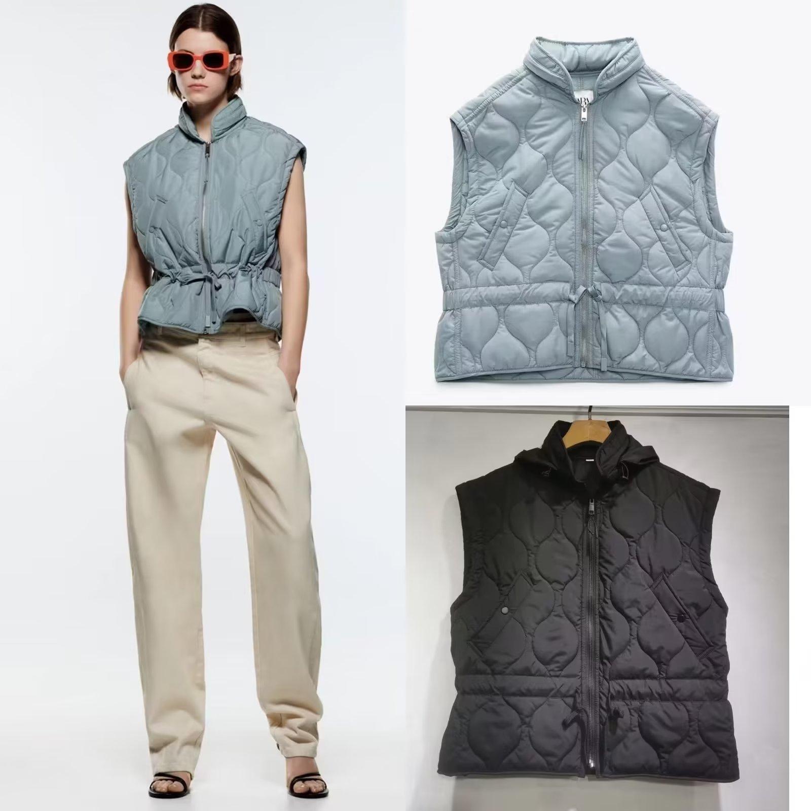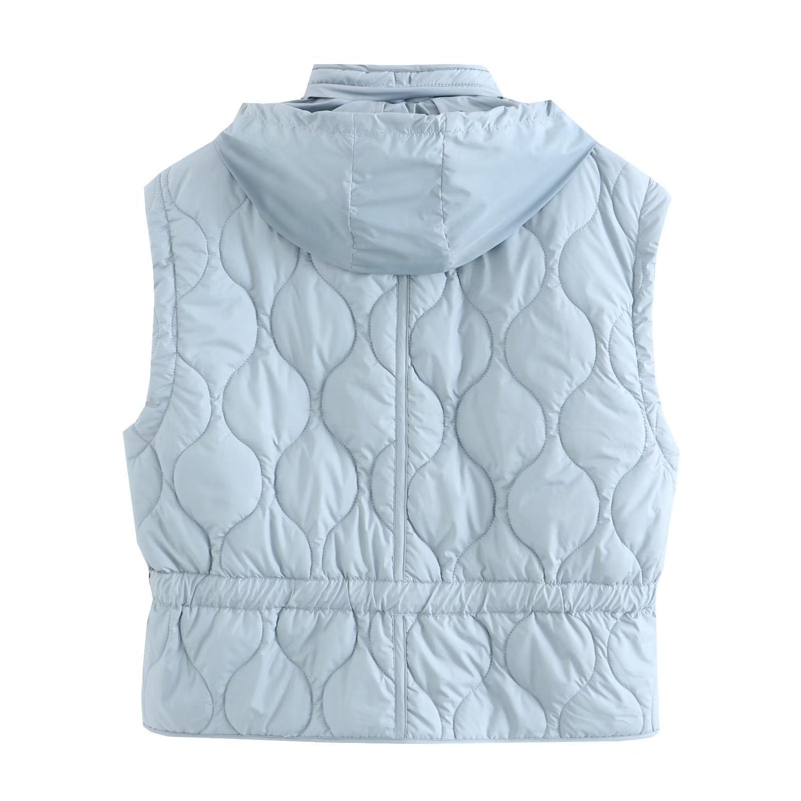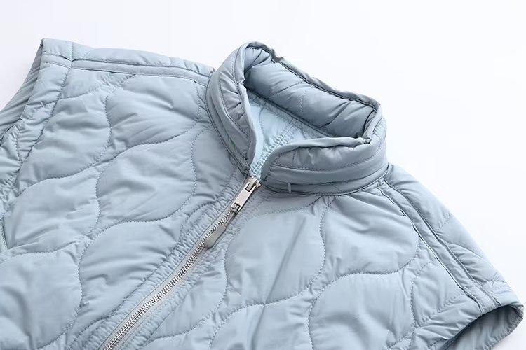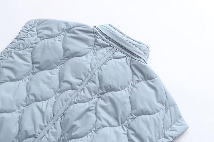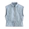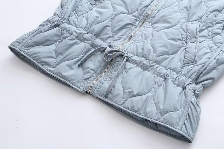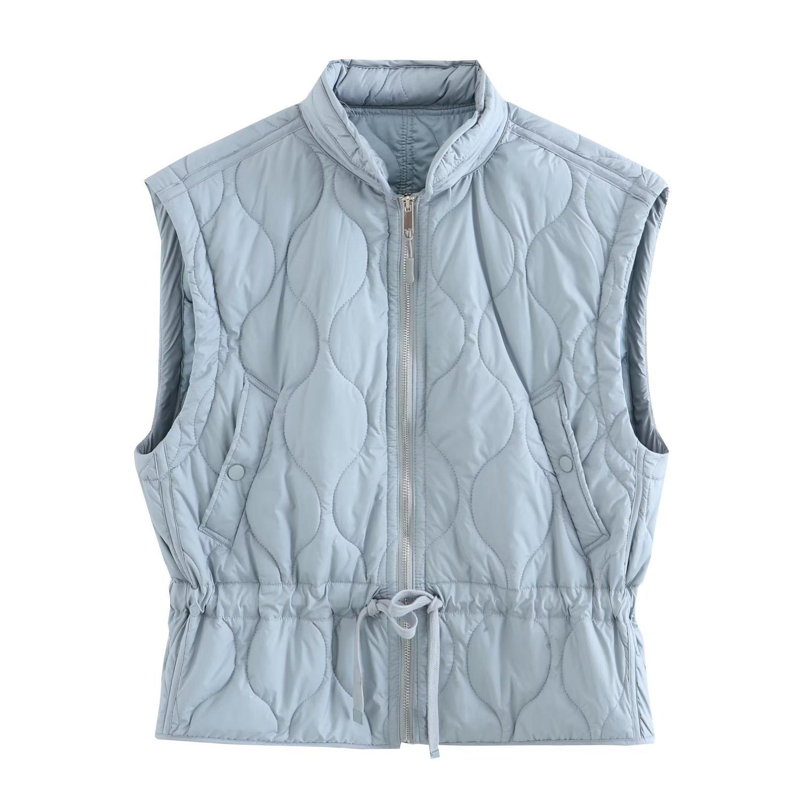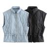 Ropa de Otoño e Invierno para Mujer Chaleco Casual con Cuello Alto y Cordón Europeo y Americano Chaleco de Algodón sin Mangas con Rombos