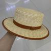 Sombrero de Paja Verde Recubierto ins Sombrero de Copa de Copa Plana de Moda Británica para Mujer Verano Protector Solar de Playa