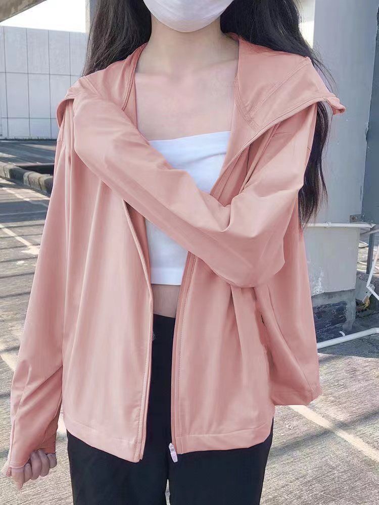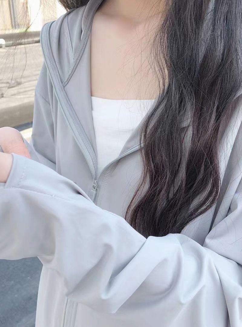 Ropa de Protección Solar de Seda de Hielo para Mujer en Verano Delgada de Manga Larga Suelta Transpirable Moda Plátano con Capucha Ropa de Protección Solar Chaqueta Cárdigan Moderna