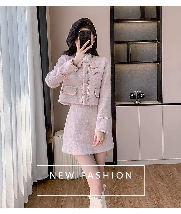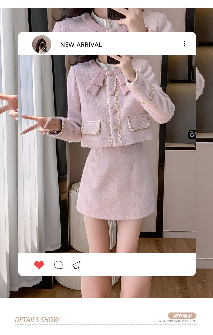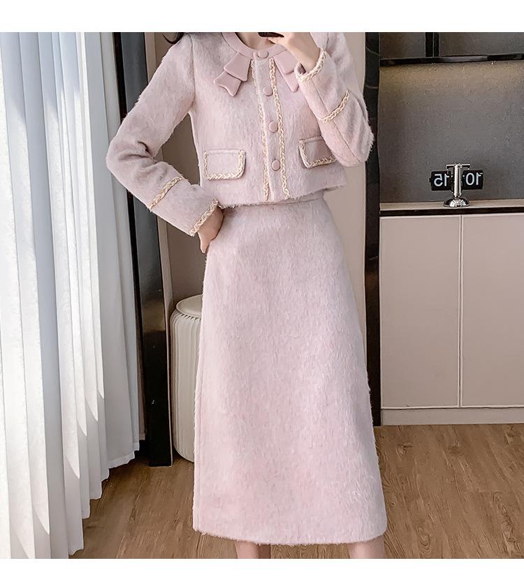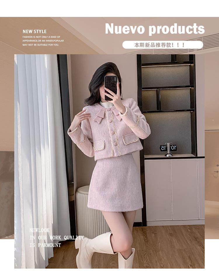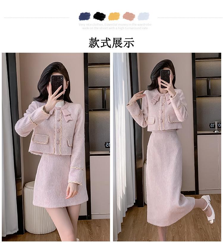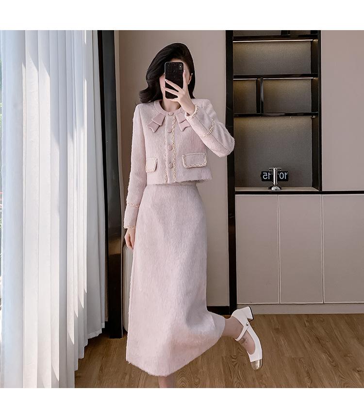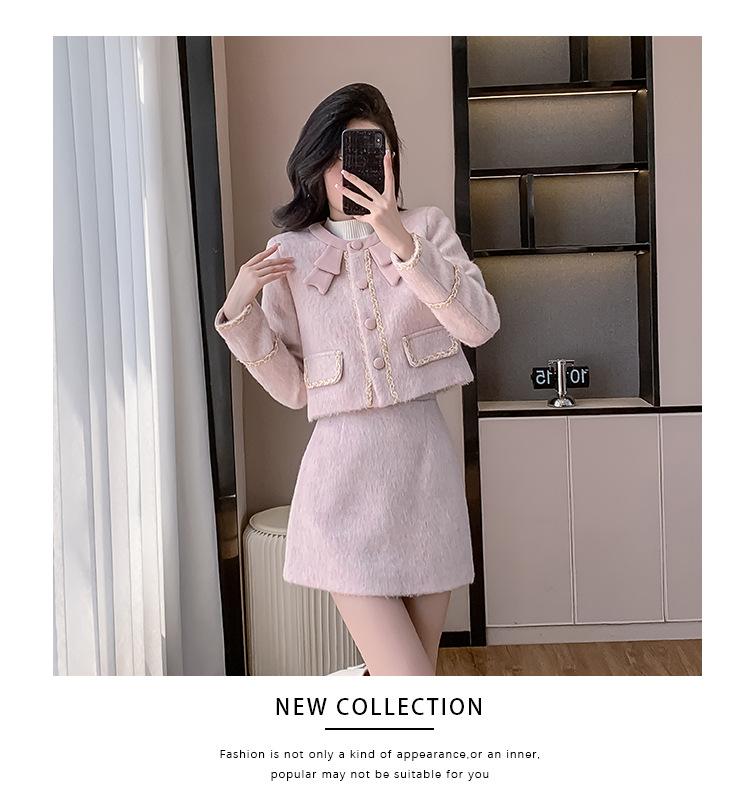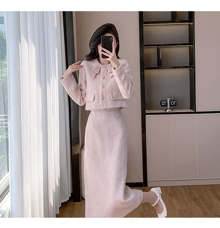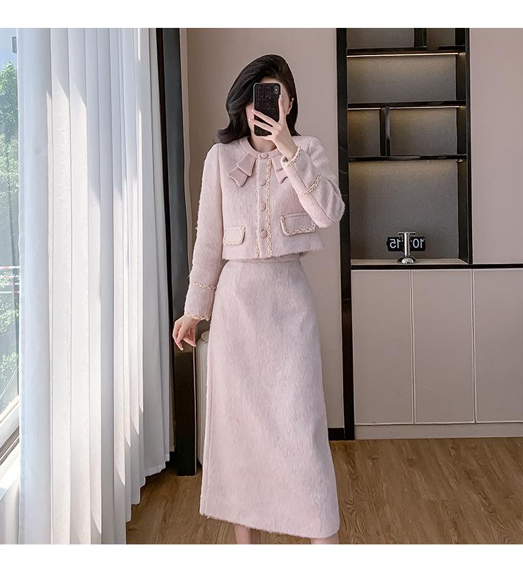 Toma real otoño e invierno 2025 nueva moda rosa Joker traje de lazo viento suave socialité conjunto de dos piezas para mujer