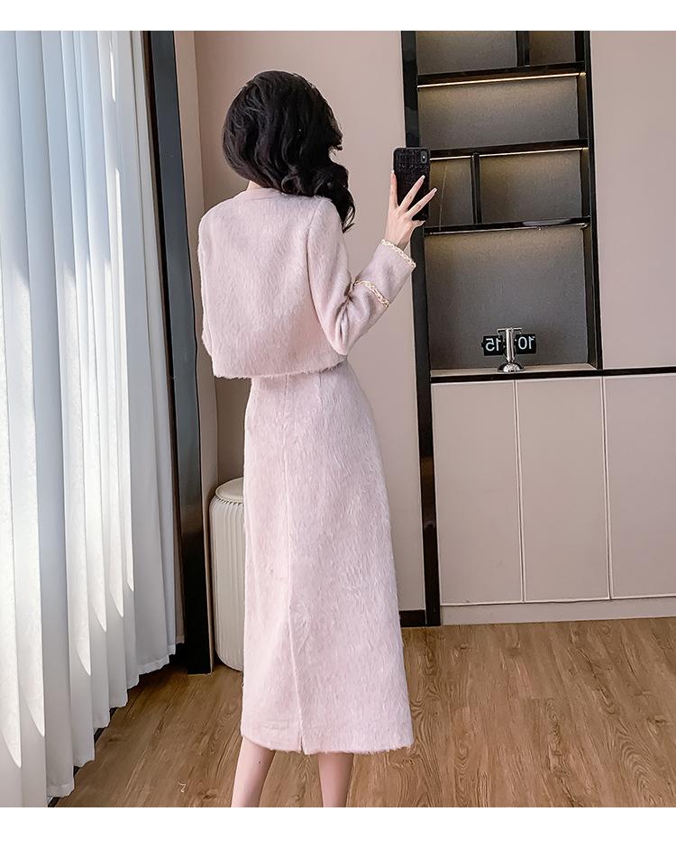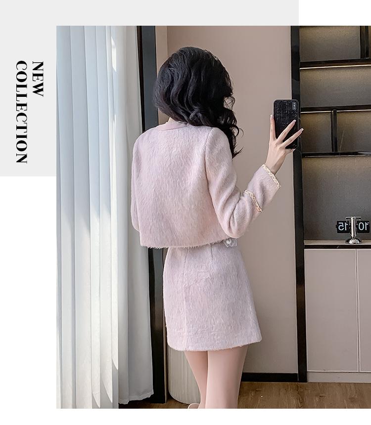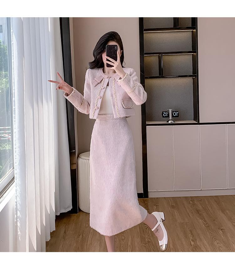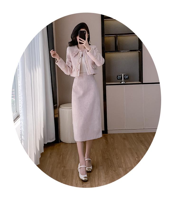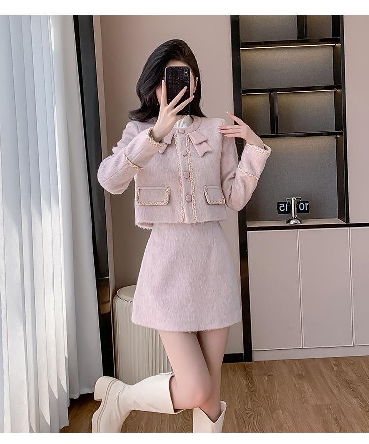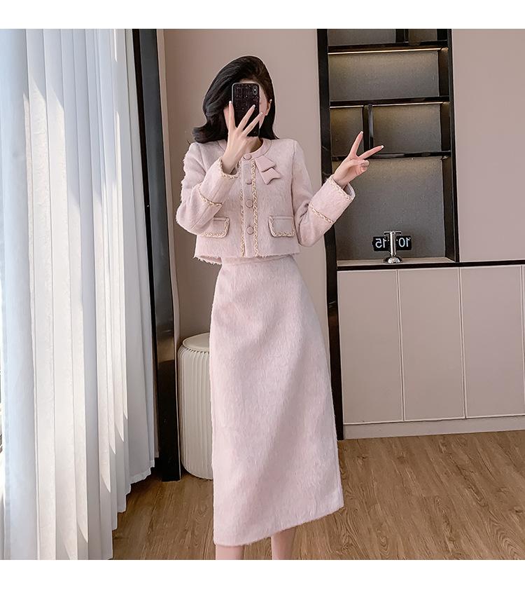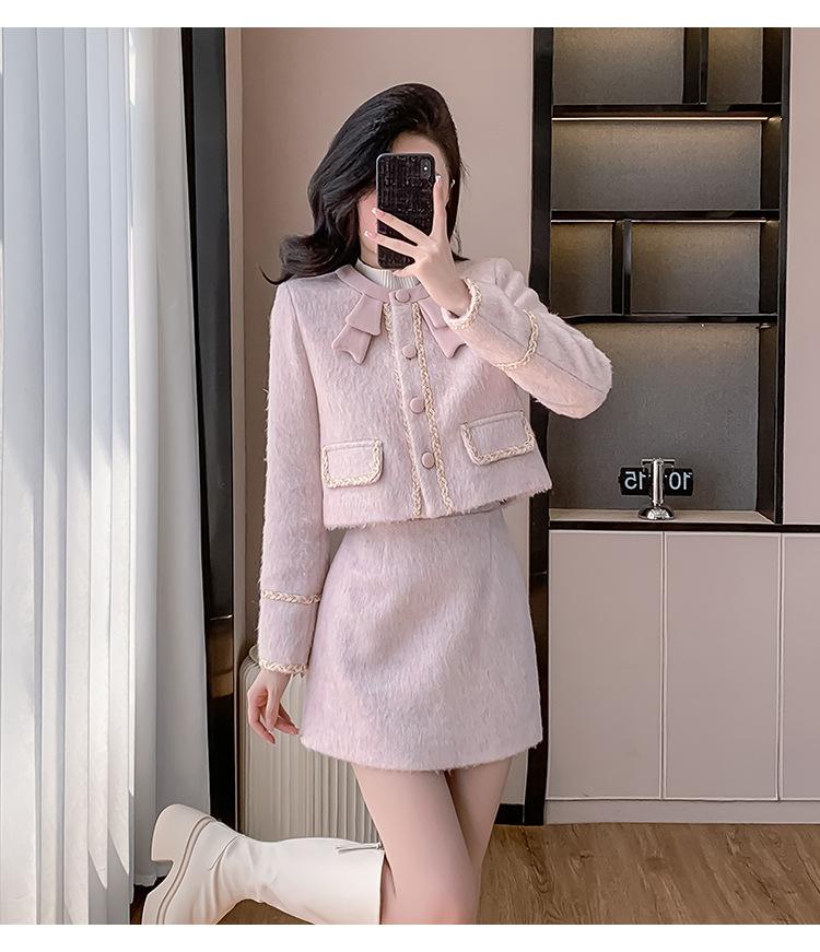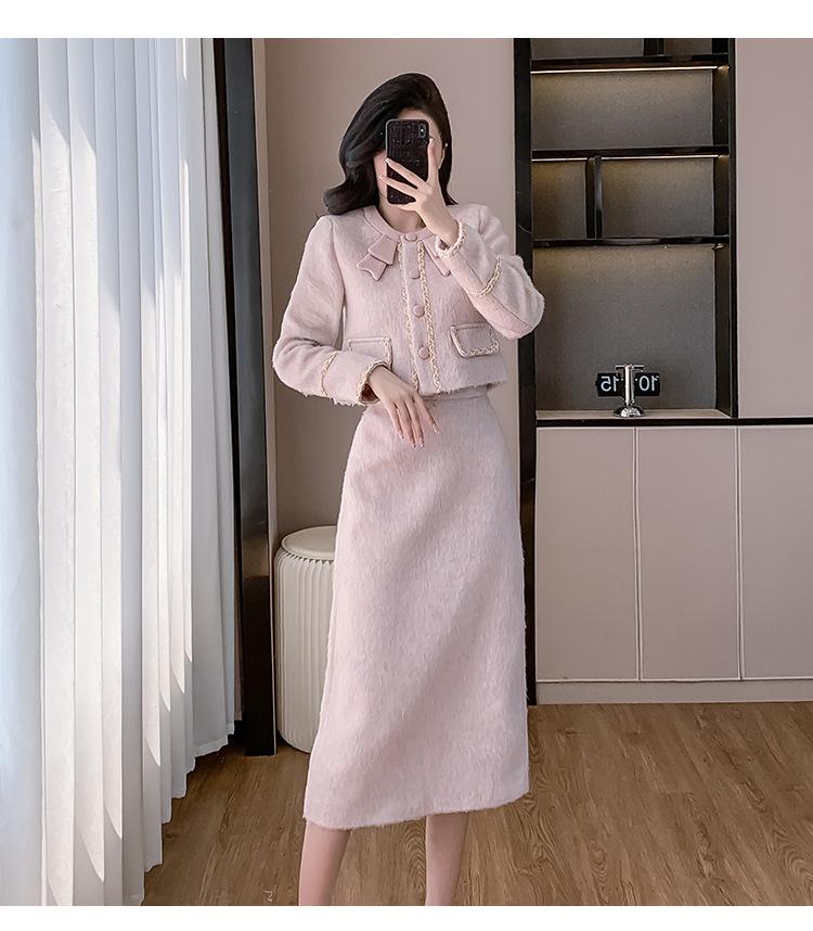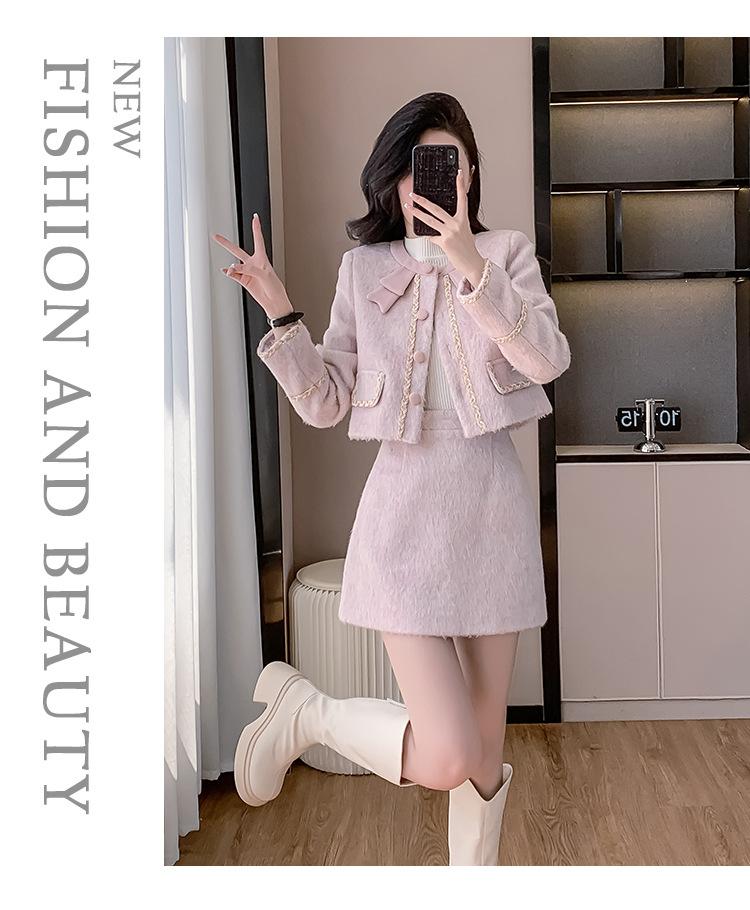 Toma real otoño e invierno 2025 nueva moda rosa Joker traje de lazo viento suave socialité conjunto de dos piezas para mujer