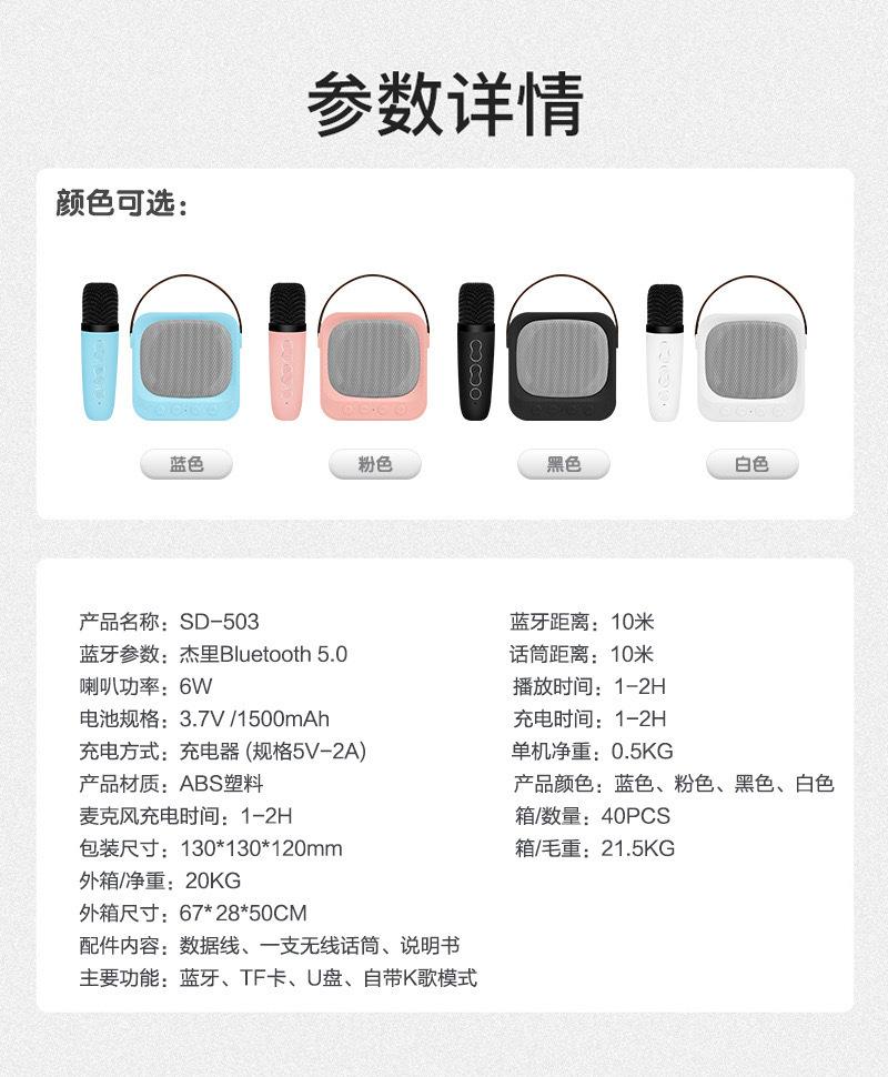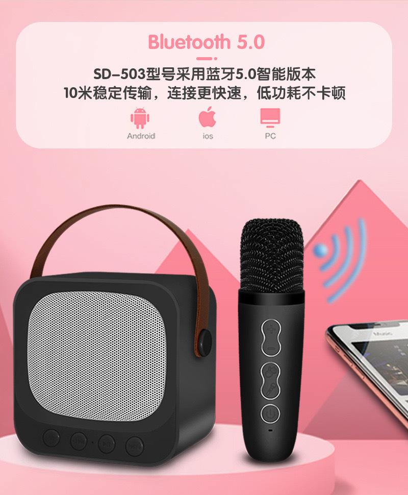 SD503 - Minialtavoz Bluetooth integrado con micrófono de karaoke, inalámbrico, portátil, para el hogar, para cantar al aire libre
