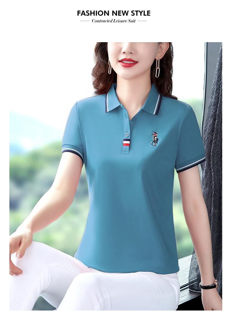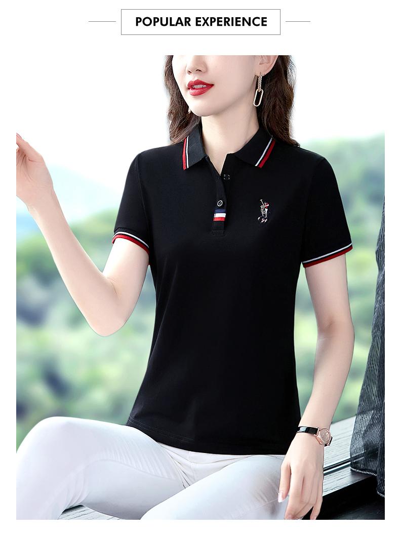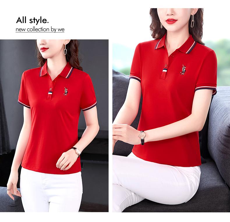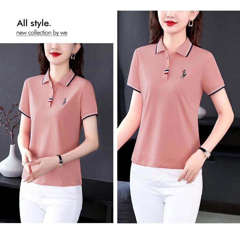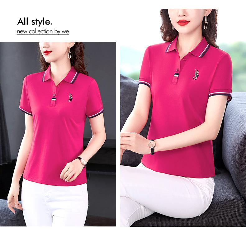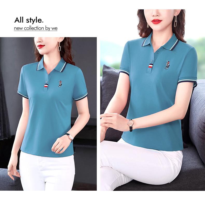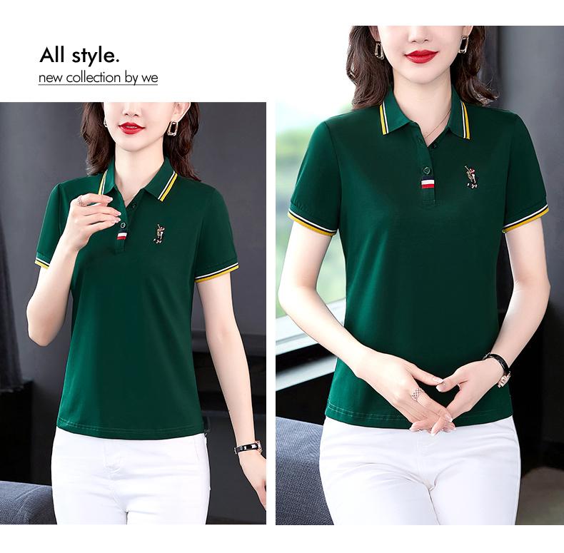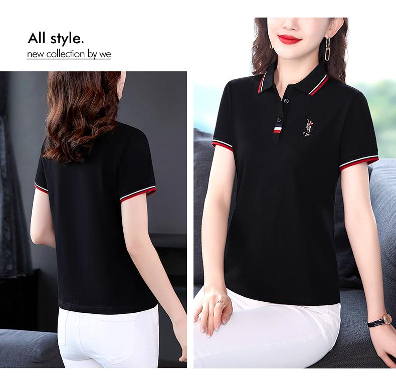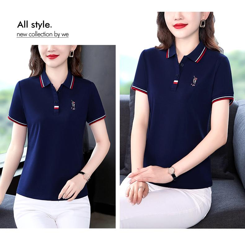 Camiseta de Solapa para Mujer Madre Verano 2022 Nuevo Estilo Coreano Moda Mujer Camisa Polo Deportiva Líder Reductora de Edad Top m