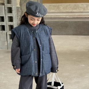 Chaleco de plumas para niñas 2024, nueva ropa de invierno, elegante chaleco de cuello alto versátil y grueso para niños, chaqueta, chaleco, top |