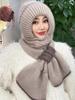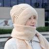 Sombrero Nuevo de Otoño e Invierno para Mujer con Forro Polar Grueso a Prueba de Frío Bufanda Sombrero Integrado Trenzado Sombrero Cálido de Lana Tejida