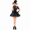 Con sombrero, guantes, cinturón, falda