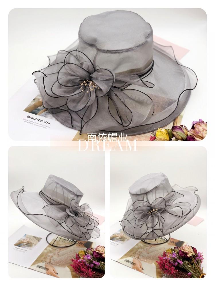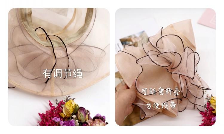 Sombrero de Verano para Mujer Estilo Coreano Protector Solar UV Sombrero de Tela con Sombra Sombrero para el Sol Flor de Organza Malla Sombrero de Copa