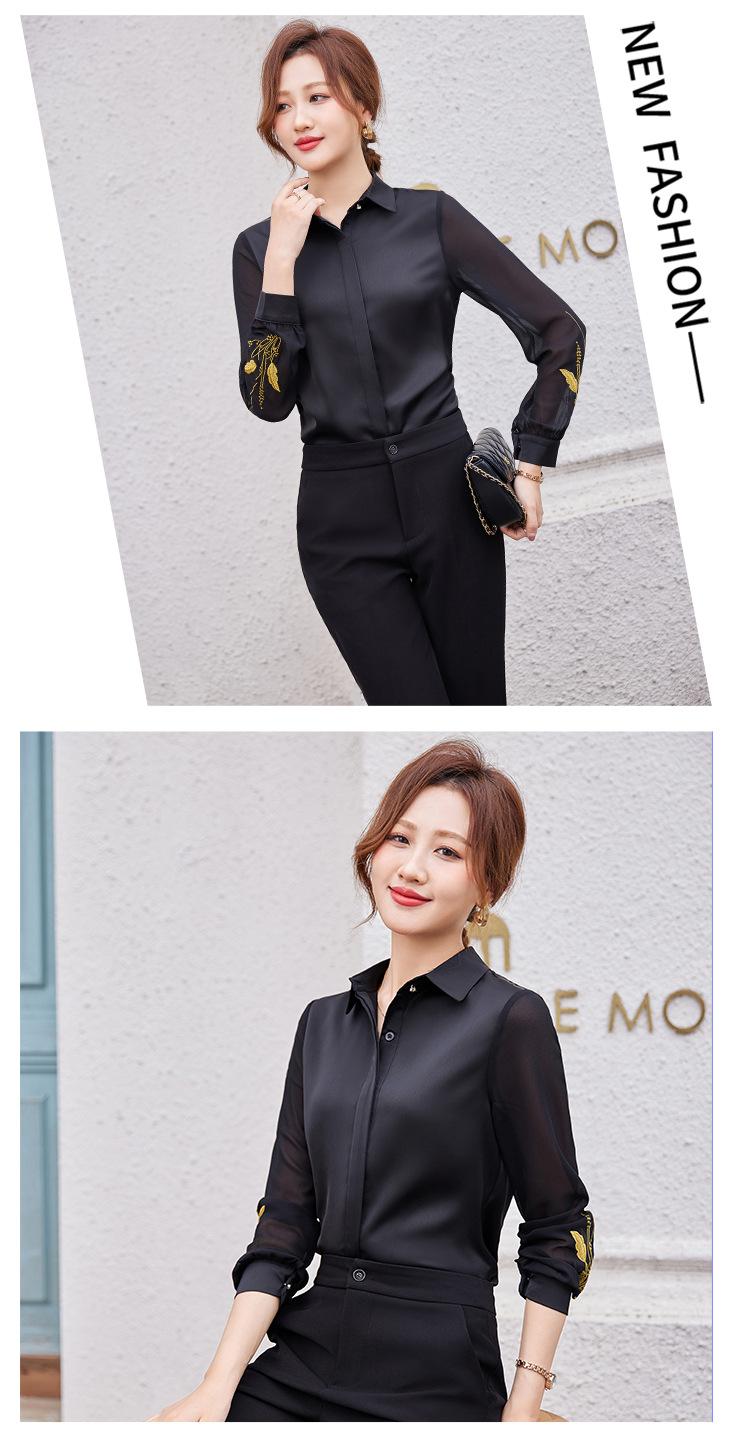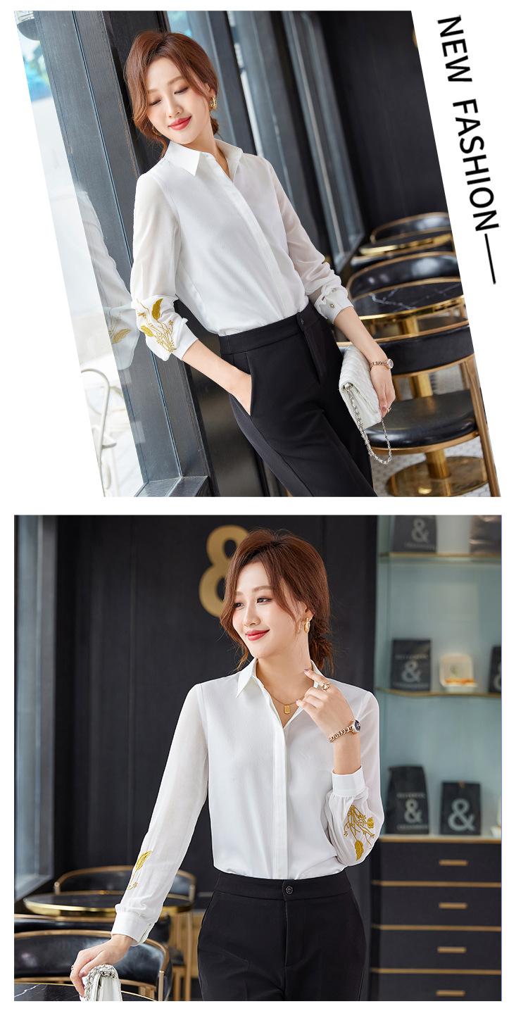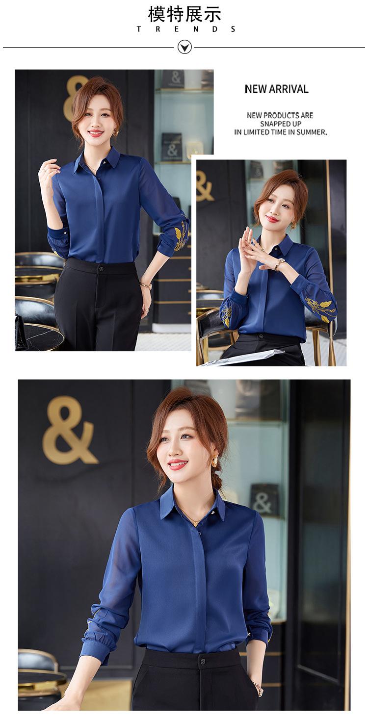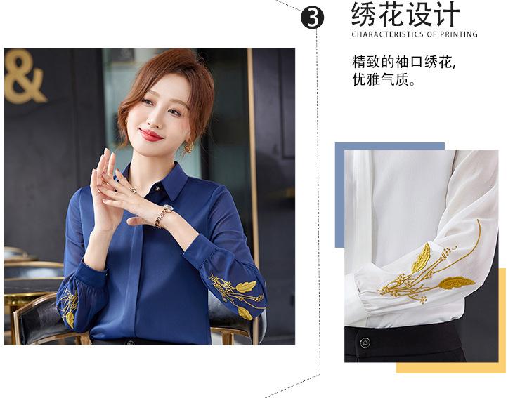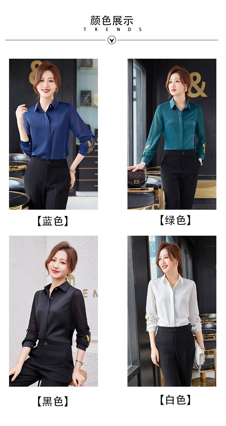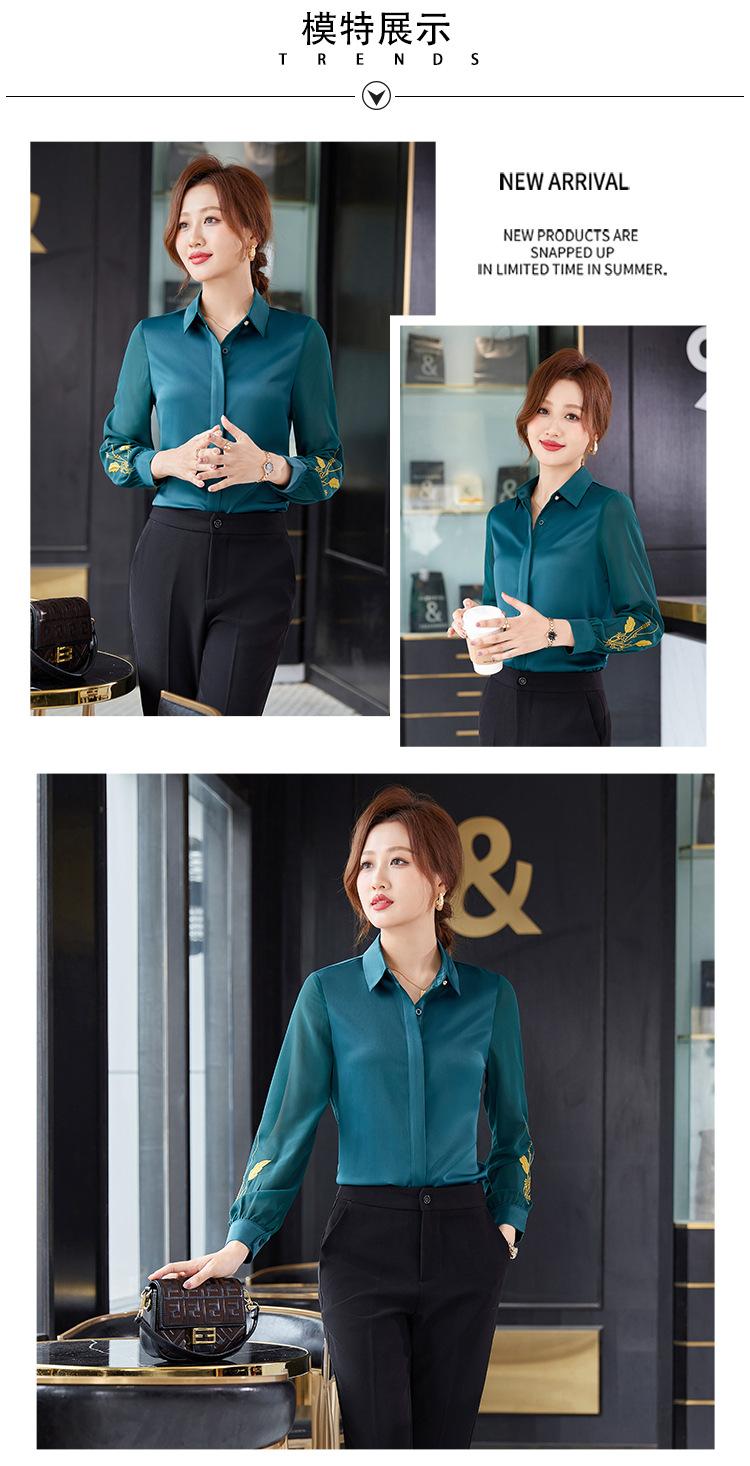 Camisa profesional de gasa verde para mujer, nueva camisa de manga larga con diseño bordado elegante de principios de otoño, ropa de trabajo, Top de otoño
