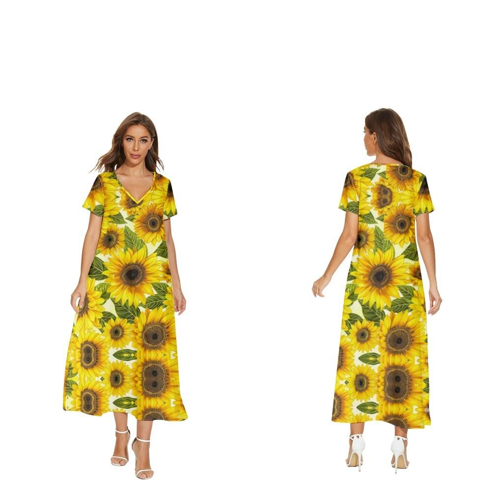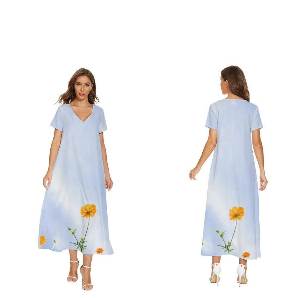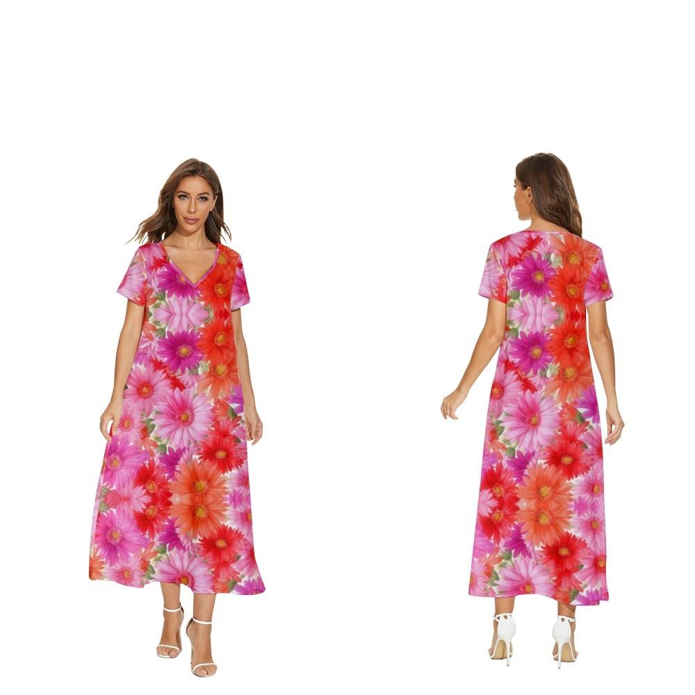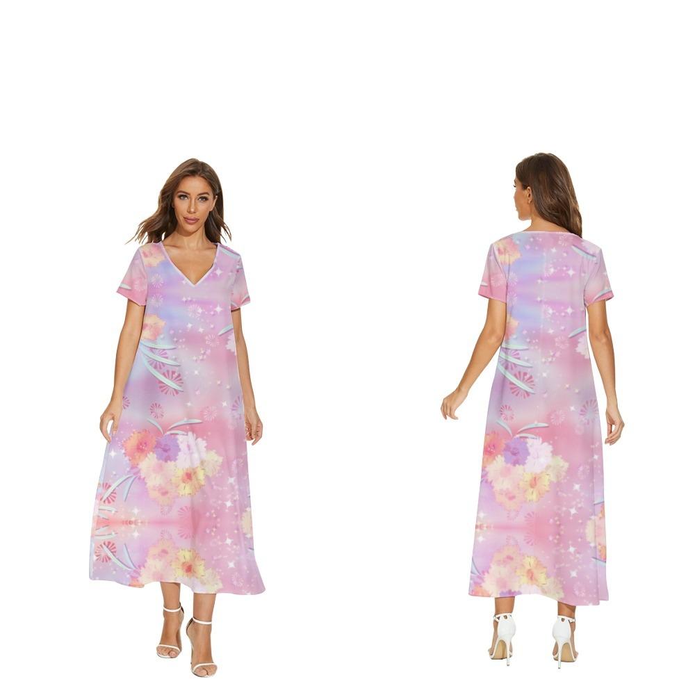Nuevo vestido de flores de manga corta con cuello en V de Amazon para comercio exterior transfronterizo informal de primavera y verano para mujer que puede enviar en nombre