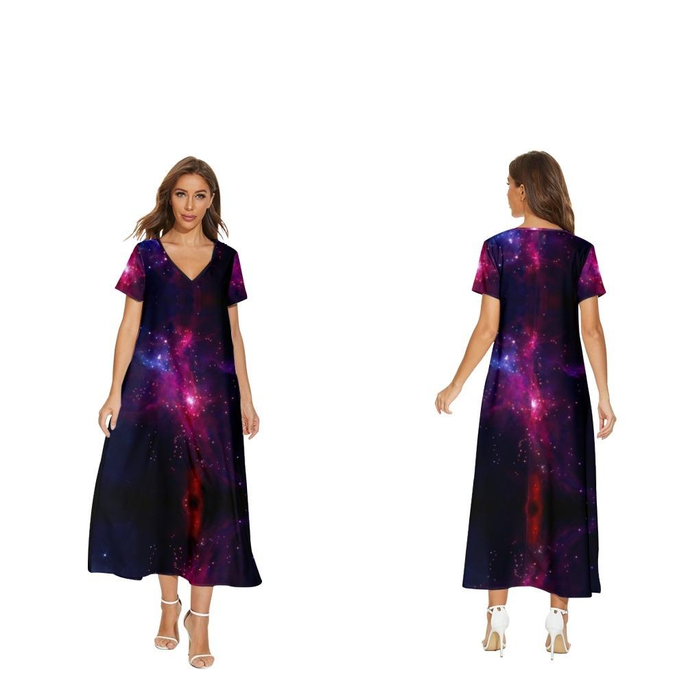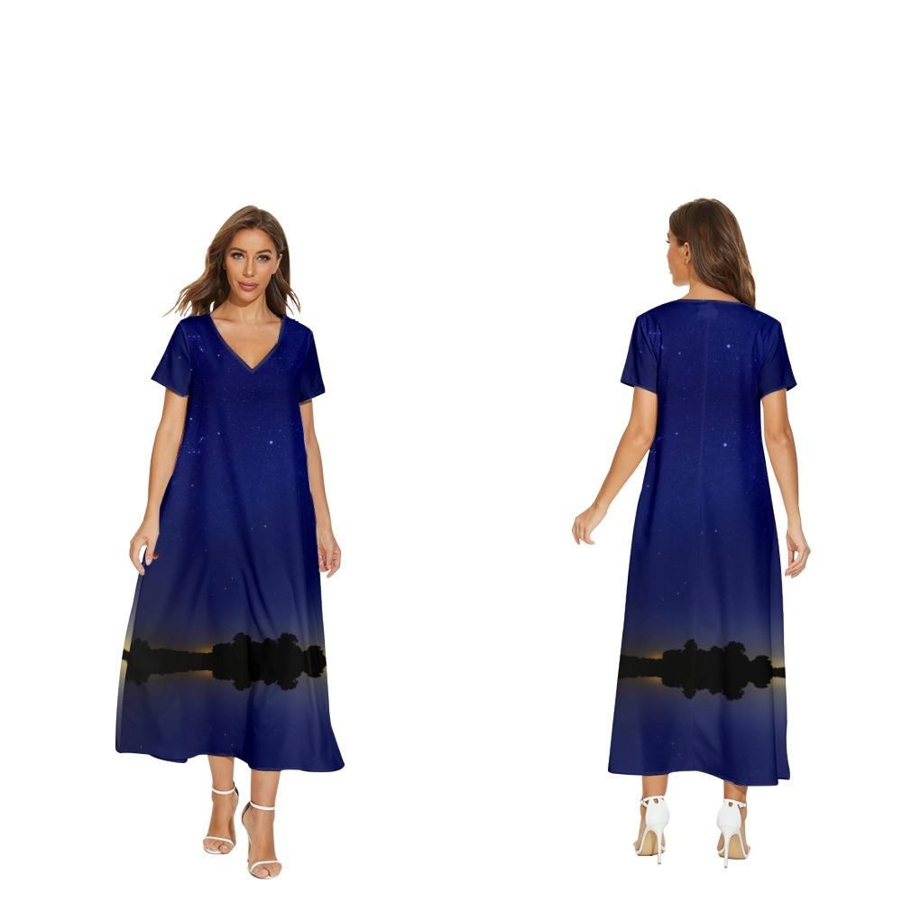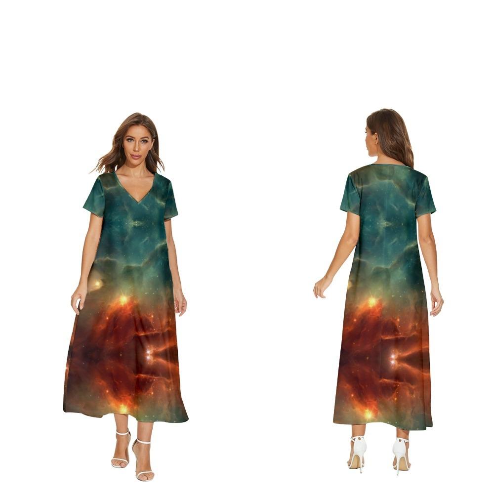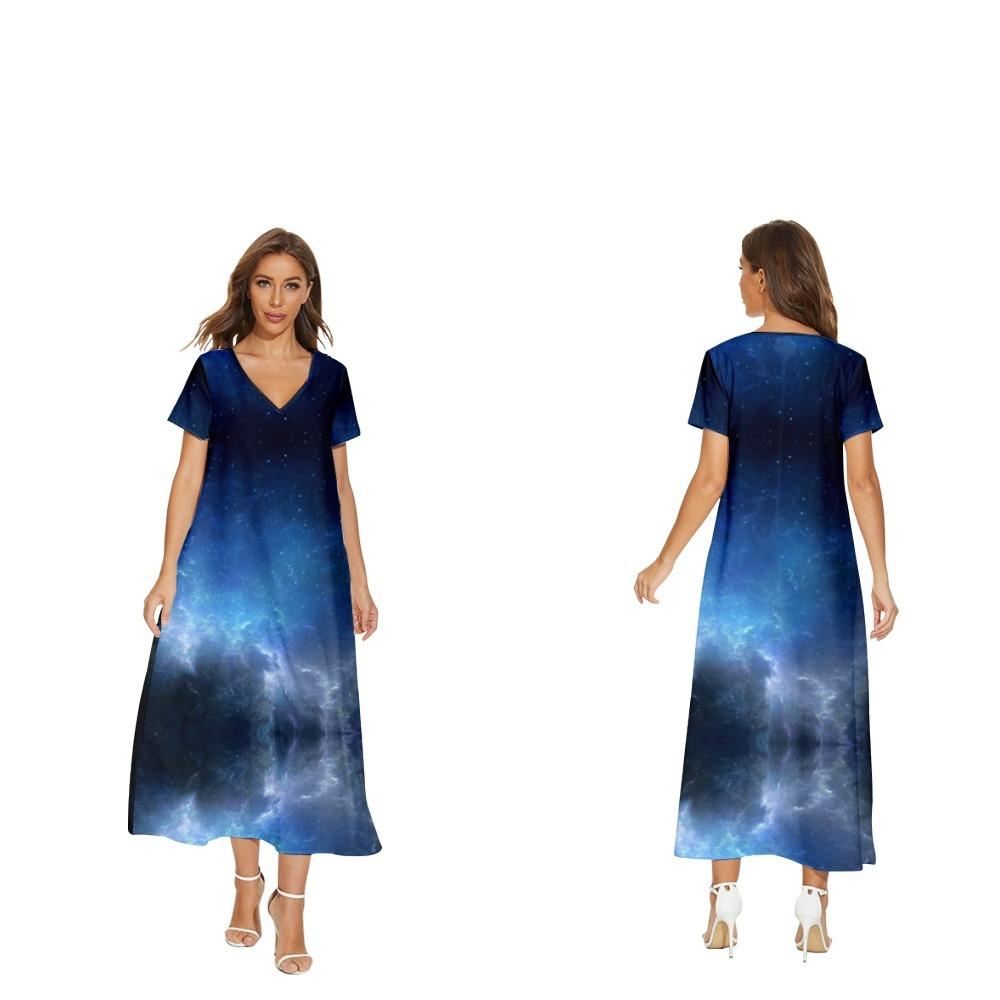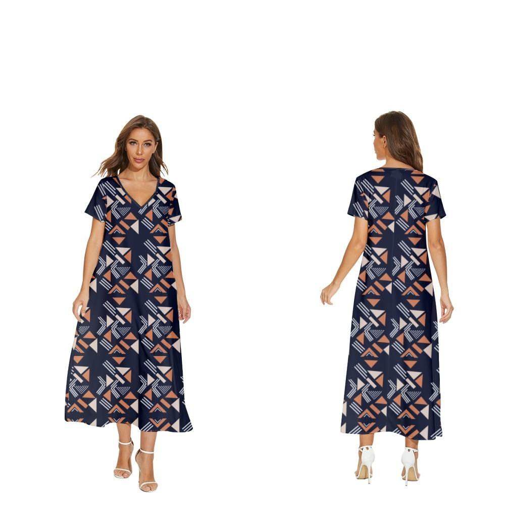 Nuevo vestido de flores de manga corta con cuello en V de Amazon para comercio exterior transfronterizo informal de primavera y verano para mujer que puede enviar en nombre