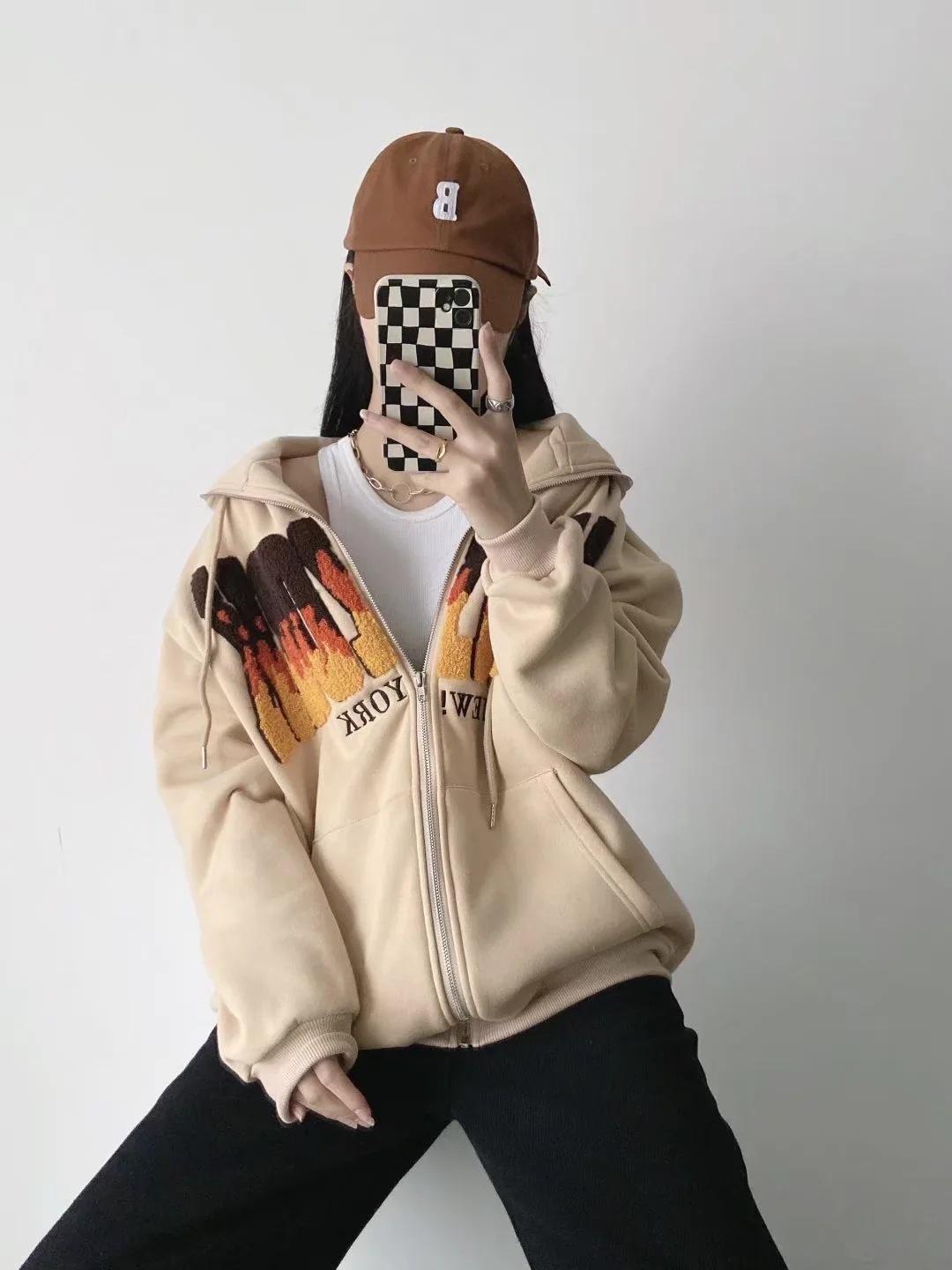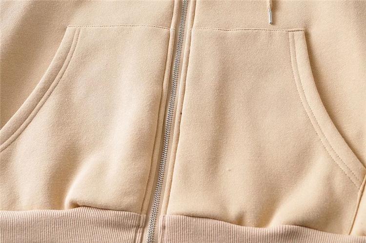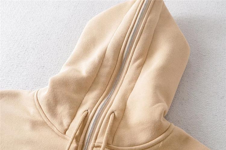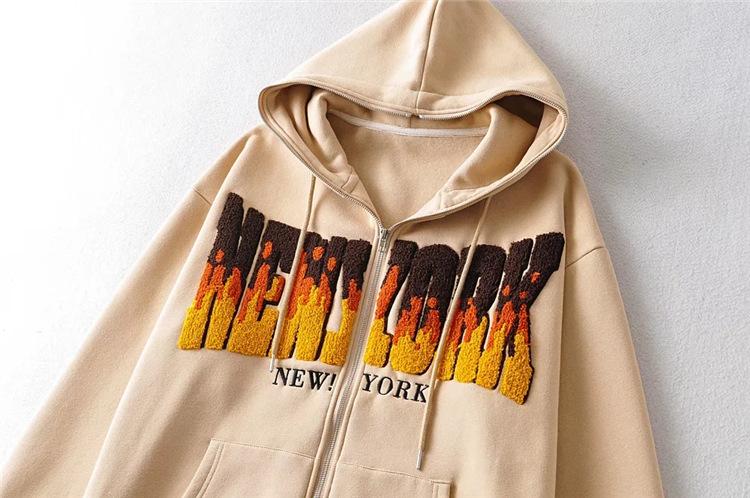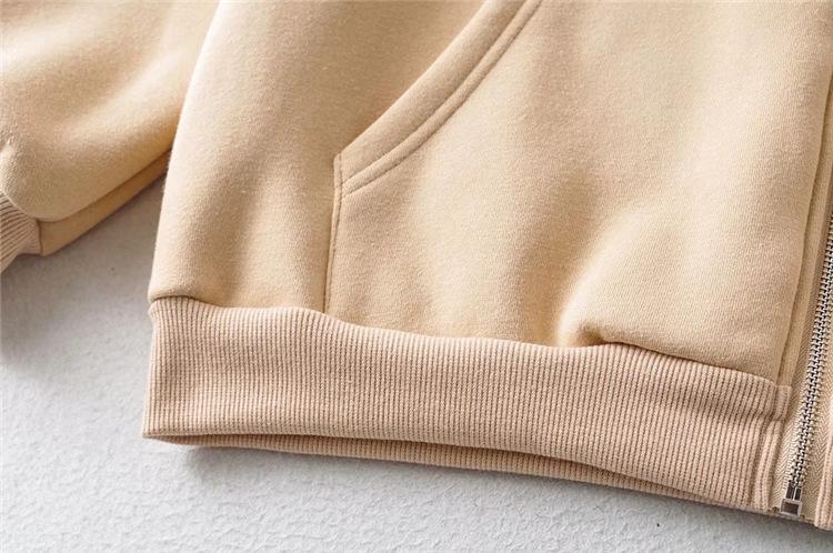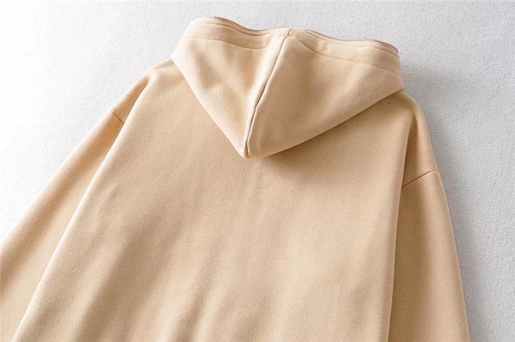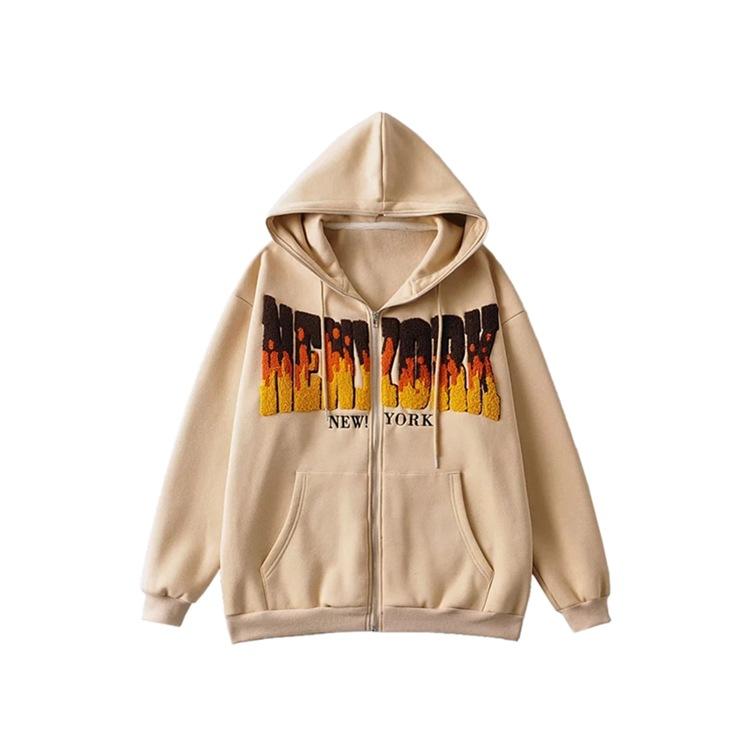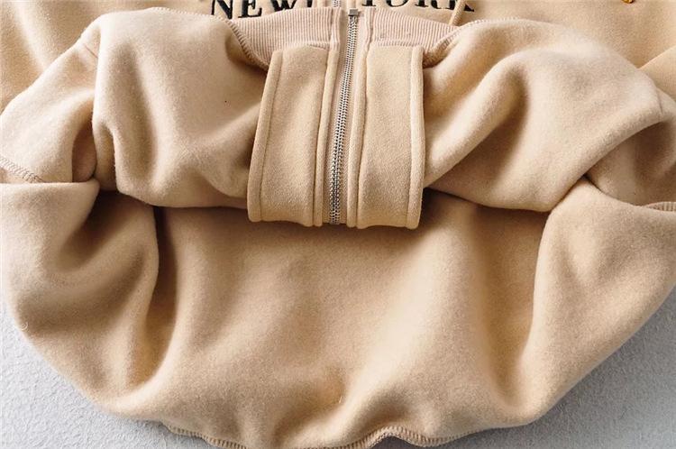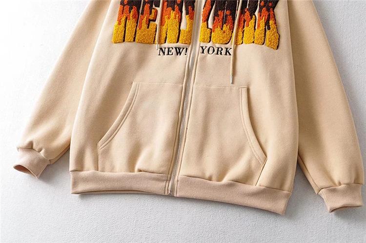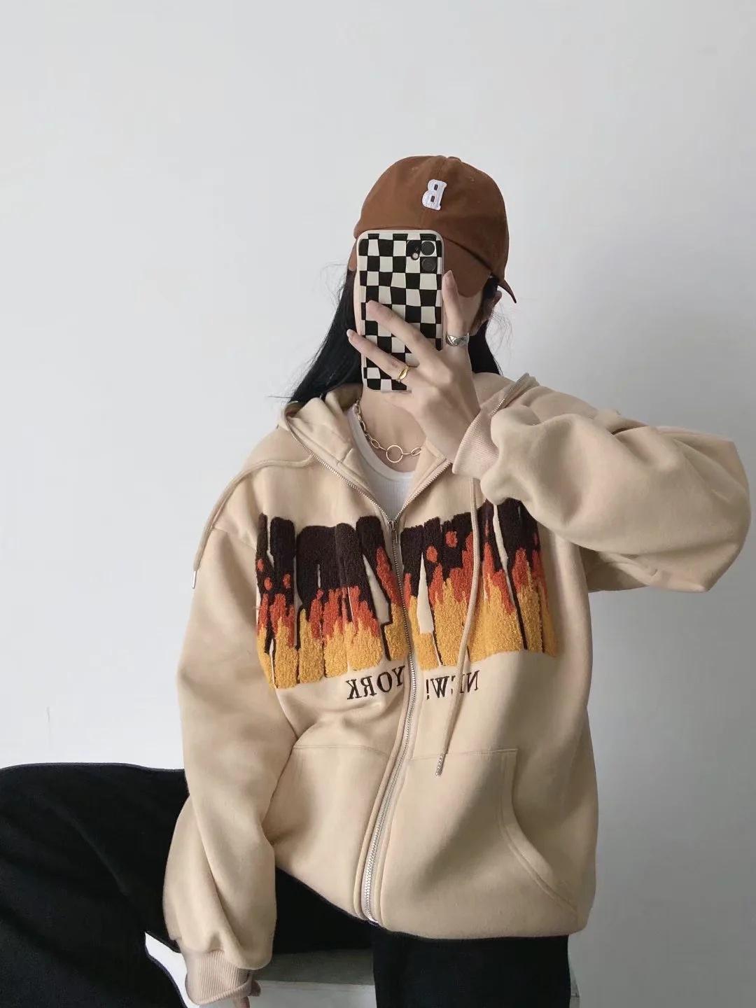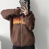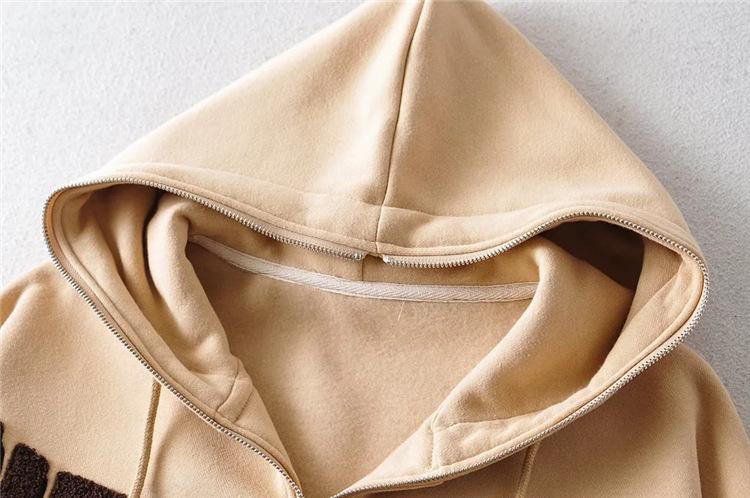 Otoño e invierno nuevo estilo perezoso con forro polar y letras cárdigan superior con capucha retro americana con cremallera y cordón para mujer