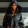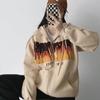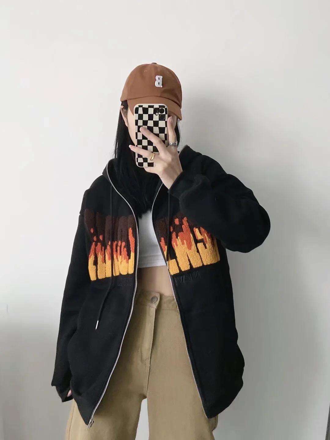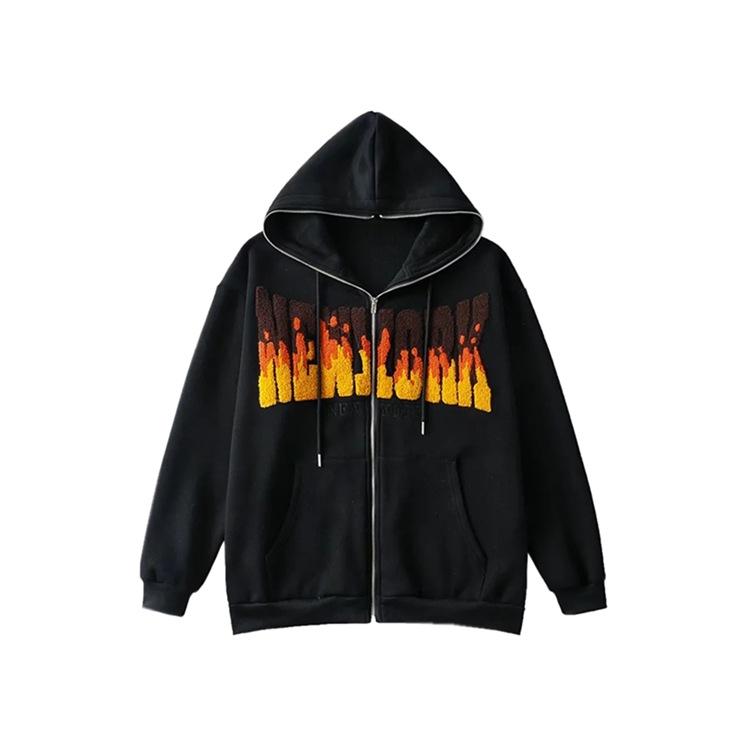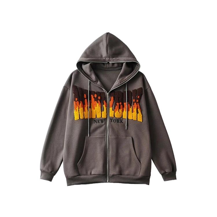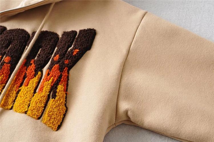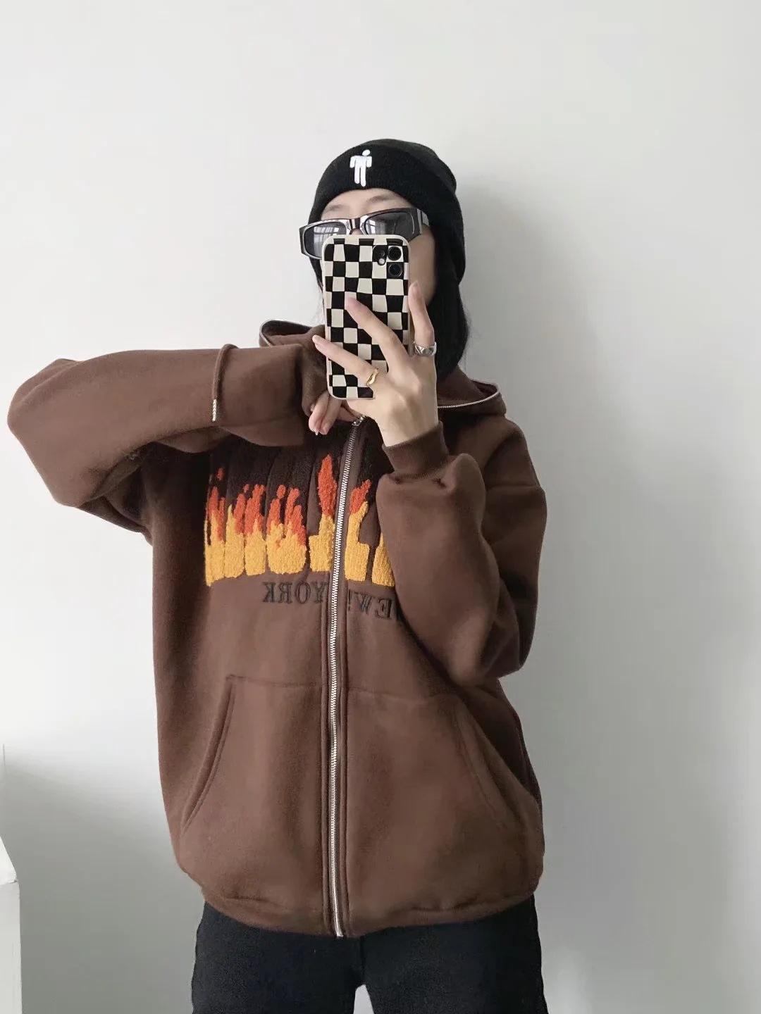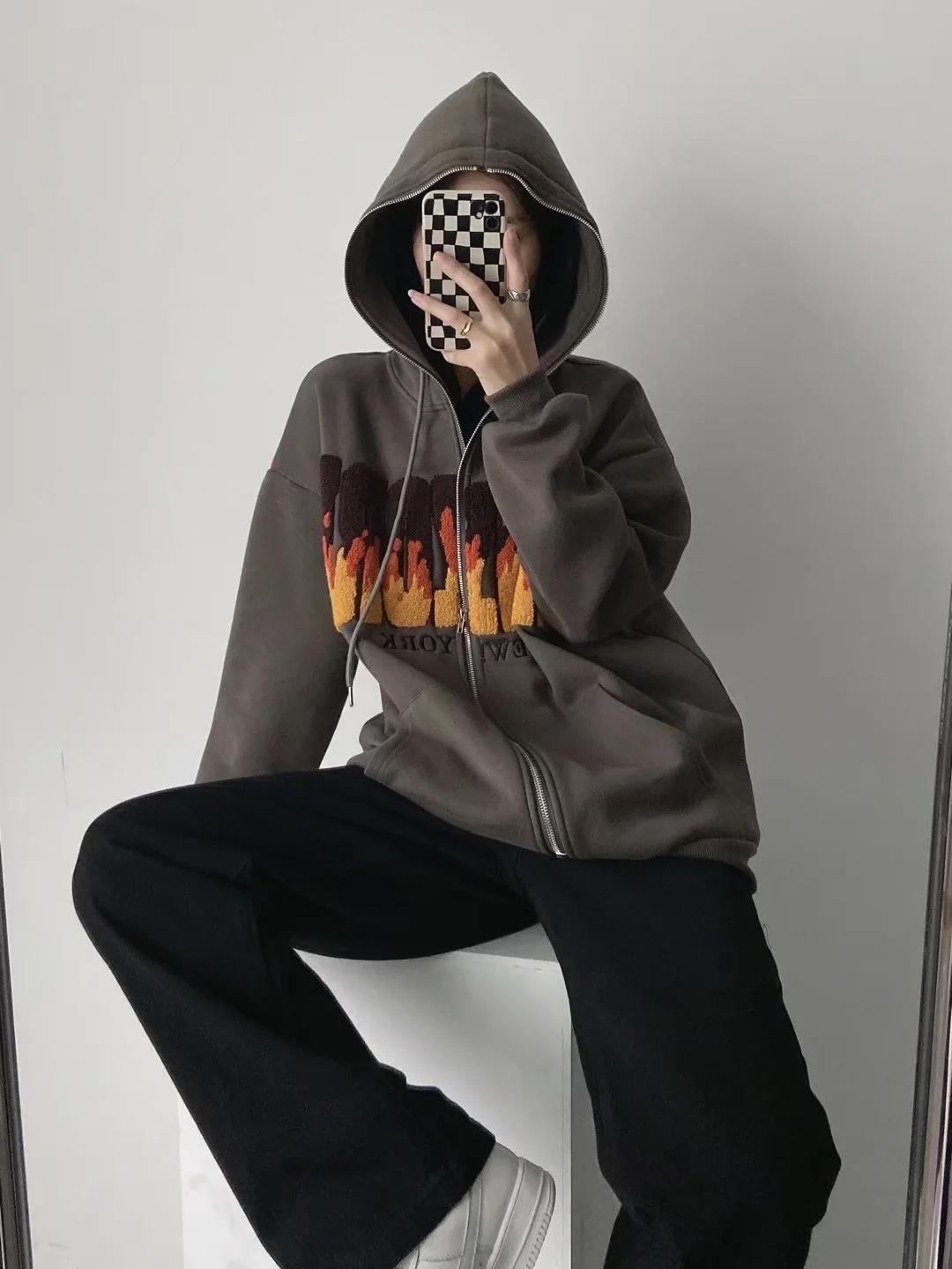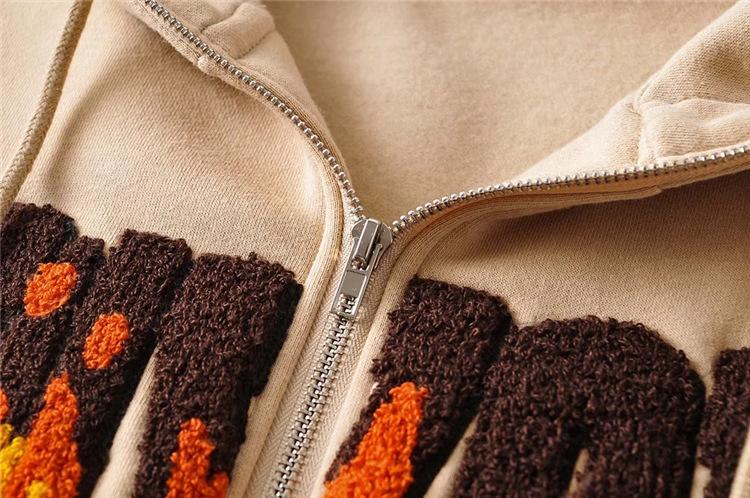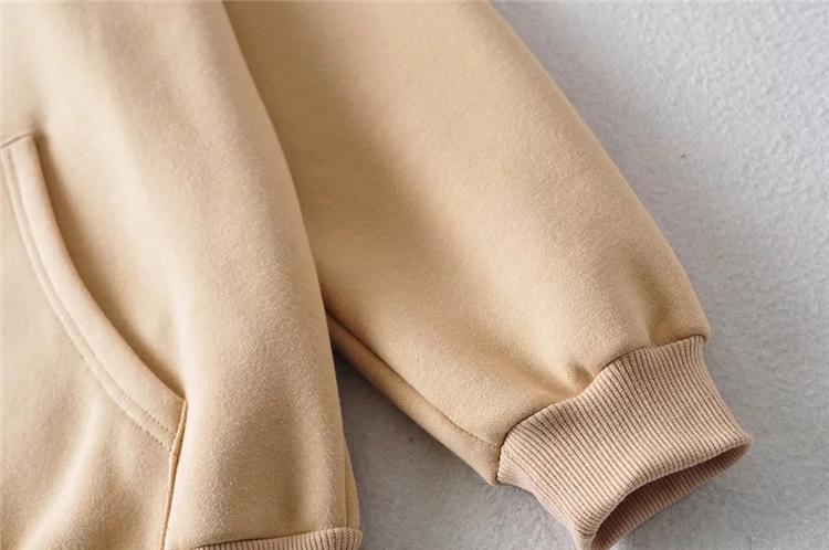 Otoño e invierno nuevo estilo perezoso con forro polar y letras cárdigan superior con capucha retro americana con cremallera y cordón para mujer