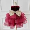 Vestido pontón de lentejuelas para niña, nuevo vestido de princesa color vino tinto para cumpleaños de bebé, vestido de actuación de piano para niña 2024