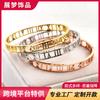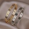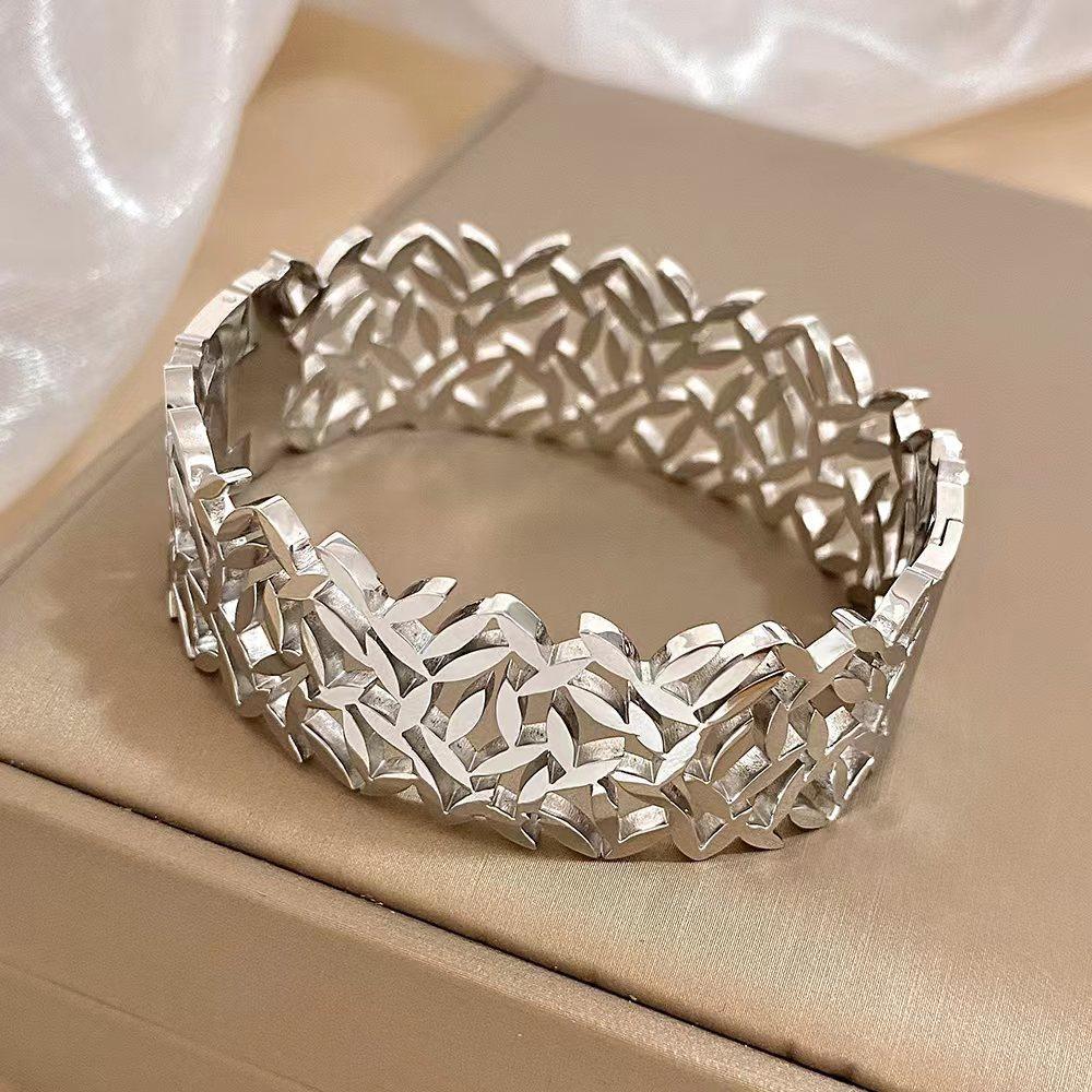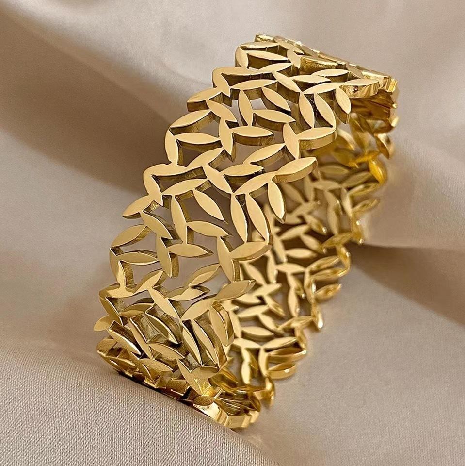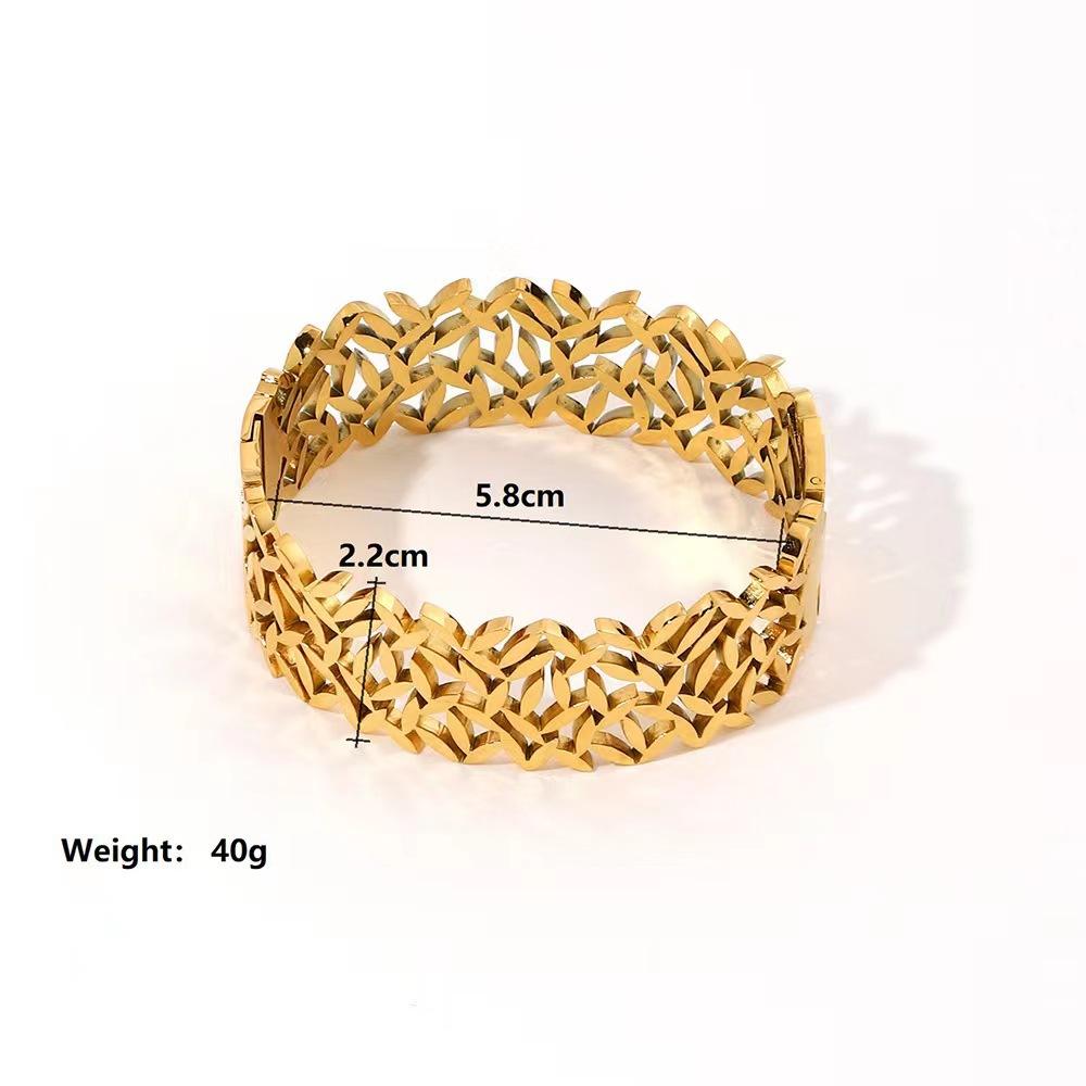Pulsera transfronteriza europea y americana de acero de titanio dorado para mujer, creativa, moderna, ancha, hueca, con hojas, para pareja, abierta, joyería