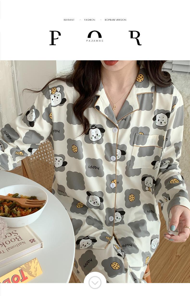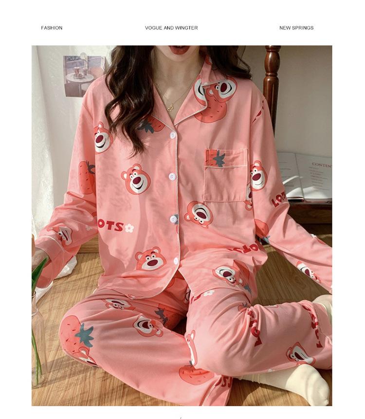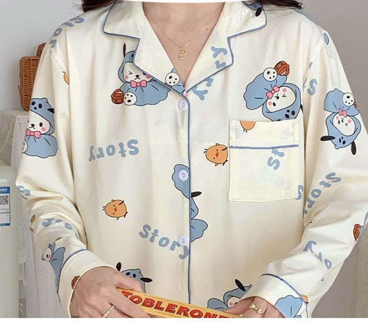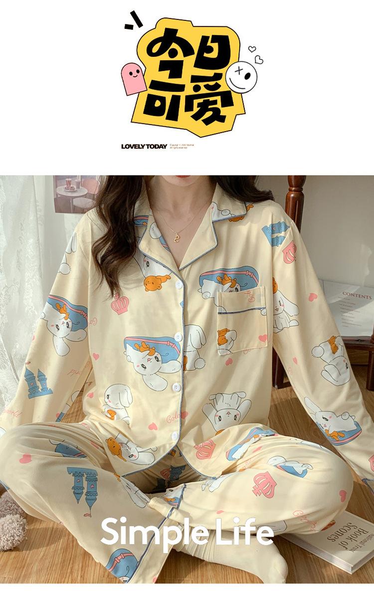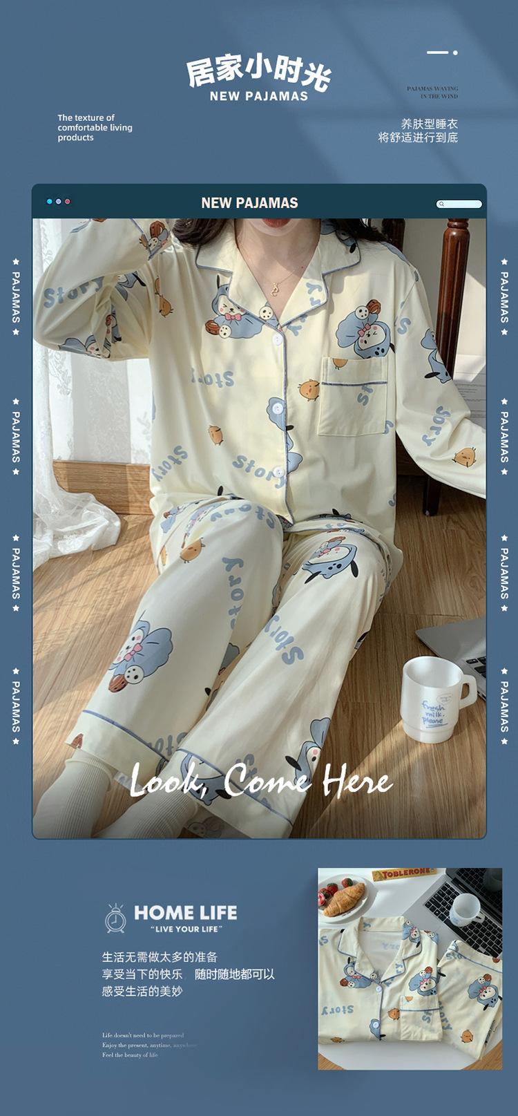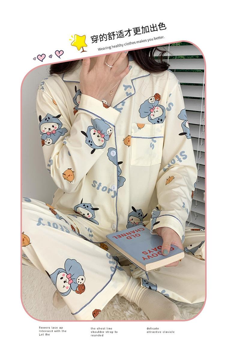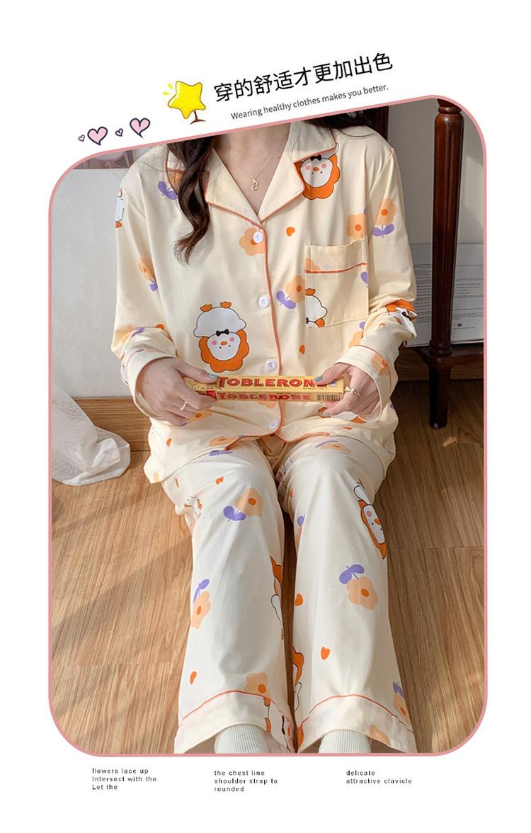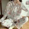 Cárdigan de manga larga de primavera y otoño, pijama de algodón artificial para mujer, traje dulce y lindo holgado, ropa casual para el hogar de niña que se puede usar afuera