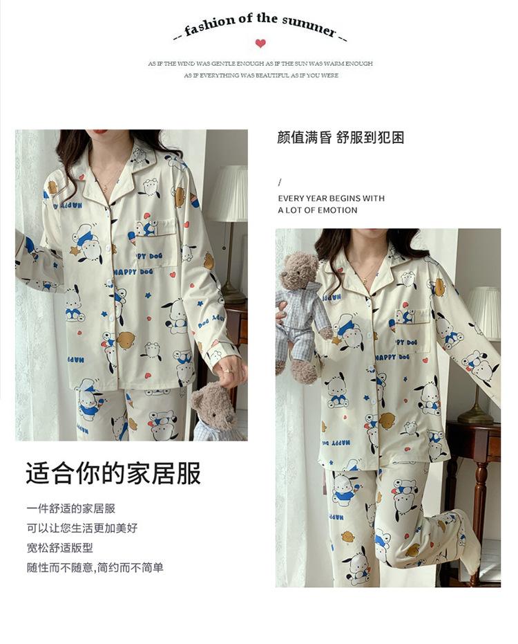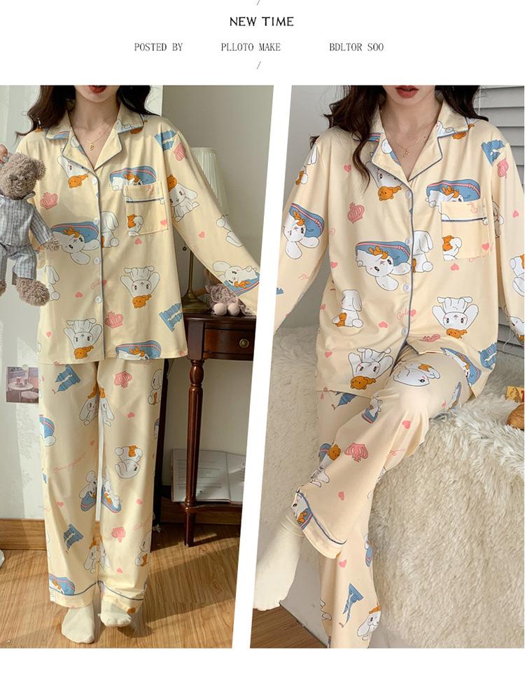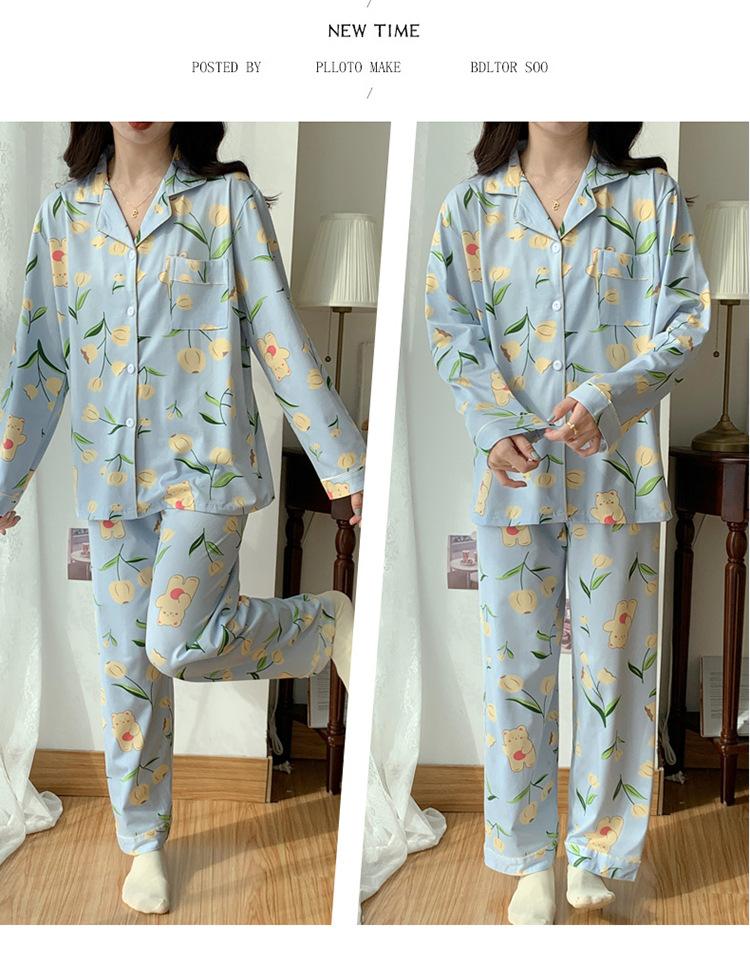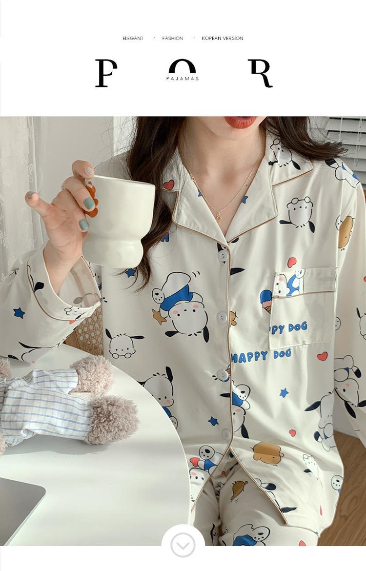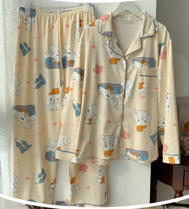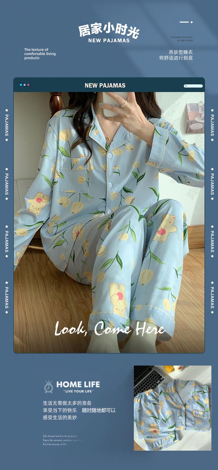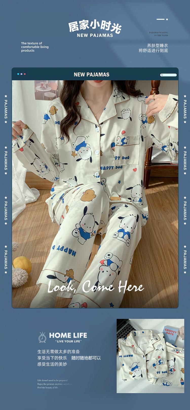 Cárdigan de manga larga de primavera y otoño, pijama de algodón artificial para mujer, traje dulce y lindo holgado, ropa casual para el hogar de niña que se puede usar afuera