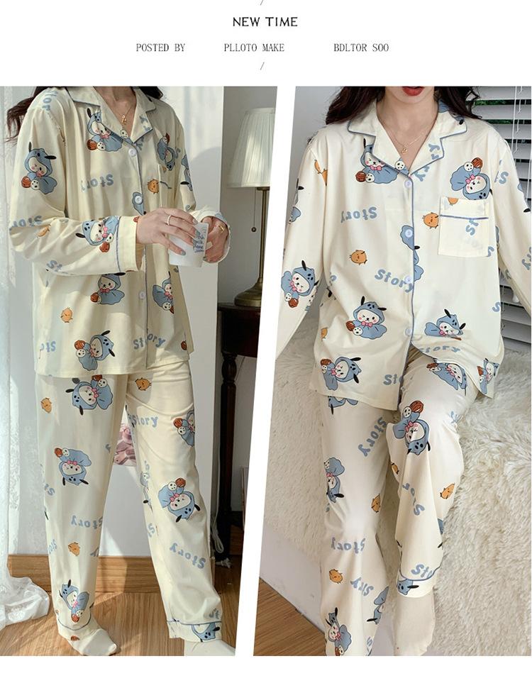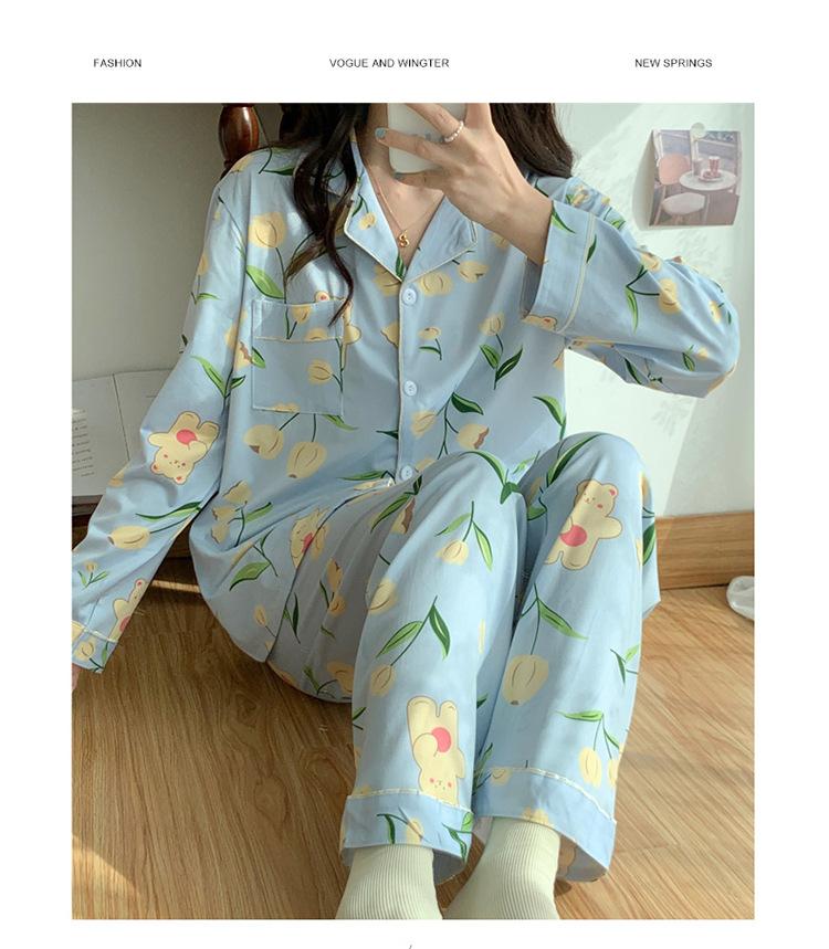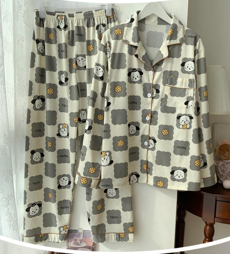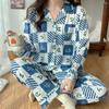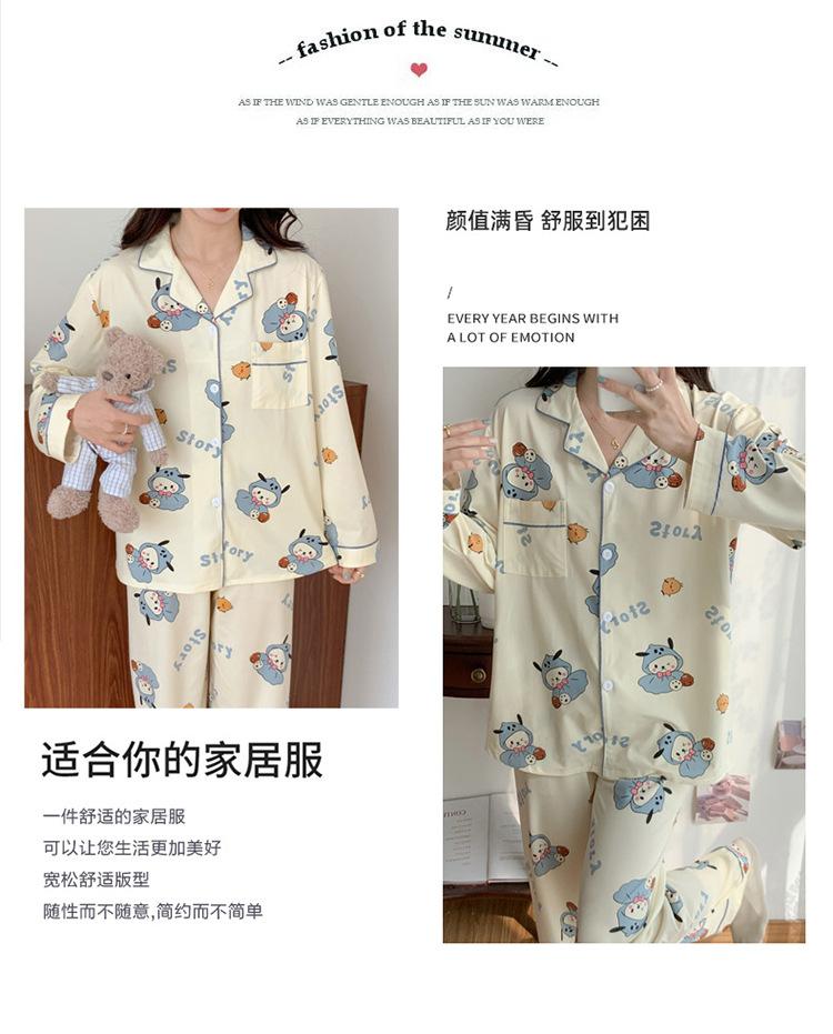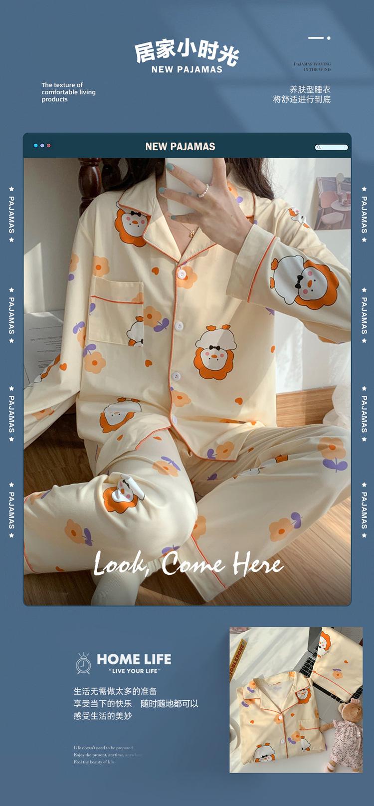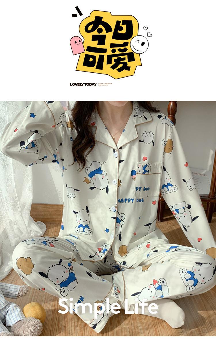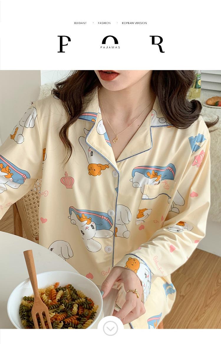 Cárdigan de manga larga de primavera y otoño, pijama de algodón artificial para mujer, traje dulce y lindo holgado, ropa casual para el hogar de niña que se puede usar afuera