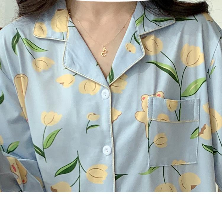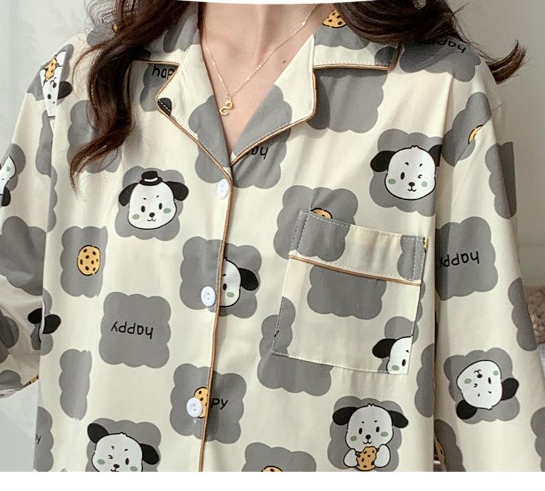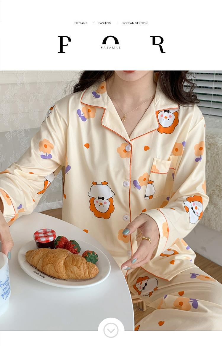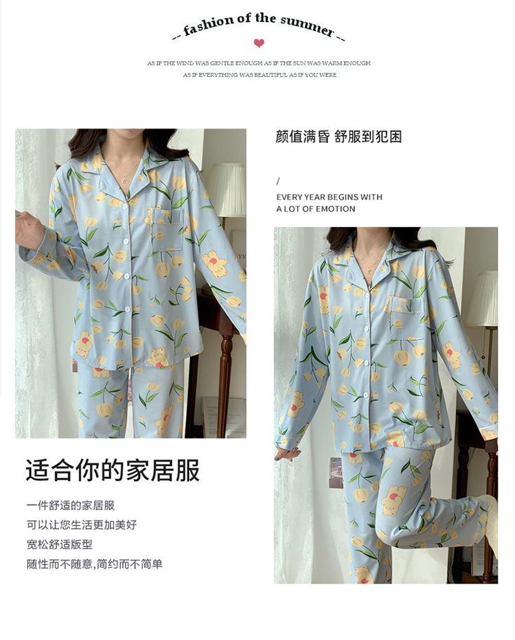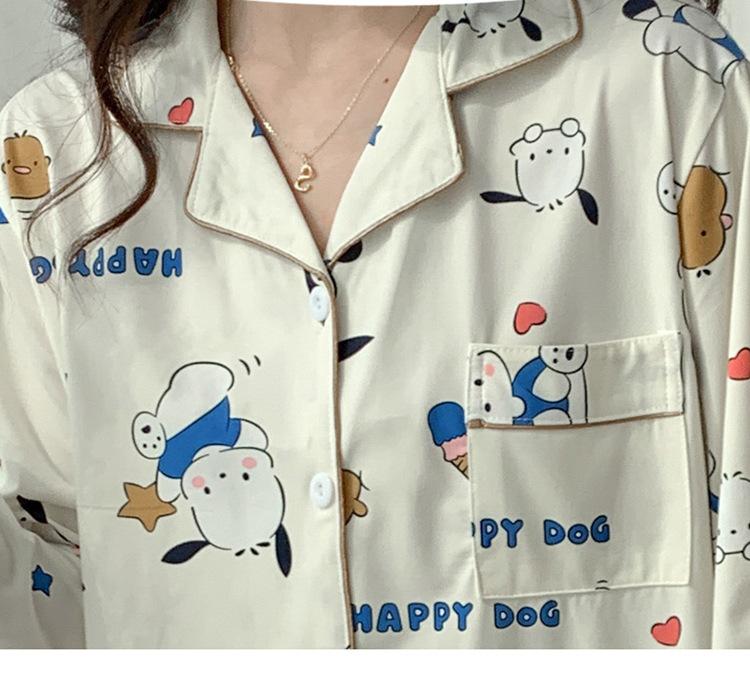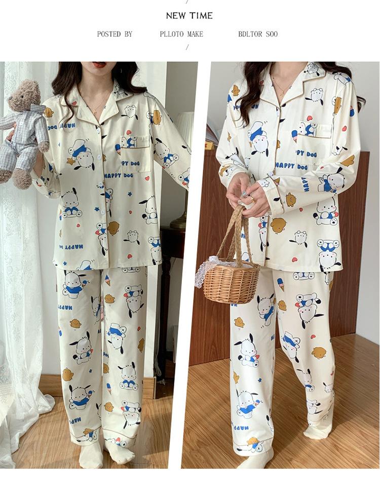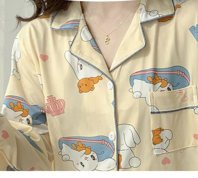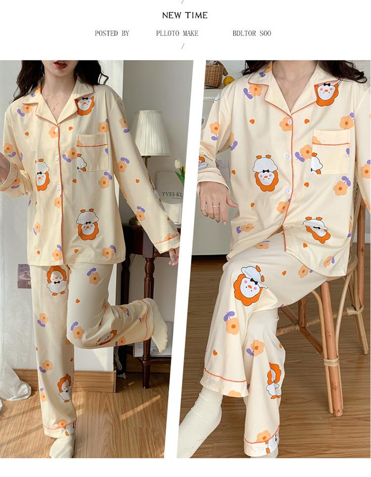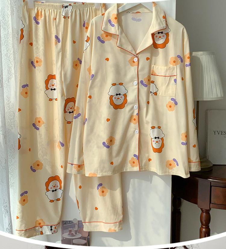 Cárdigan de manga larga de primavera y otoño, pijama de algodón artificial para mujer, traje dulce y lindo holgado, ropa casual para el hogar de niña que se puede usar afuera
