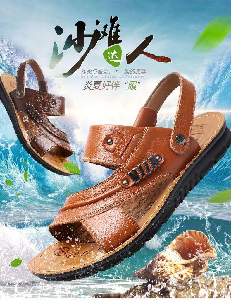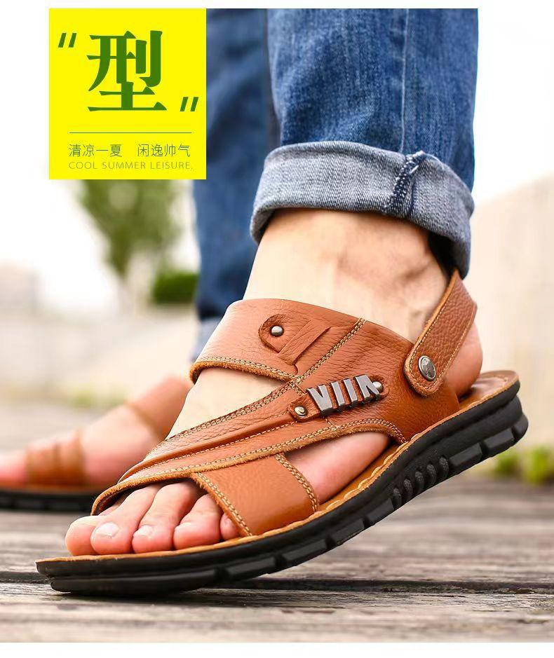 Sandalias de verano para hombre frescas transpirables nuevas primera capa piel de vaca venta al por mayor zapatos casuales de cuero para hombre uso bidireccional